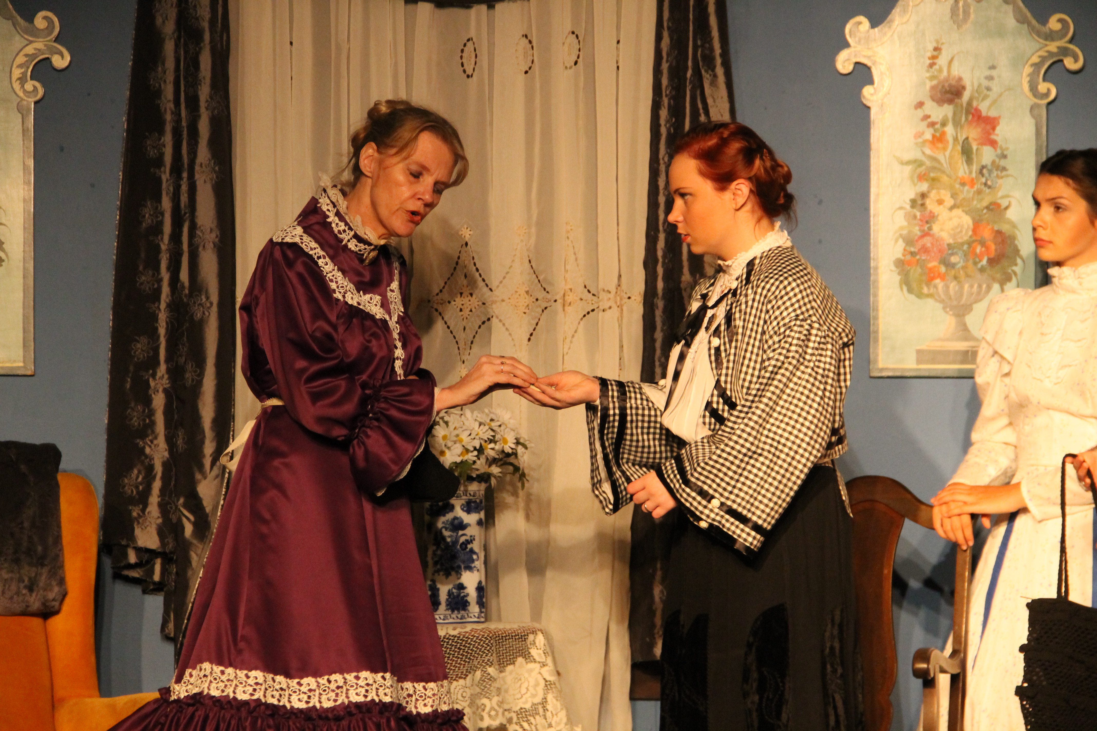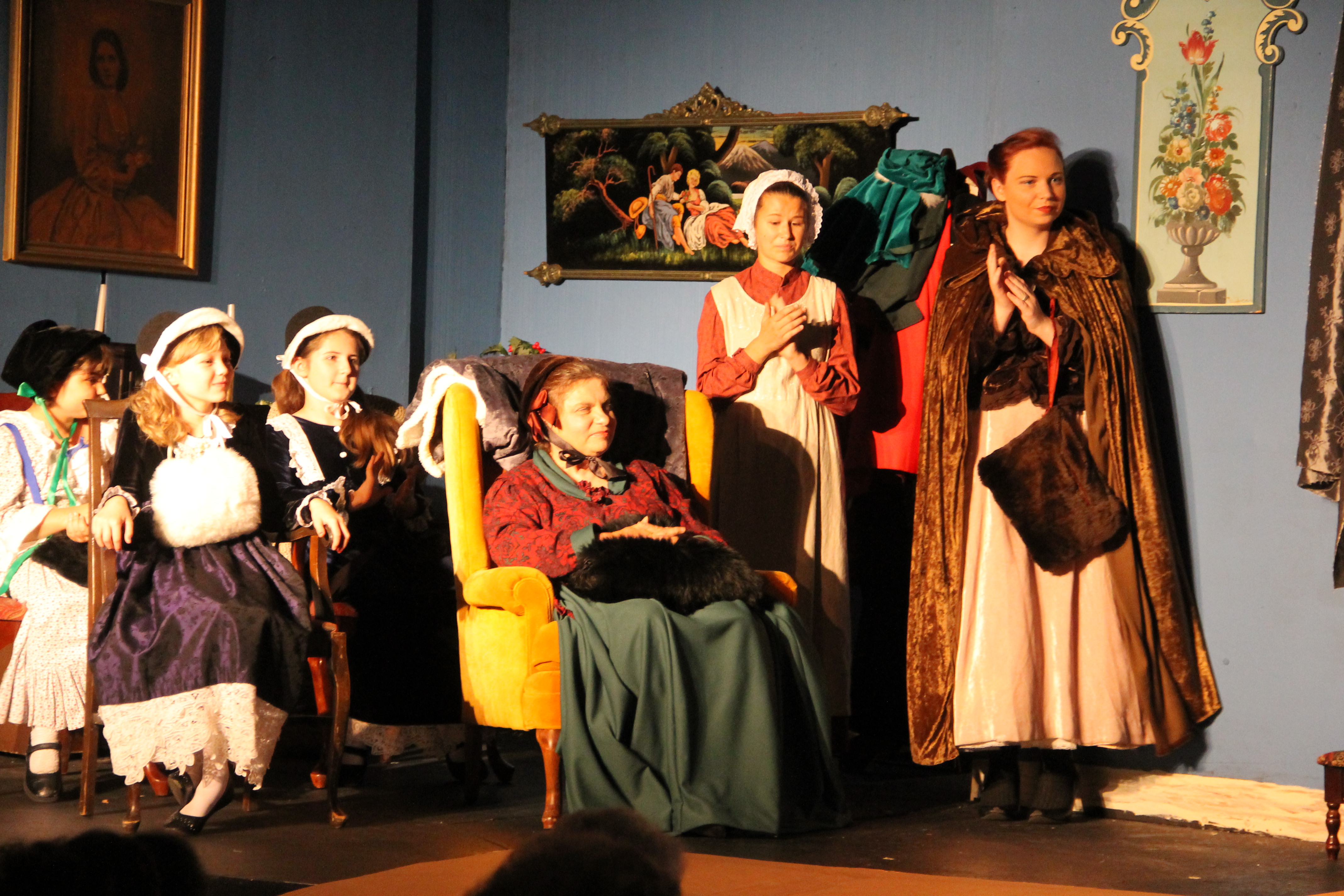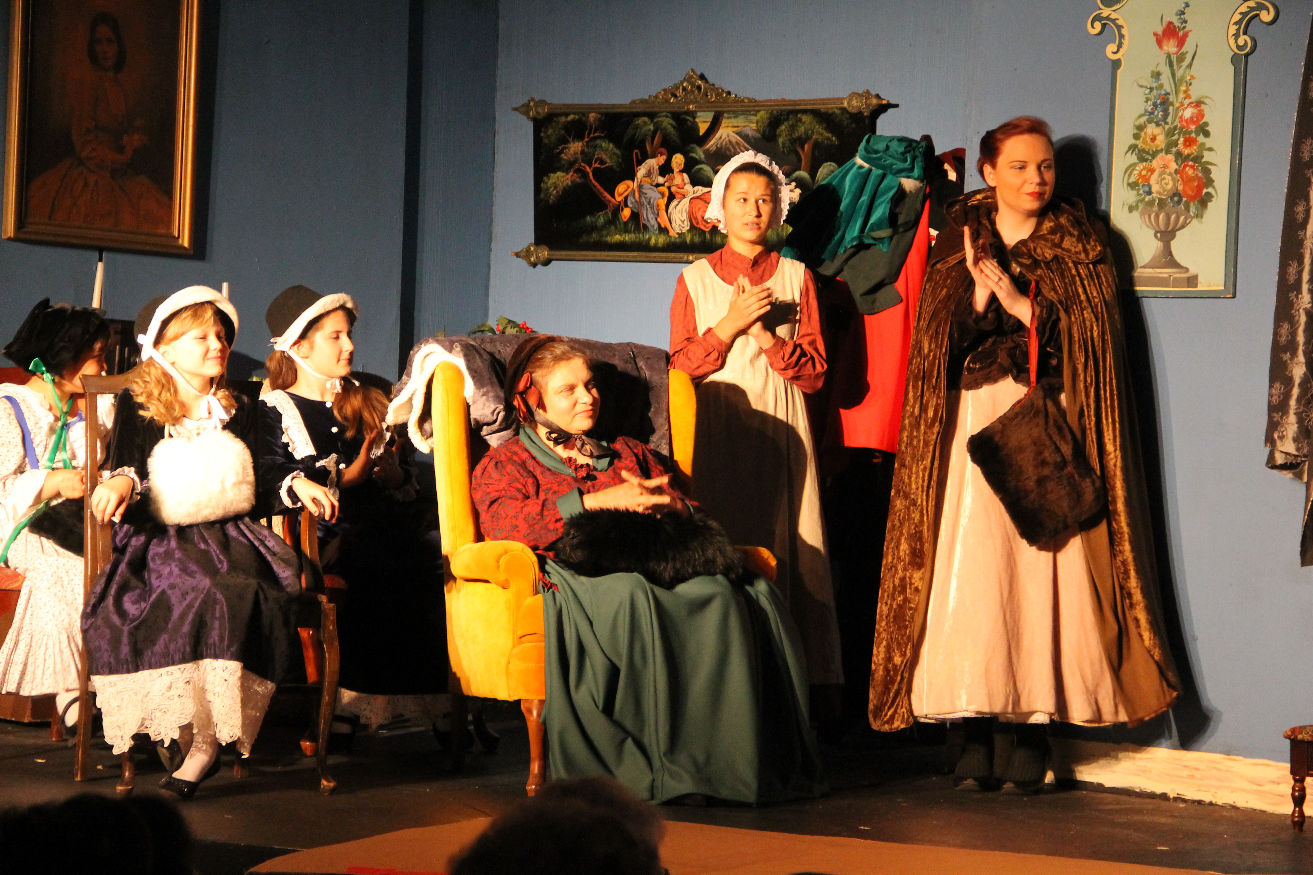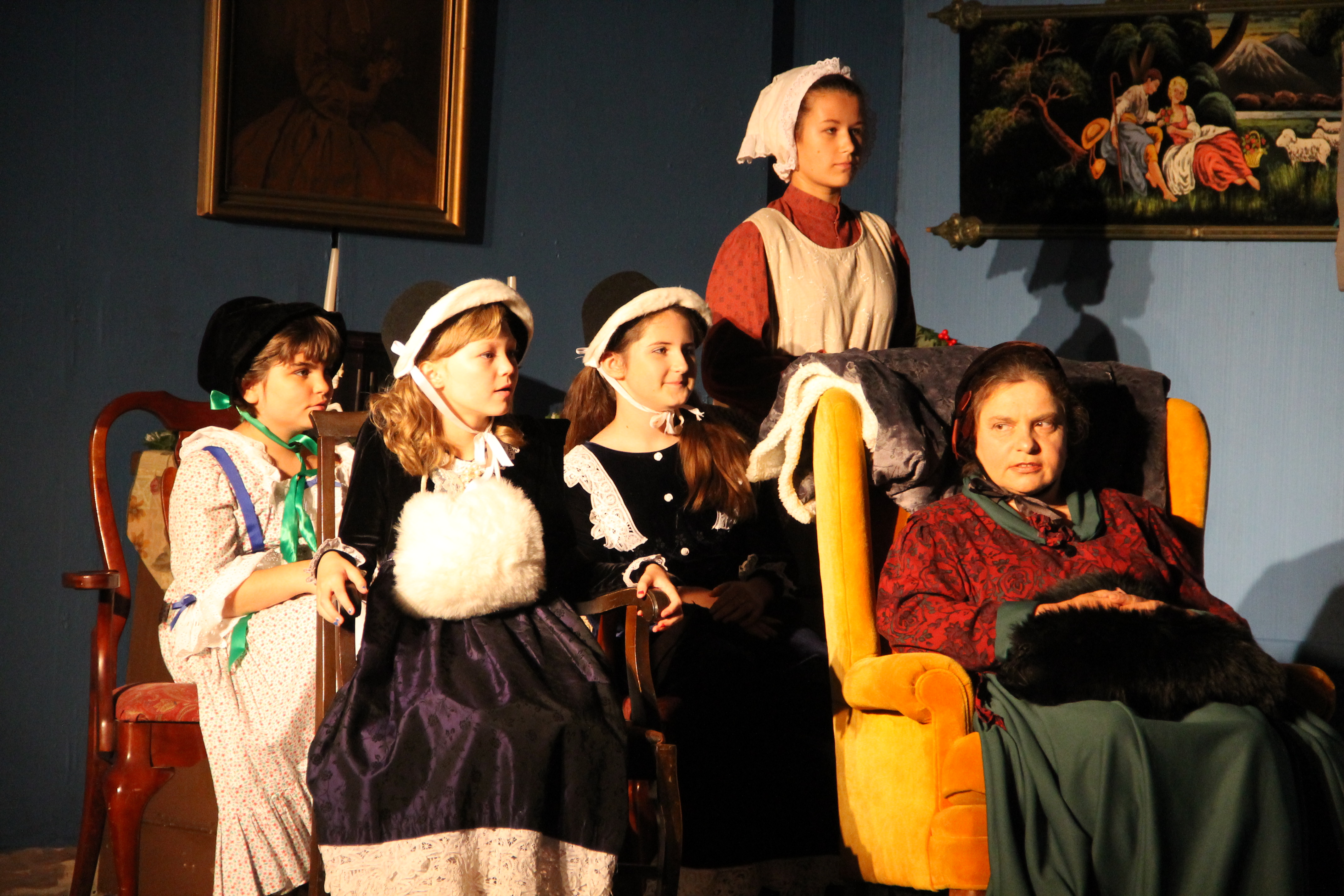 Involved were Lucille Fala-Brennan (playhouse founder), Alexa Giuvreau (Hannah), Olivia Stettler (Beth March), Alison McCord (Sallie Gardener), Alexis Bradbury (Annie Moffat), Stephanie Mau (Josephine ‘Jo’ March), and Susan Mau (Mrs. Gardener). Back row from left are Lily McDonald (Amy March), Michael McCord (Mr. March), Chelsea Lucas (Marmee), Karen Calarco (Aunt March), Erika Cassell (Meg March), Jonathan Donley (John Brooke), Robert Haney (Theodore ‘Laurie’ Lawrence), Amelia Cassell (Beth March), Jessica Wensus (Meg March), Rachel Rubright (Josephine ‘Jo’ March), Andrea Sanders (Amy March) and Kayleigh Starr (Belle Moffat).