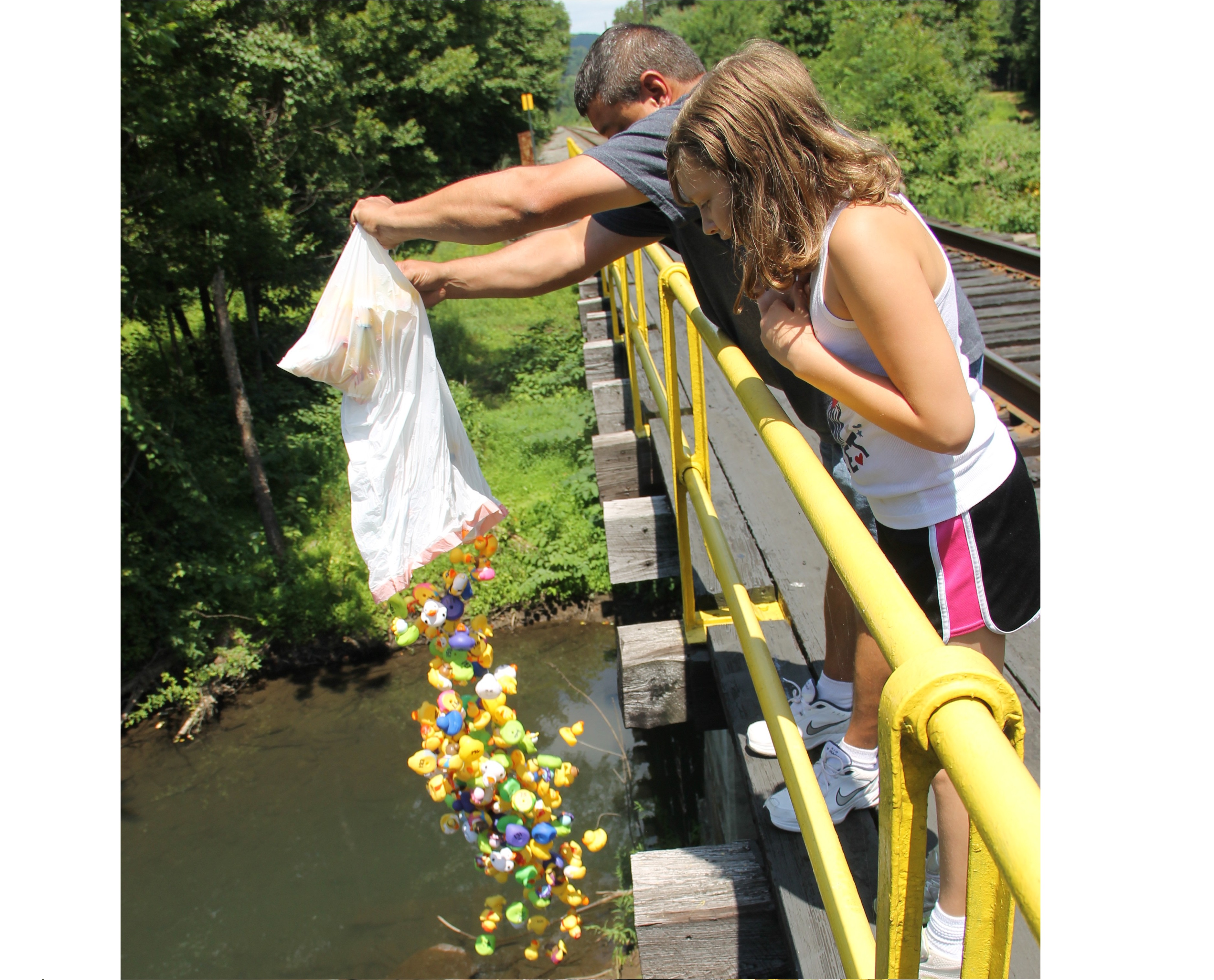Volunteers with the New Ringgold Fire Company held their 1st Annual Duck Race fundraiser today (Saturday, July 26, 2014) on the Little Schuylkill River adjacent to the fire company.