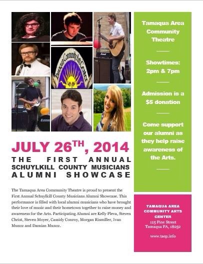 Tamaqua Community Arts Center Theatre is presenting their first annual Schuylkill County Musicians Alumni Showcase today (Saturday, July 26, 214).