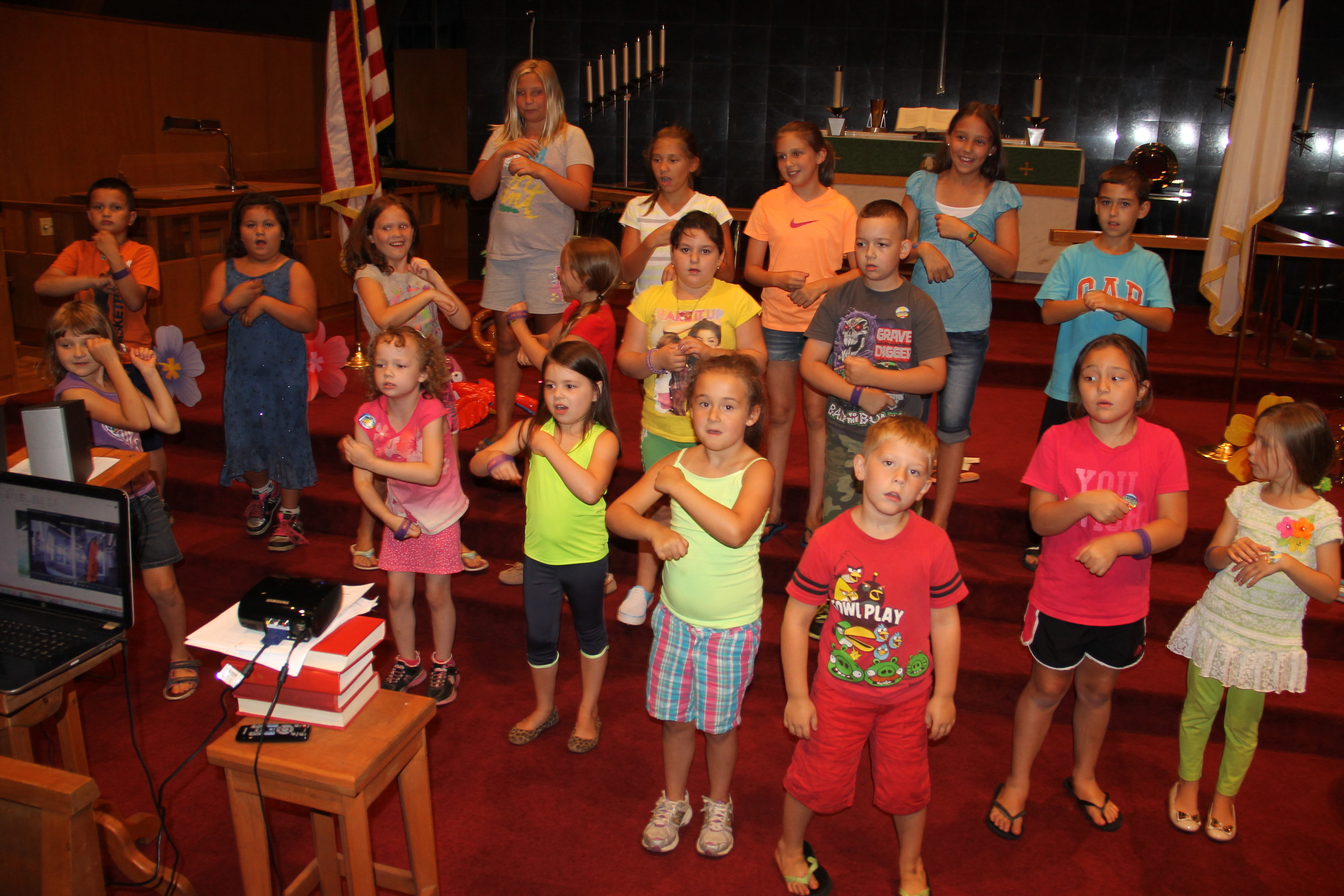 Bible school participants will be singing during tomorrow’s (Sunday, August 3, 2014) church service. Tina Kensinger, VBS Director and children’s choir director, stated her goal of restarting the children’s choir at the church.