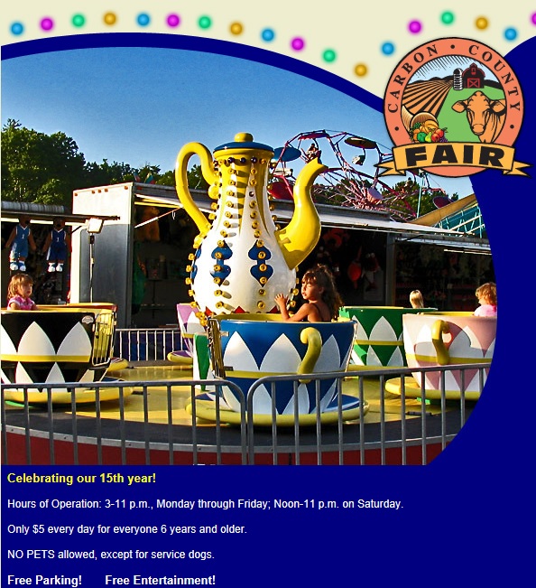 The Carbon County Fair starts today (Monday, August 4, 2014) and lasts until Saturday (August 9, 2014).
