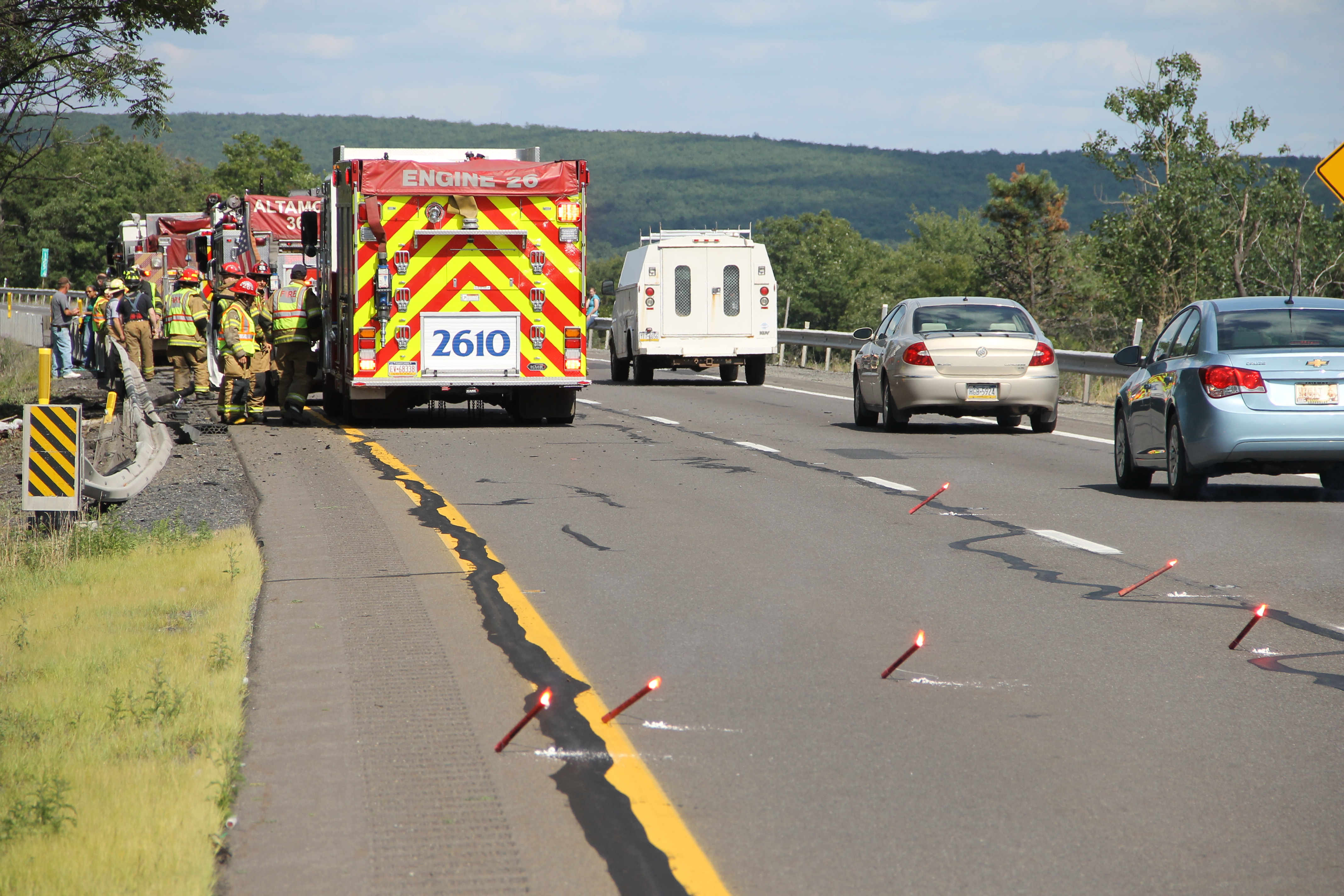 The incident occurred northound at mile marker 125.2. The woman, identified as Scherri Jacobsen, 62, Washington D.C., refused treatment. Traveling in the left lane, Jacobsen fell asleep, steering into the right lane and hitting the driver’s side rear of a gray 2013 Chevrolet Silverado driven by Lee Kile, 52, of Berwick.