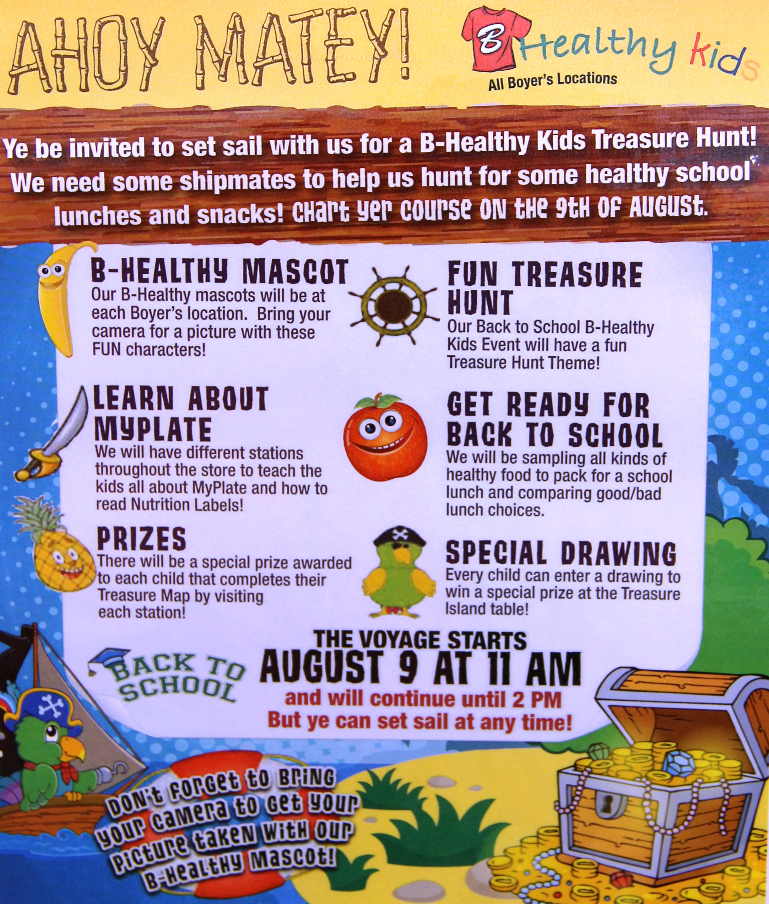 Kids and their families were treated to a free B-Healthy Kids Treasure Hunt on Saturday (August 9, 2014) at Boyer’s Food Market in Tamaqua.