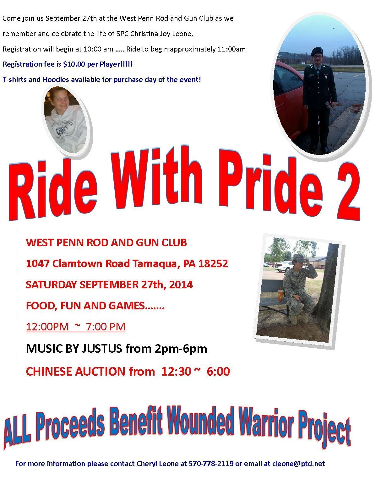 In addition, family members and volunteers will be holding their ‘Ride With Pride 2’ Poker Run event on Saturday, September 27, 2014 from 12 PM to 7 PM at the West Penn Rod and Gun Club in Clamtown.