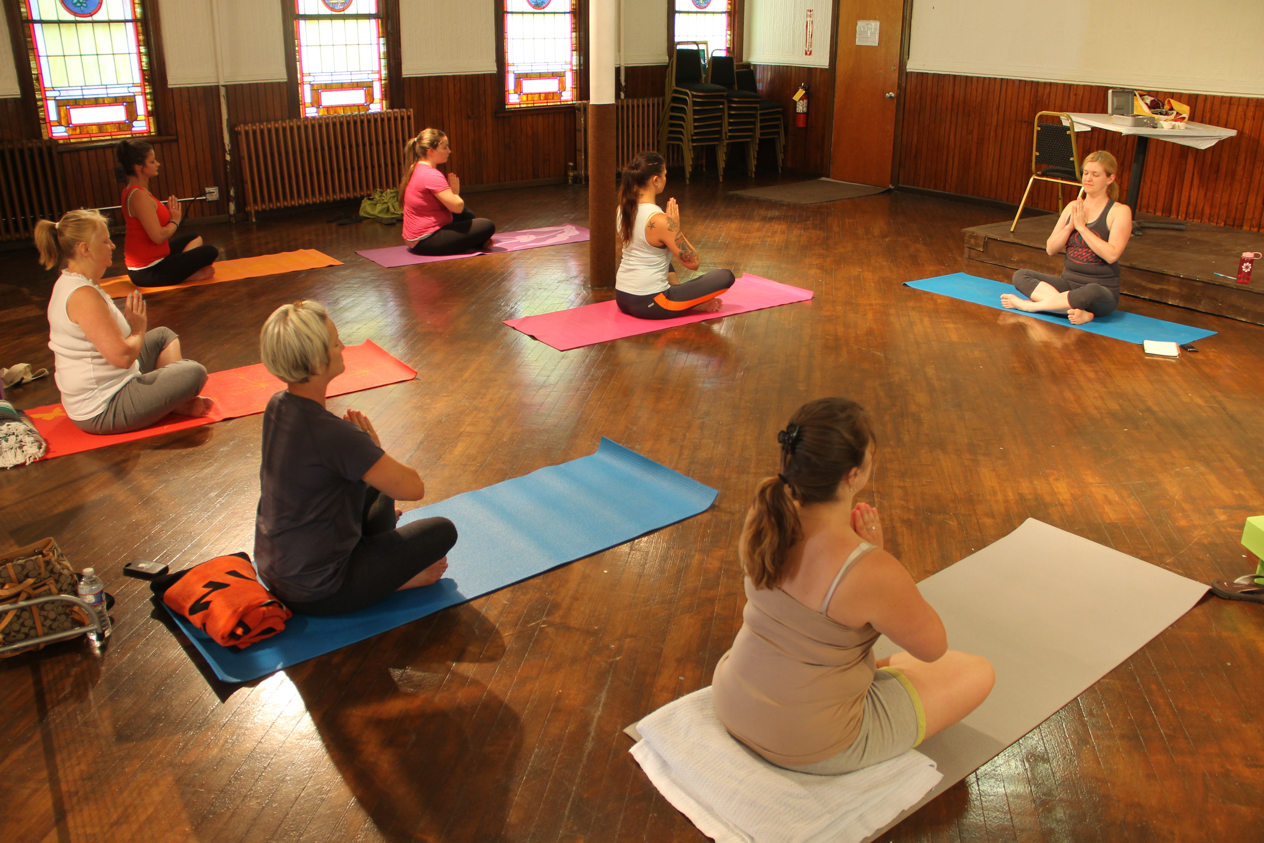 A Yoga fundraiser class was held yesterday (Monday, August 11, 2014) at the Tamaqua Community Arts Center to raise donations for ‘The Wounded Warrior Project’ through the ‘Ride With Pride 2′ in memory of SPC Christina Joy Leone. The class was taught by instructor Amy O’Brien.