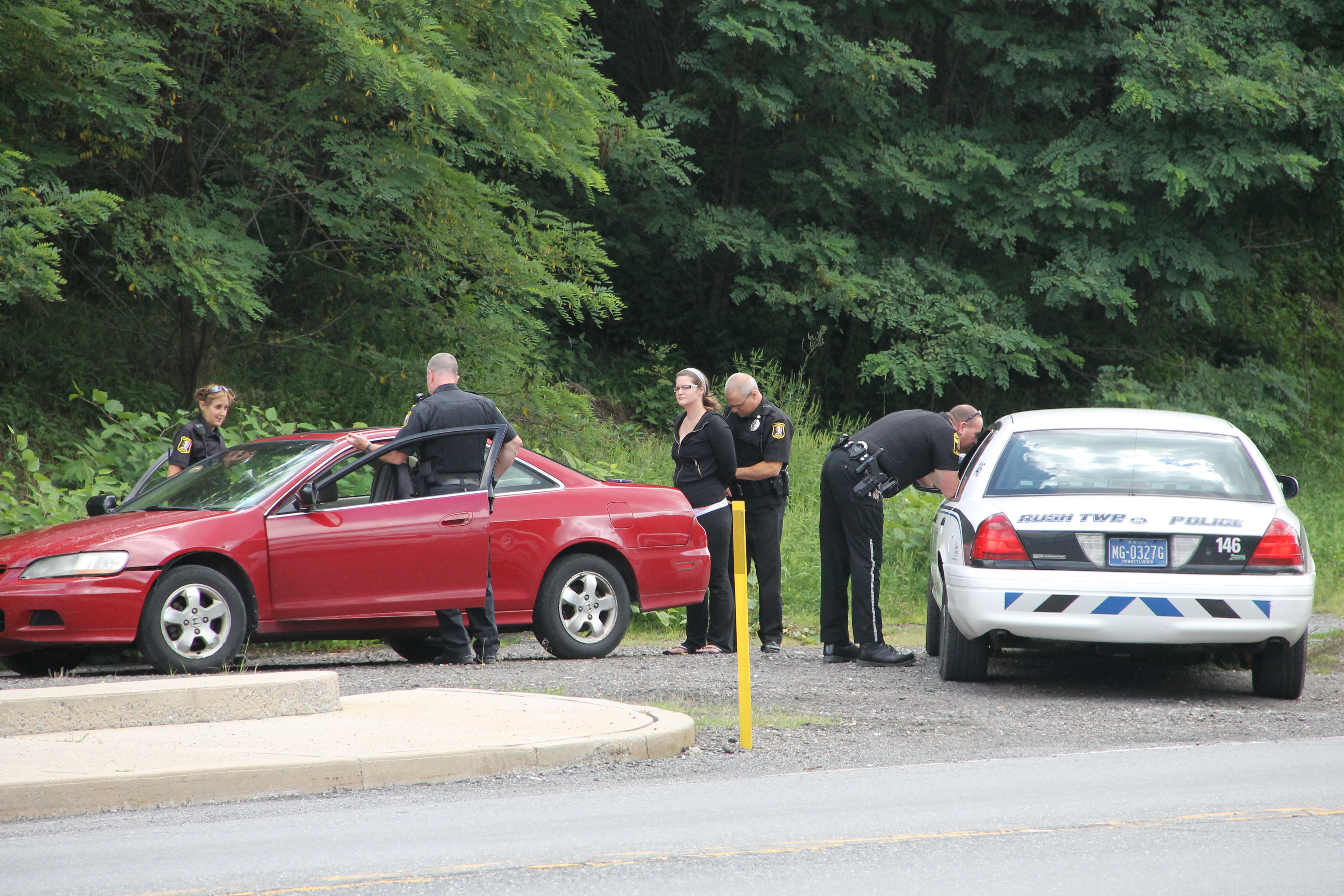 One woman was handcuffed and taken by officer Bekesy to the Tamaqua Police Station. It is unknown if she was charged with anything.