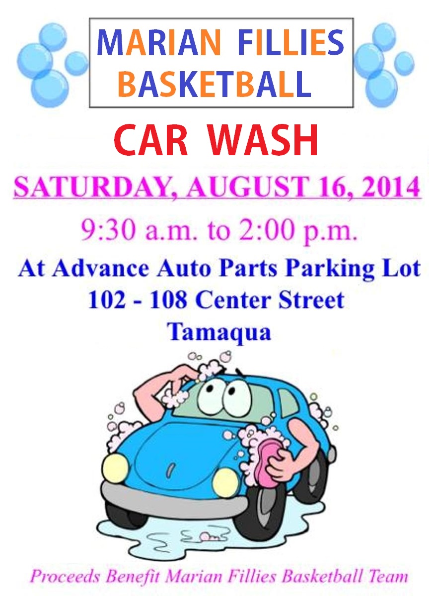 Members of the Marian Fillies Basketball Team are holding a car wash benefit today (Saturday, August 16, 2014) from 9:30 AM to 2 PM at the Advanced Auto Parts parking lot in Tamaqua.