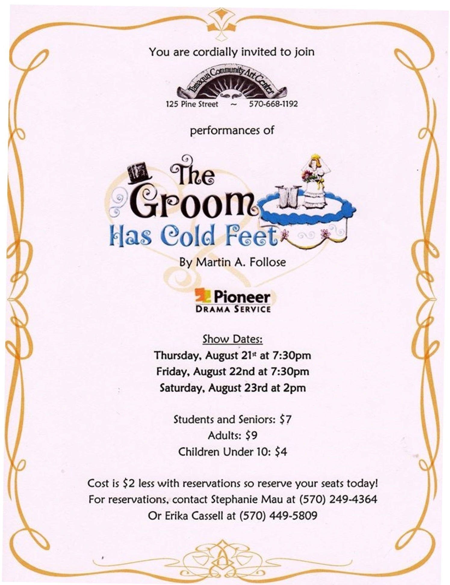 PERFORMANCE OF ‘THE GROOM HAS COLD FEET’ SET FOR THURSDAY, FRIDAY AND SATURDAY IN TAMAQUA