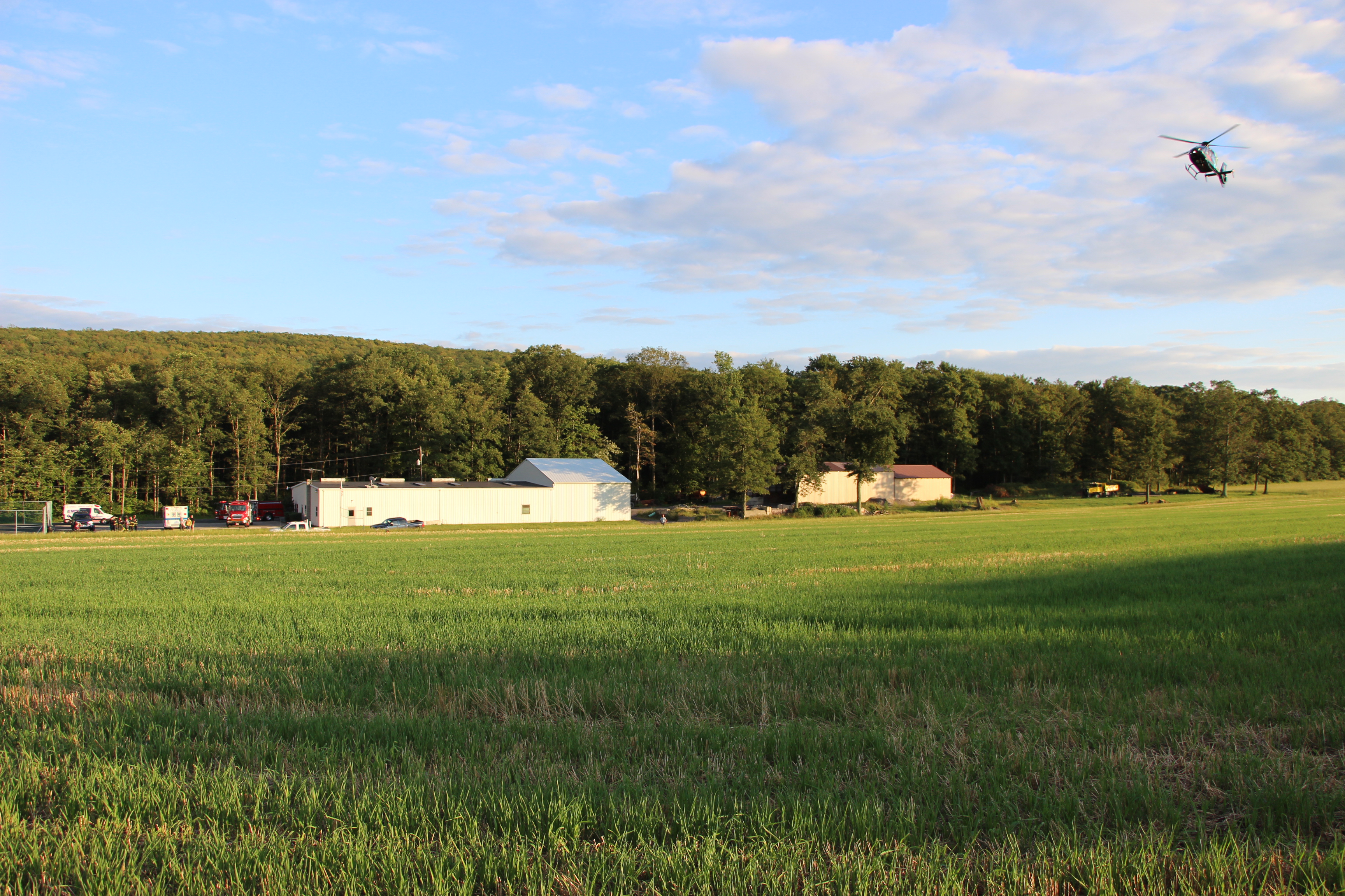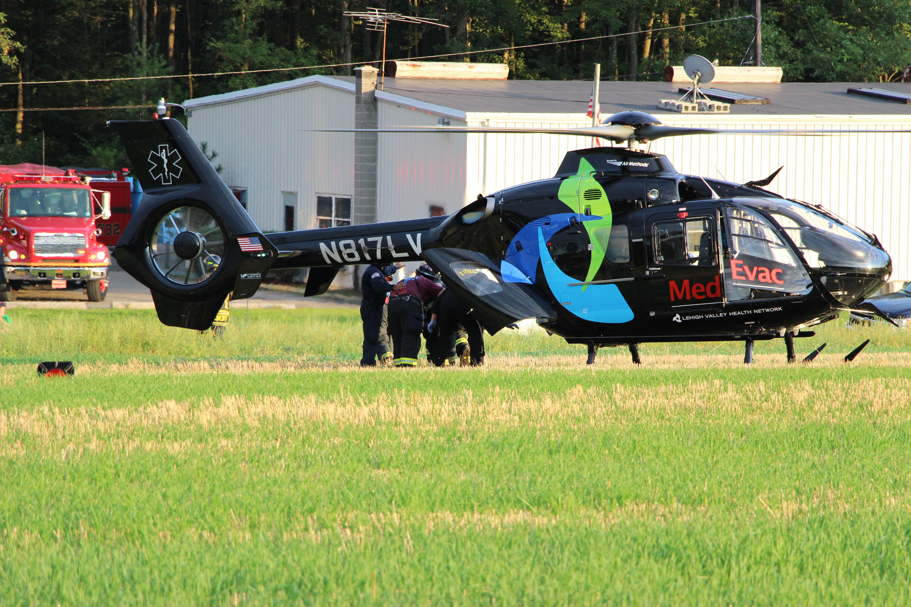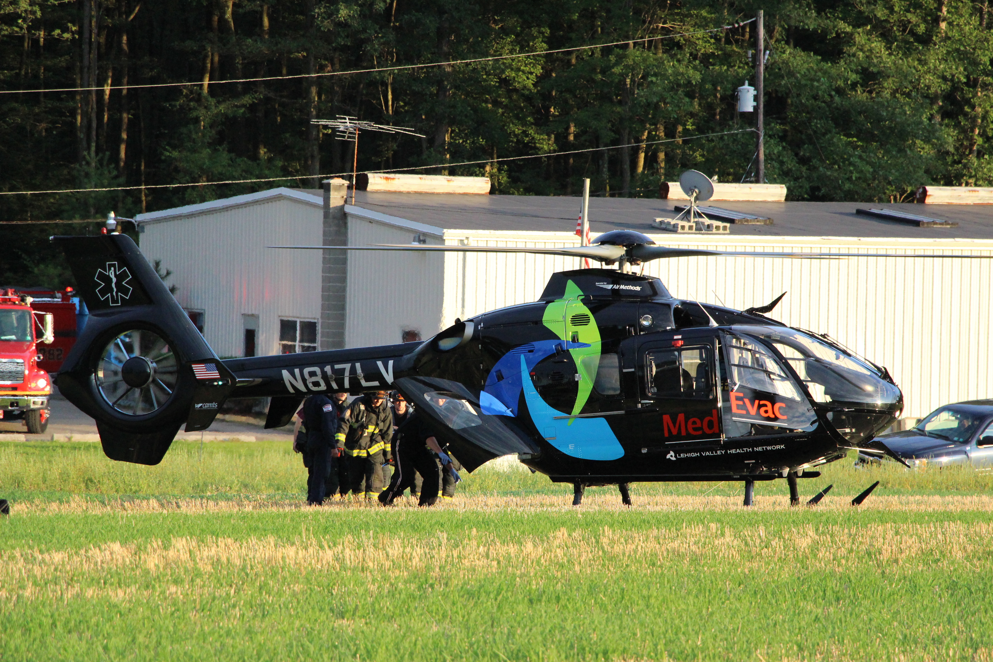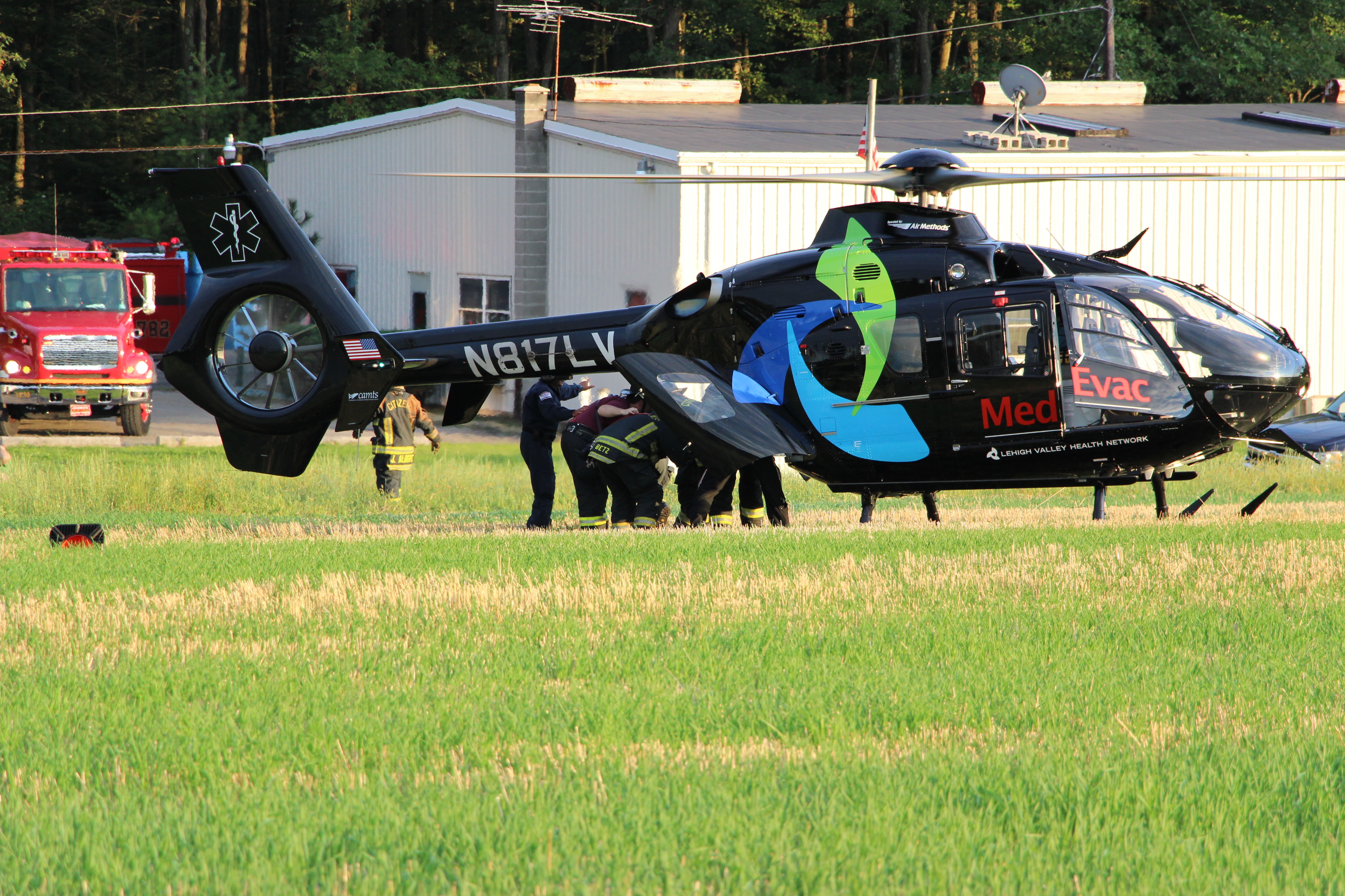 A Med-Evac helicopter landed on a large field next to the nearby township building to transport Goff to Lehigh Valley Trauma Center.
