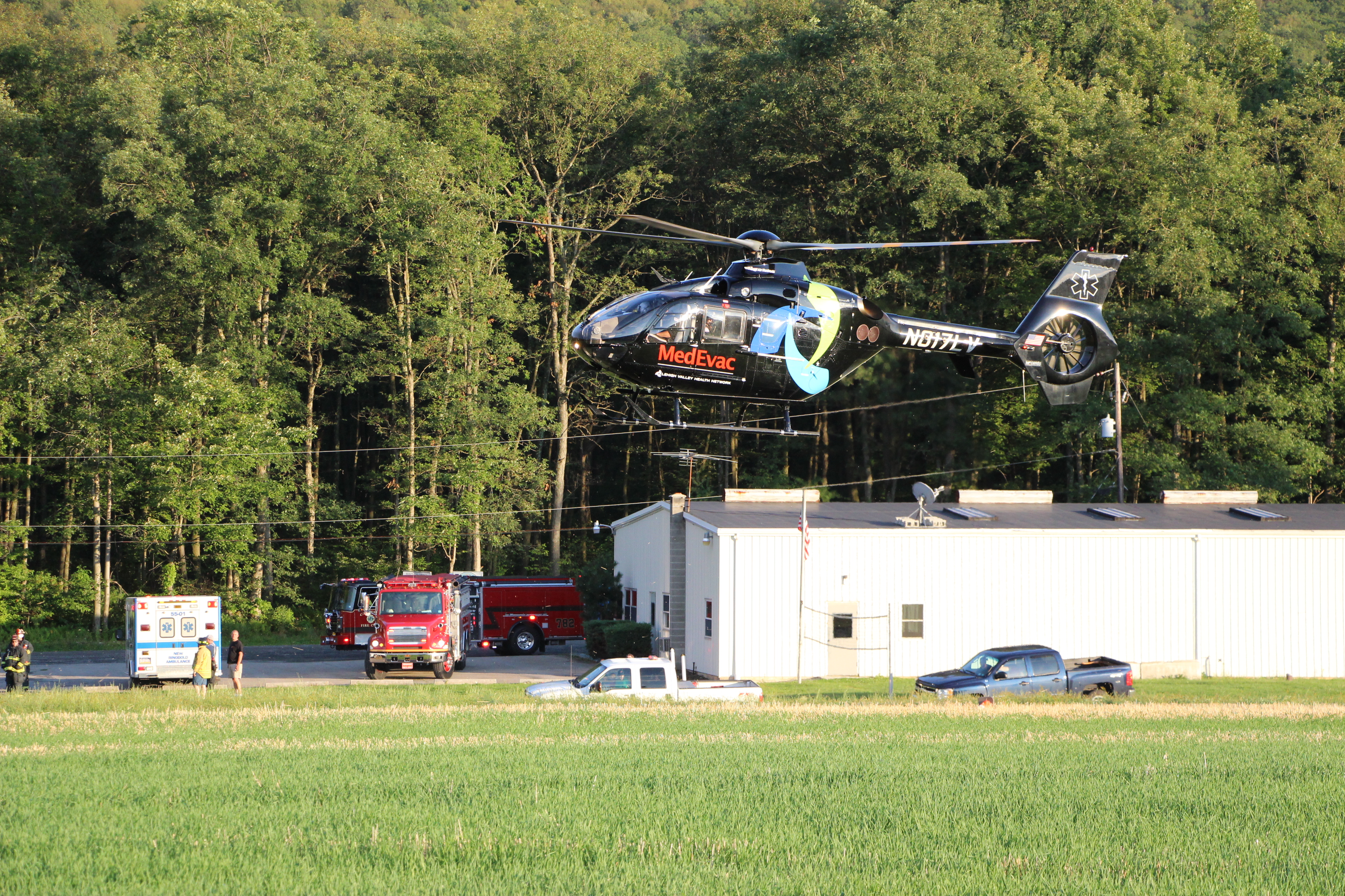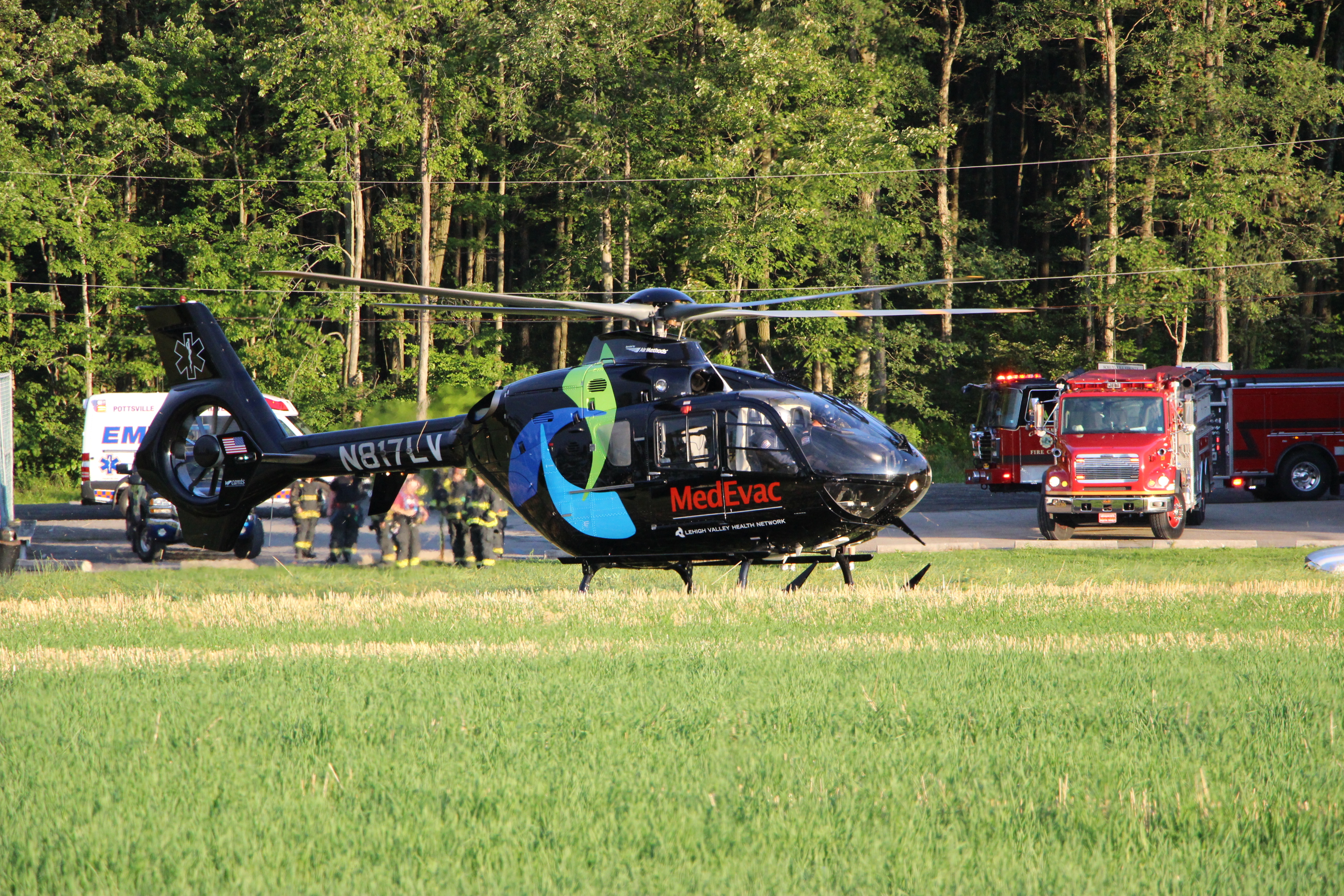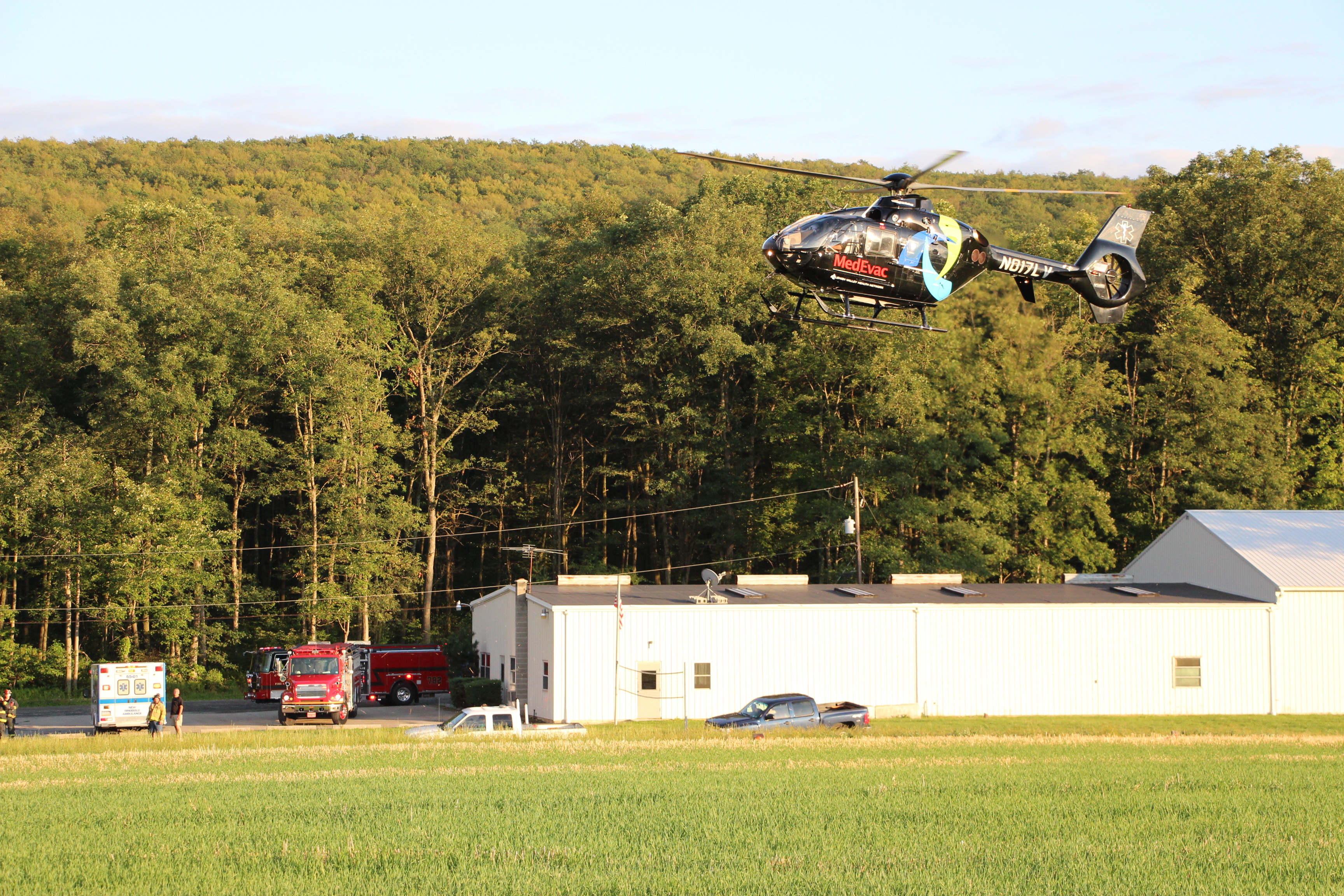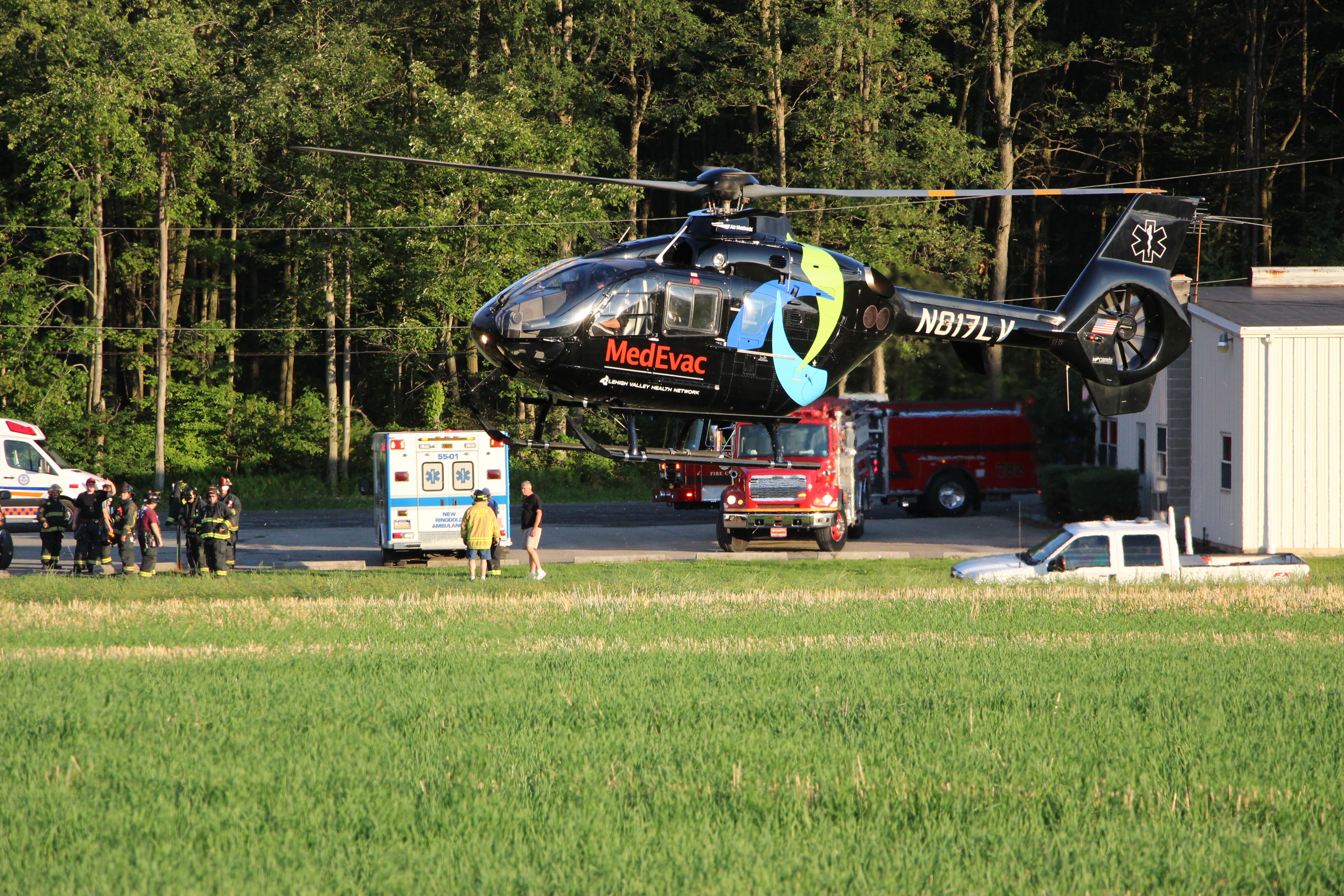 A Med-Evac helicopter landed on a large field next to the nearby township building to transport Goff to Lehigh Valley Trauma Center.