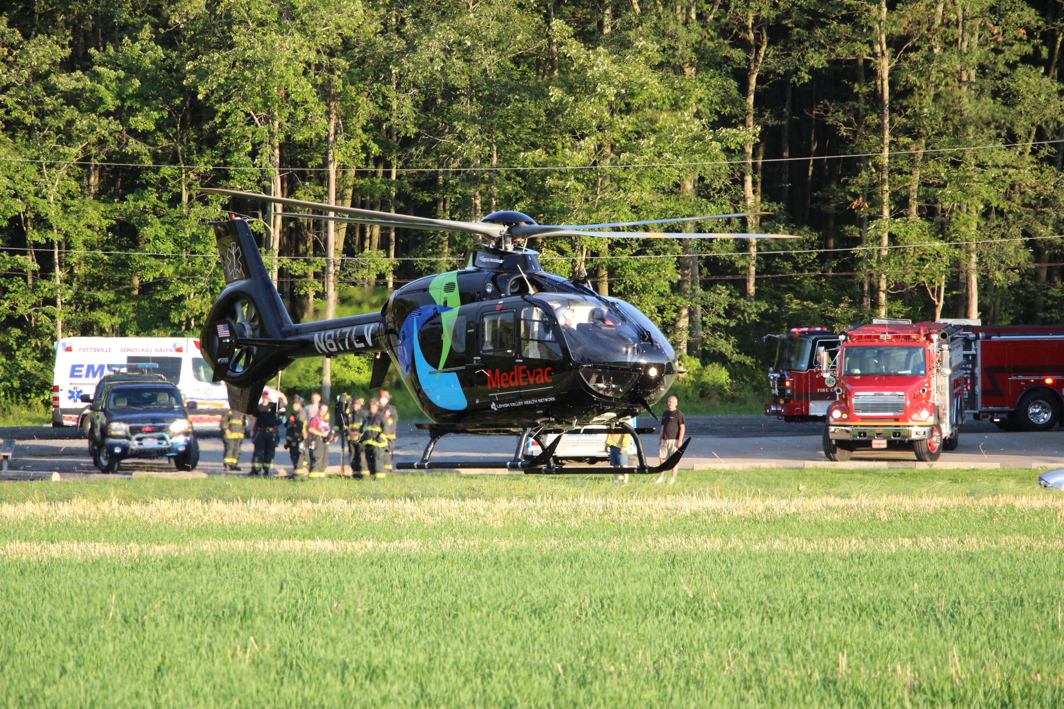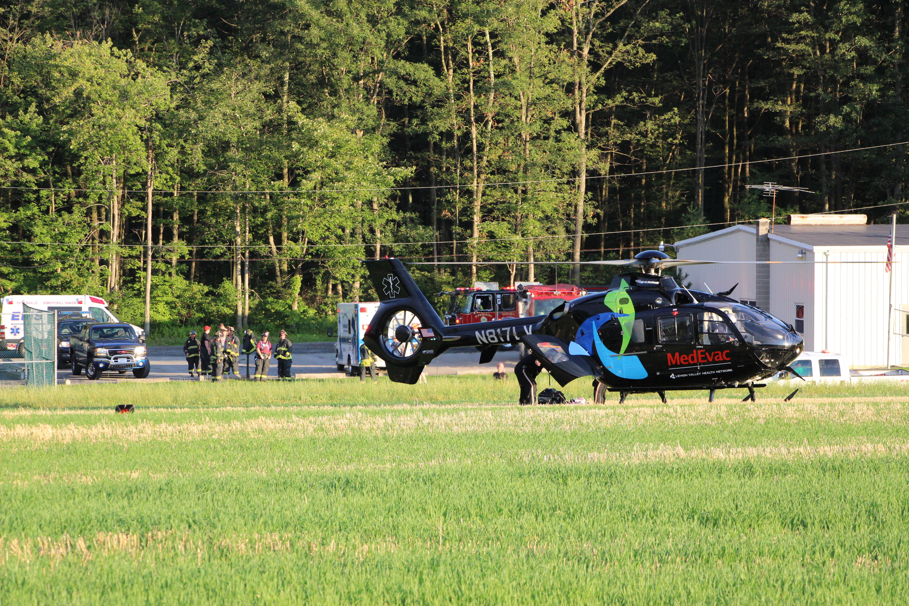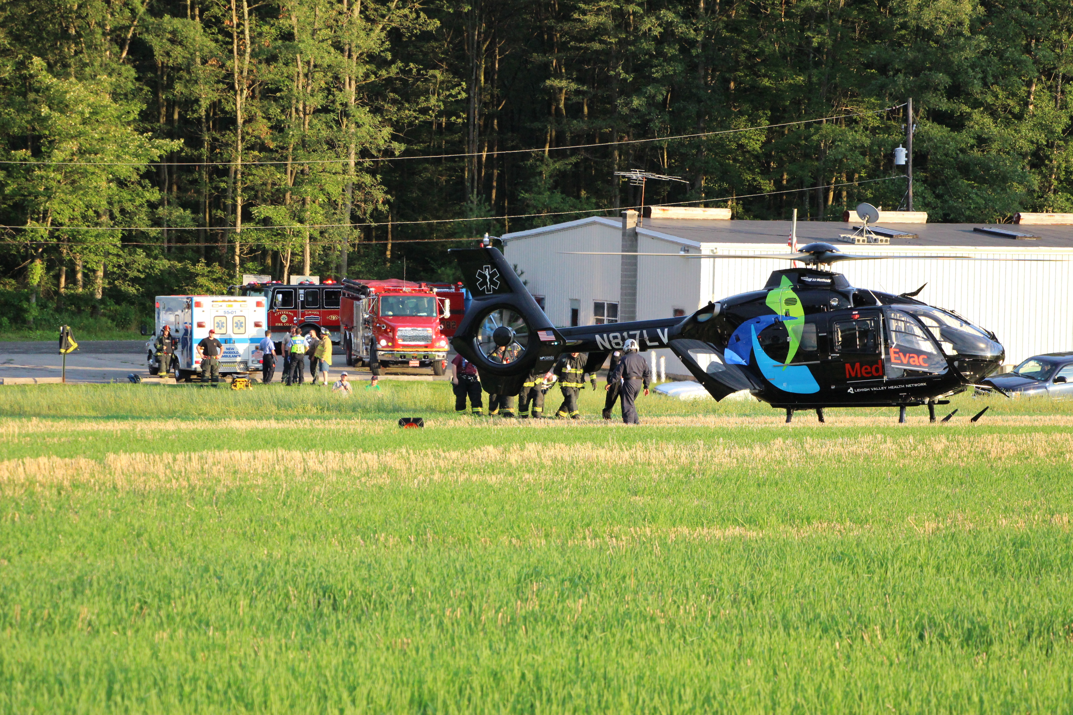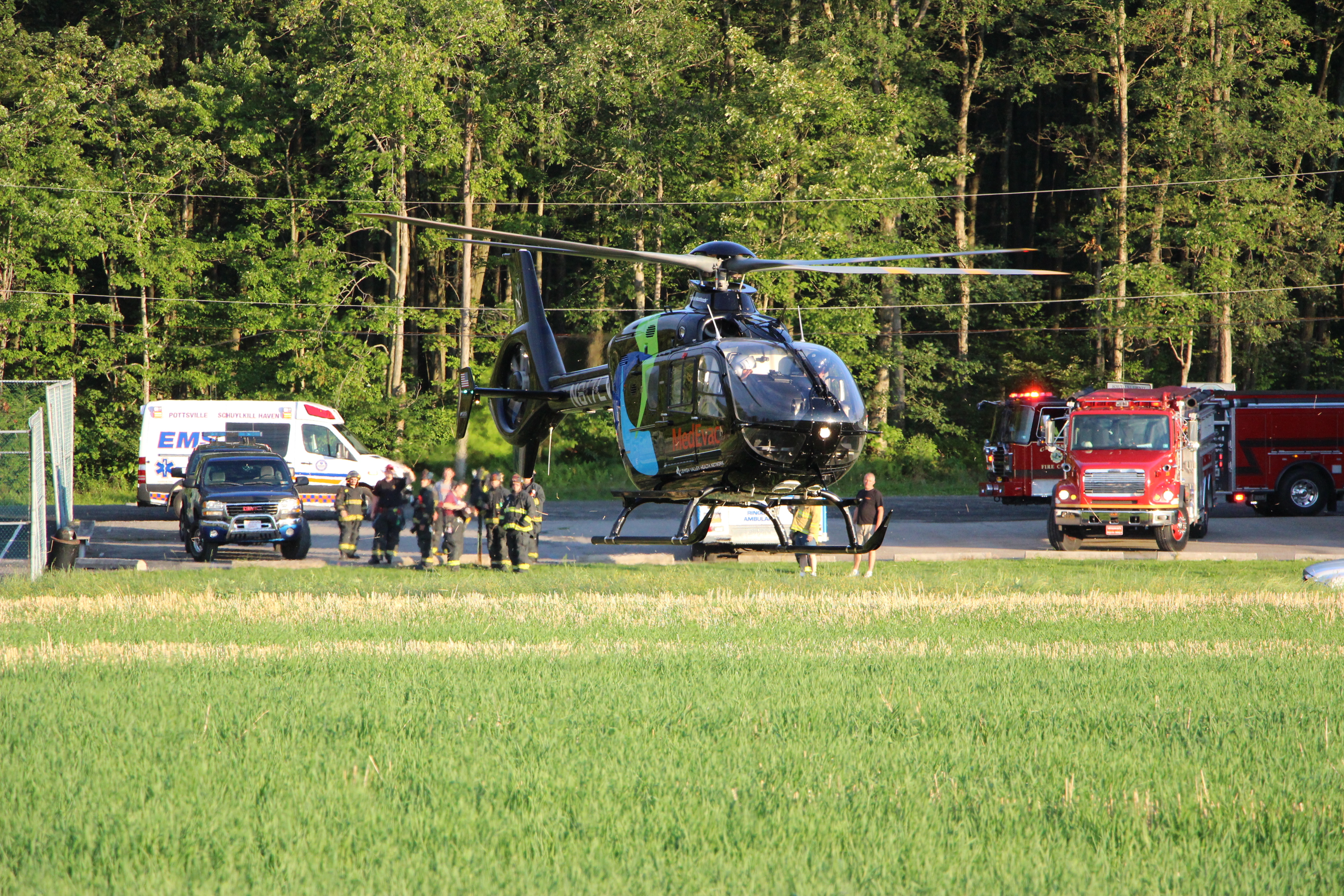 A Med-Evac helicopter landed on a large field next to the nearby township building to transport Goff to Lehigh Valley Trauma Center.
