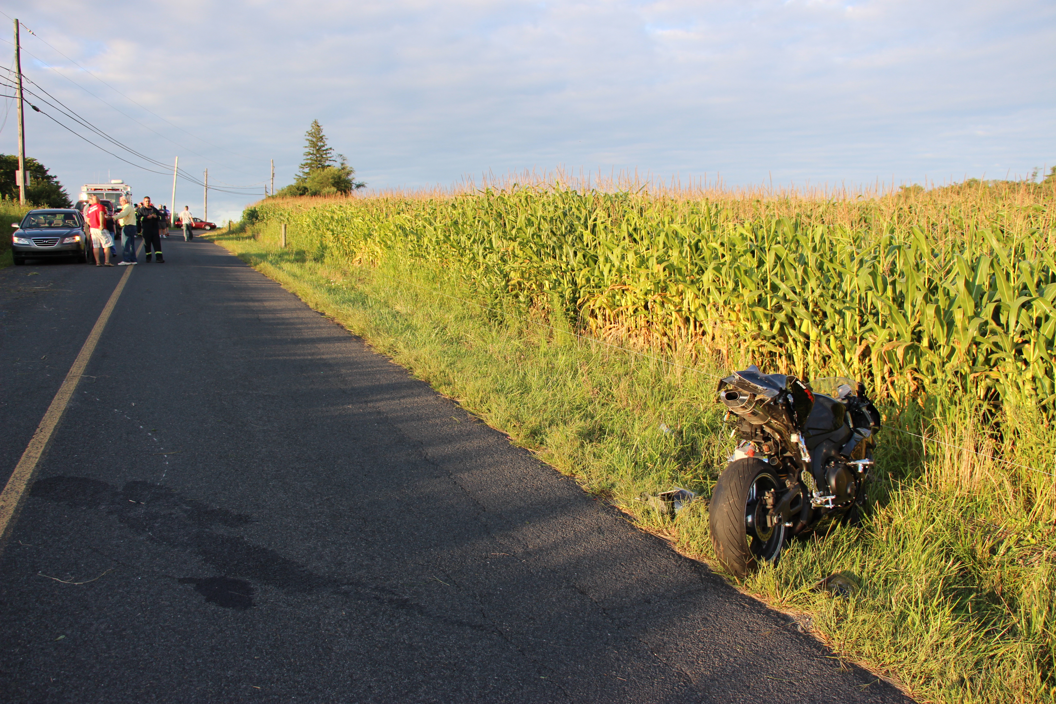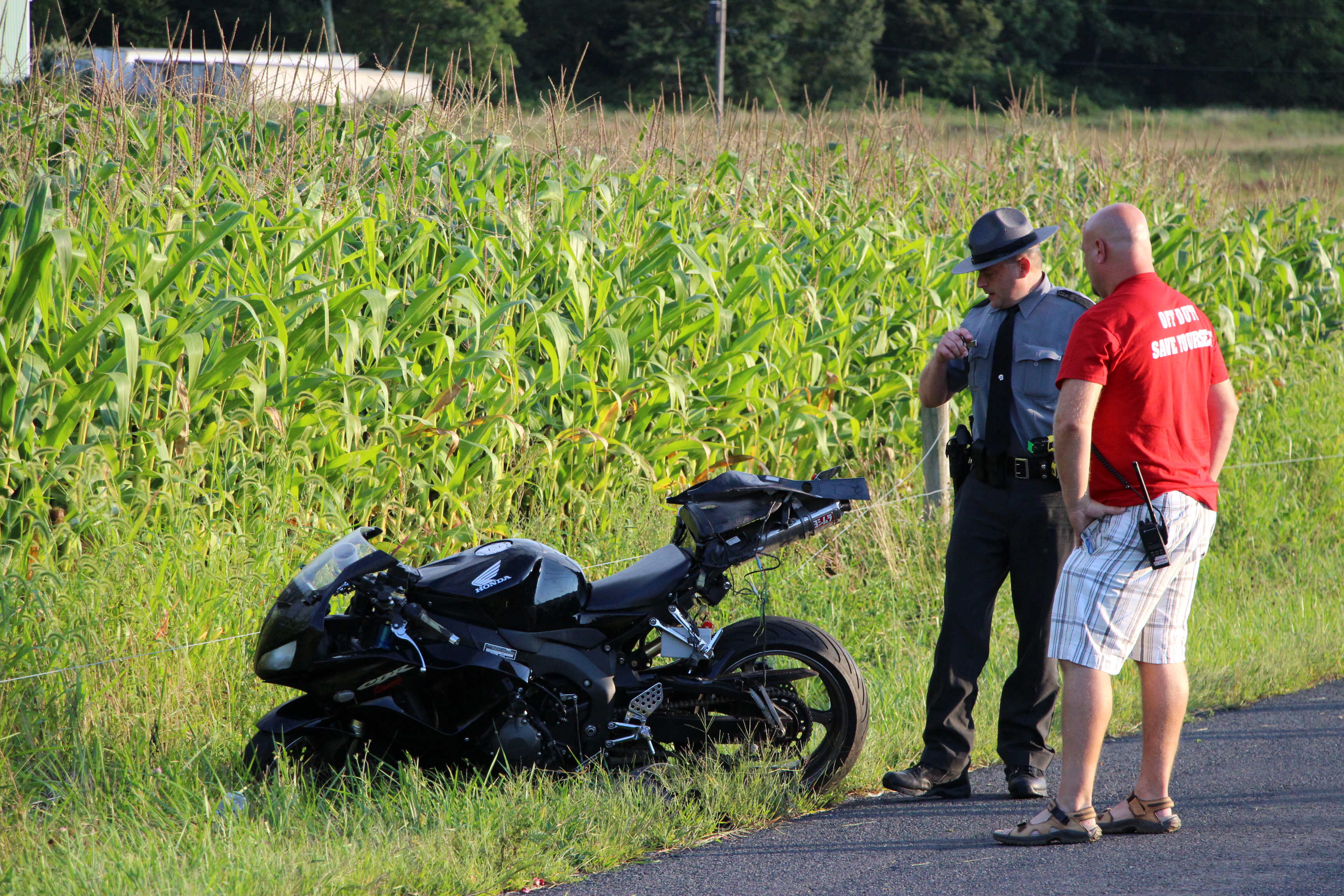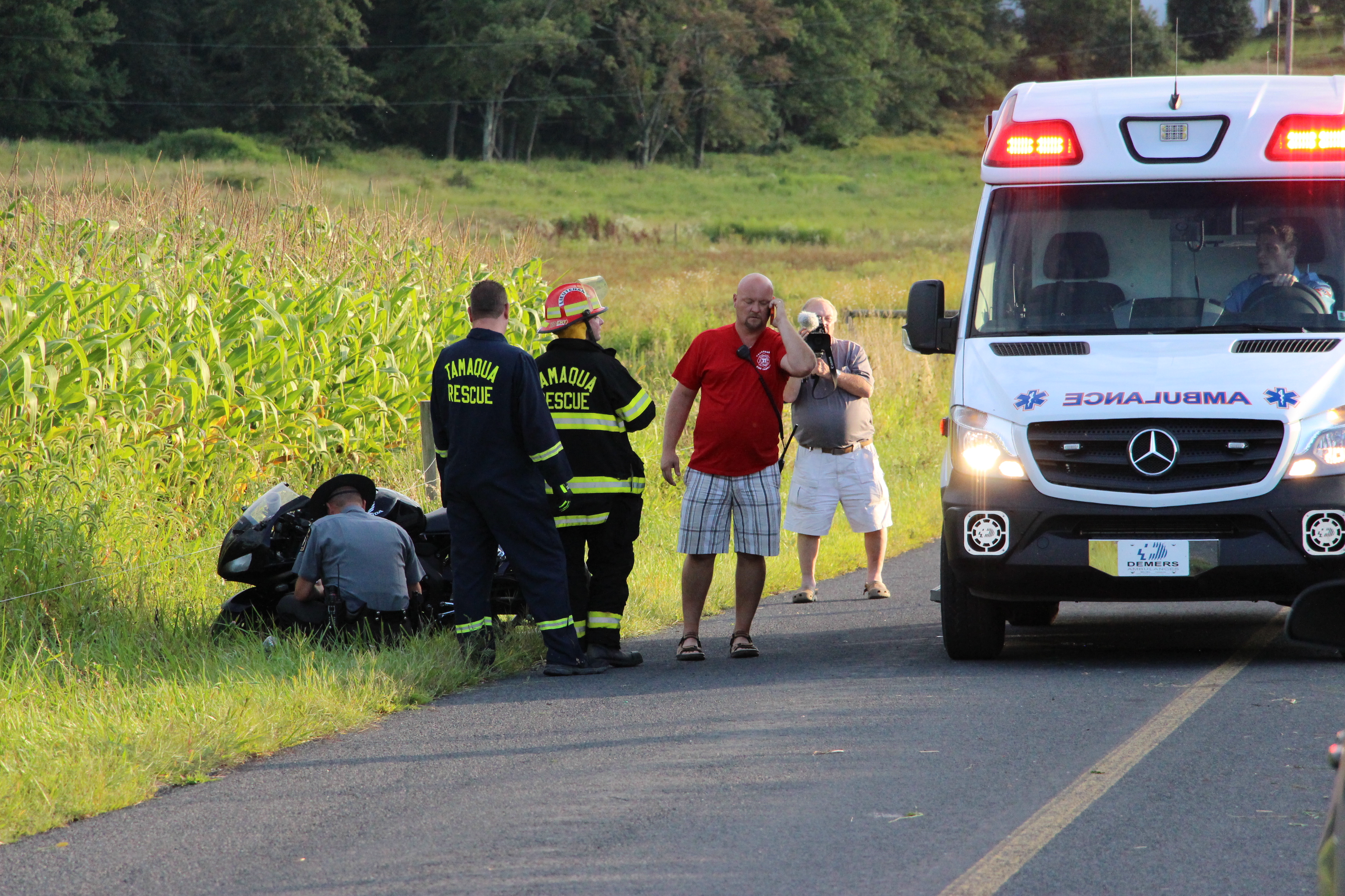 Mark Goff, 39, of Jim Thorpe, was flown via helicopter to a hospital after crashing his motorcycle around 6:35 PM today (Sunday, August 24, 2014) along the 900 block of Valley Road in Walker Township (Lewistown Valley/Tamaqua).