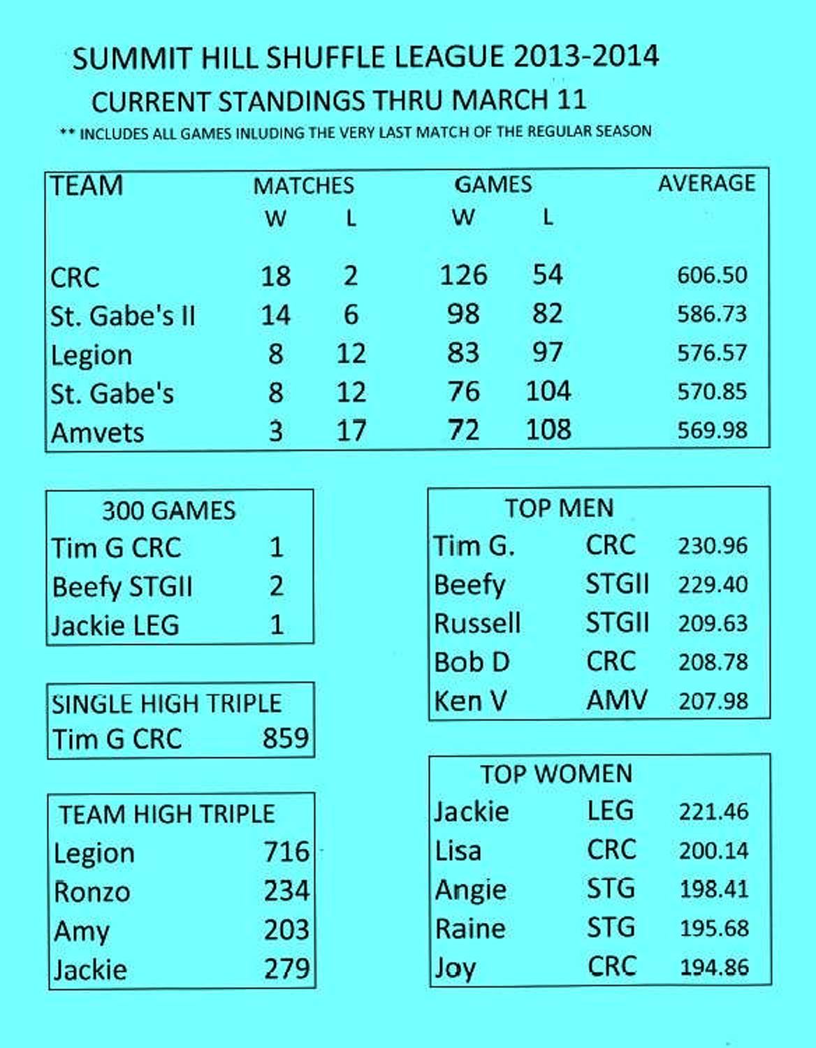 Members of the Coaldale Russian Club took first place during this year’s Summit Hill Shuffle Alley League Tournament (which ended in April).