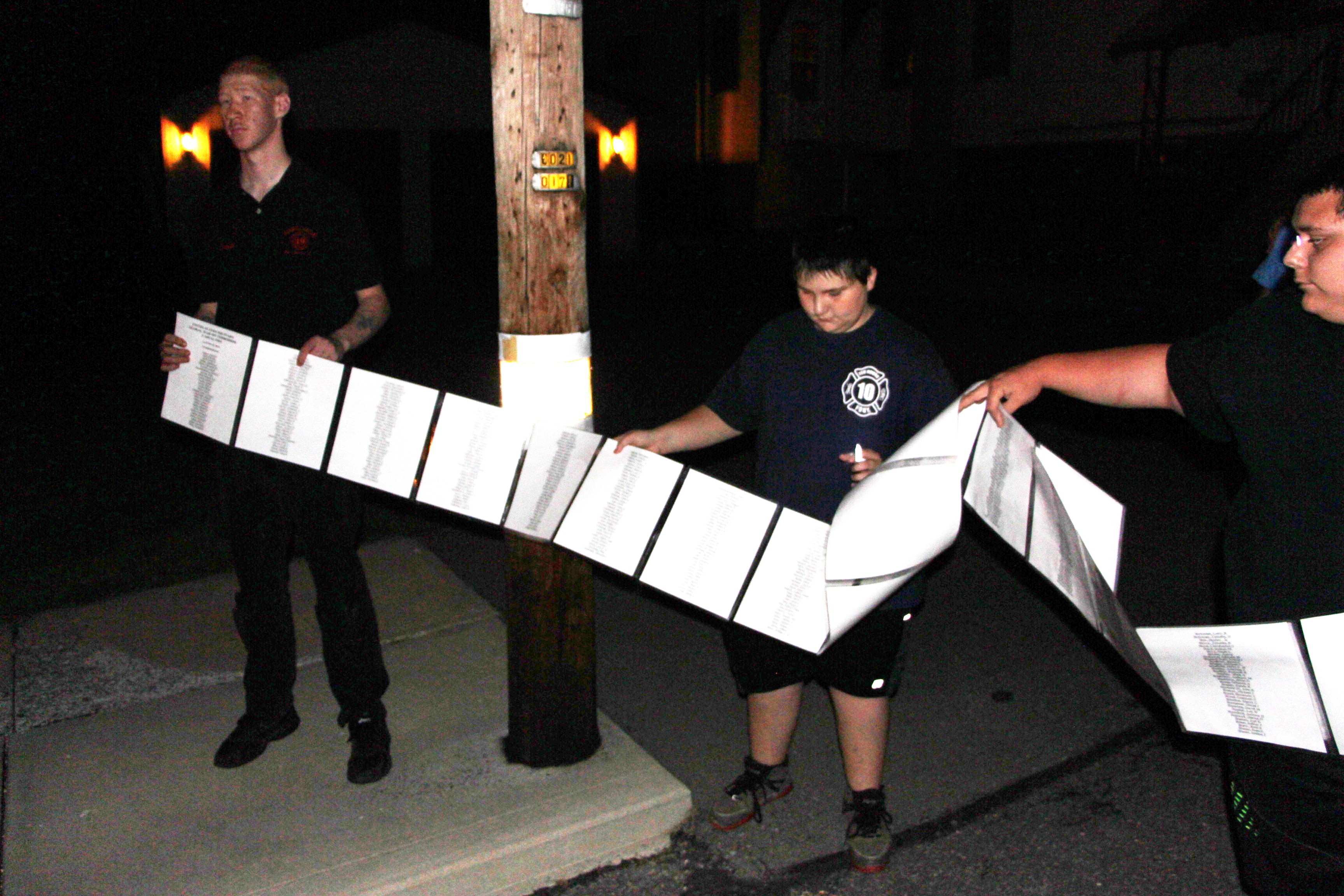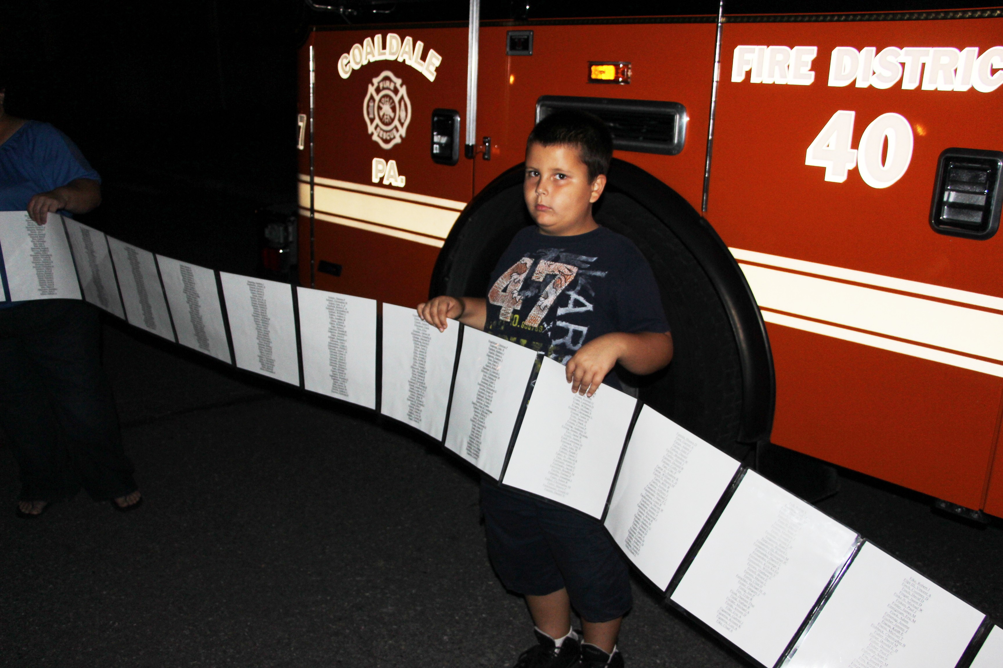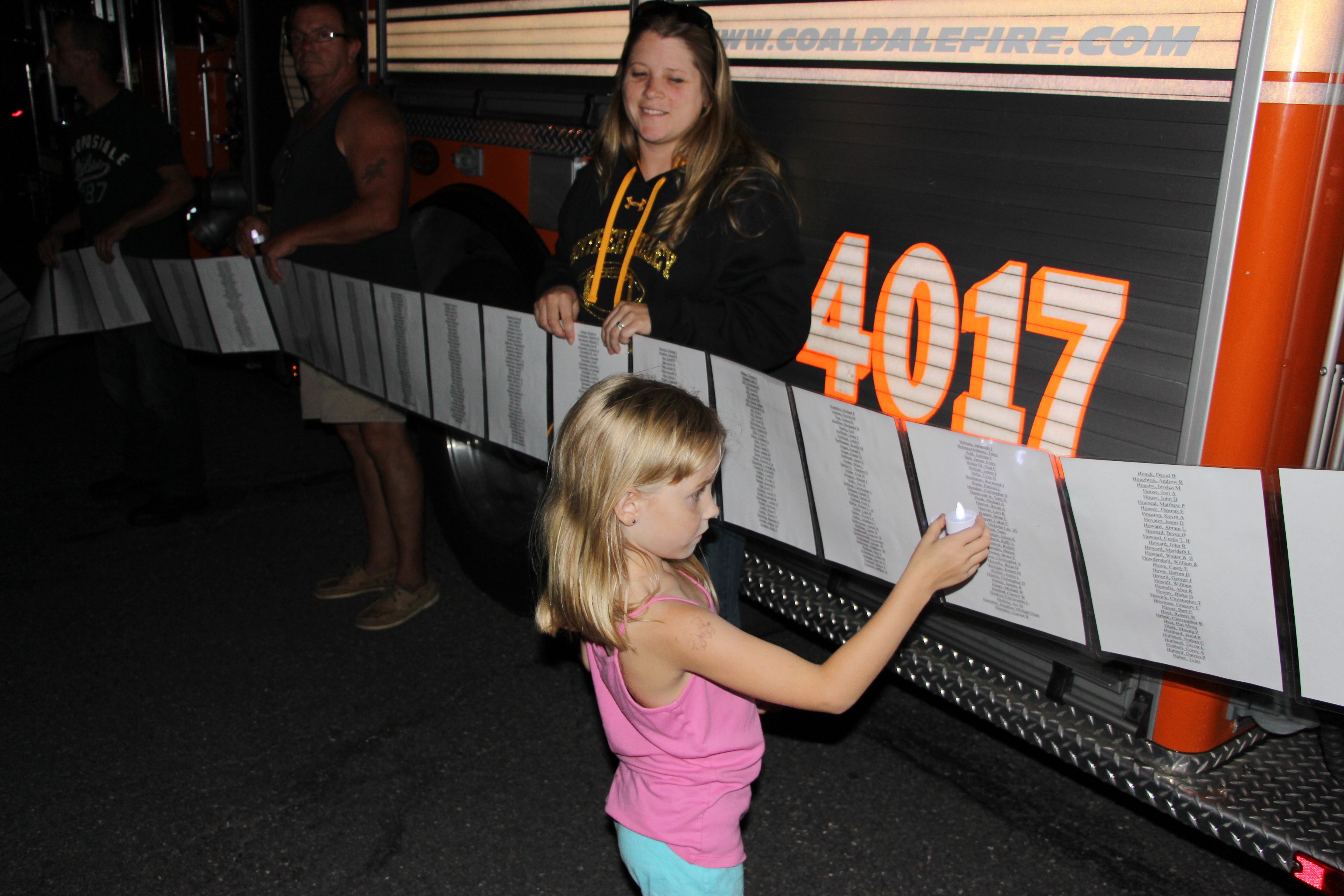 Regular and Auxiliary members of the Coaldale VFW Post 6982 held their annual September 11 Candlelight Service yesterday (Thursday, September 11, 2014) outside their post.