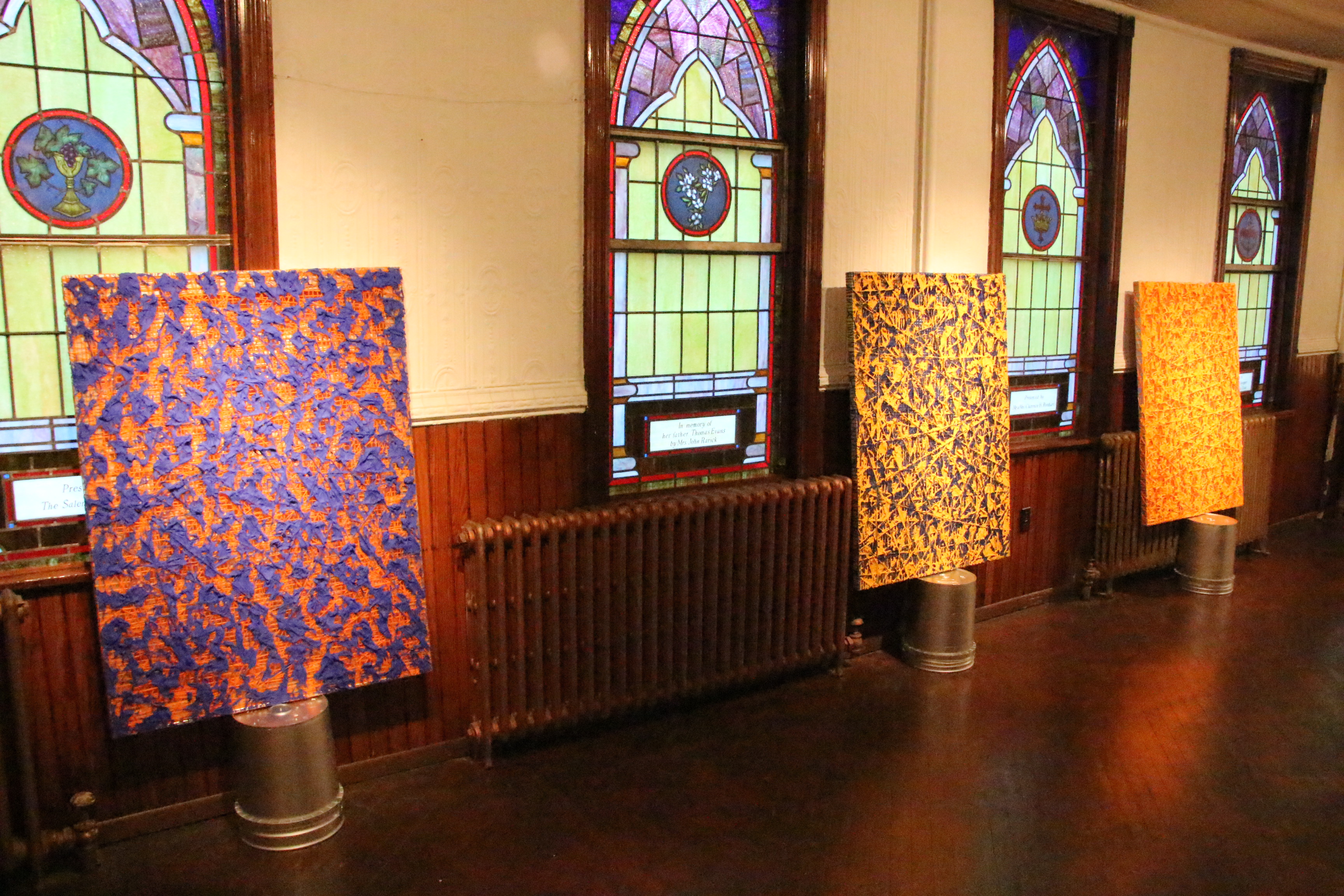 Tamaqua “Artist in Residence” recipient Jeffrey Collins held an Artist Meet and Greet on Saturday, September 13, 2014 at the Tamaqua Community Arts Center. On display were works he completed in the Tamaqua Elks Lodge building this summer. The title of the display is called “Jeffrey Collins Elk Paintings”. His works will remain on display at the center, 125 Pine Street, until Sunday, September 28, 2014.