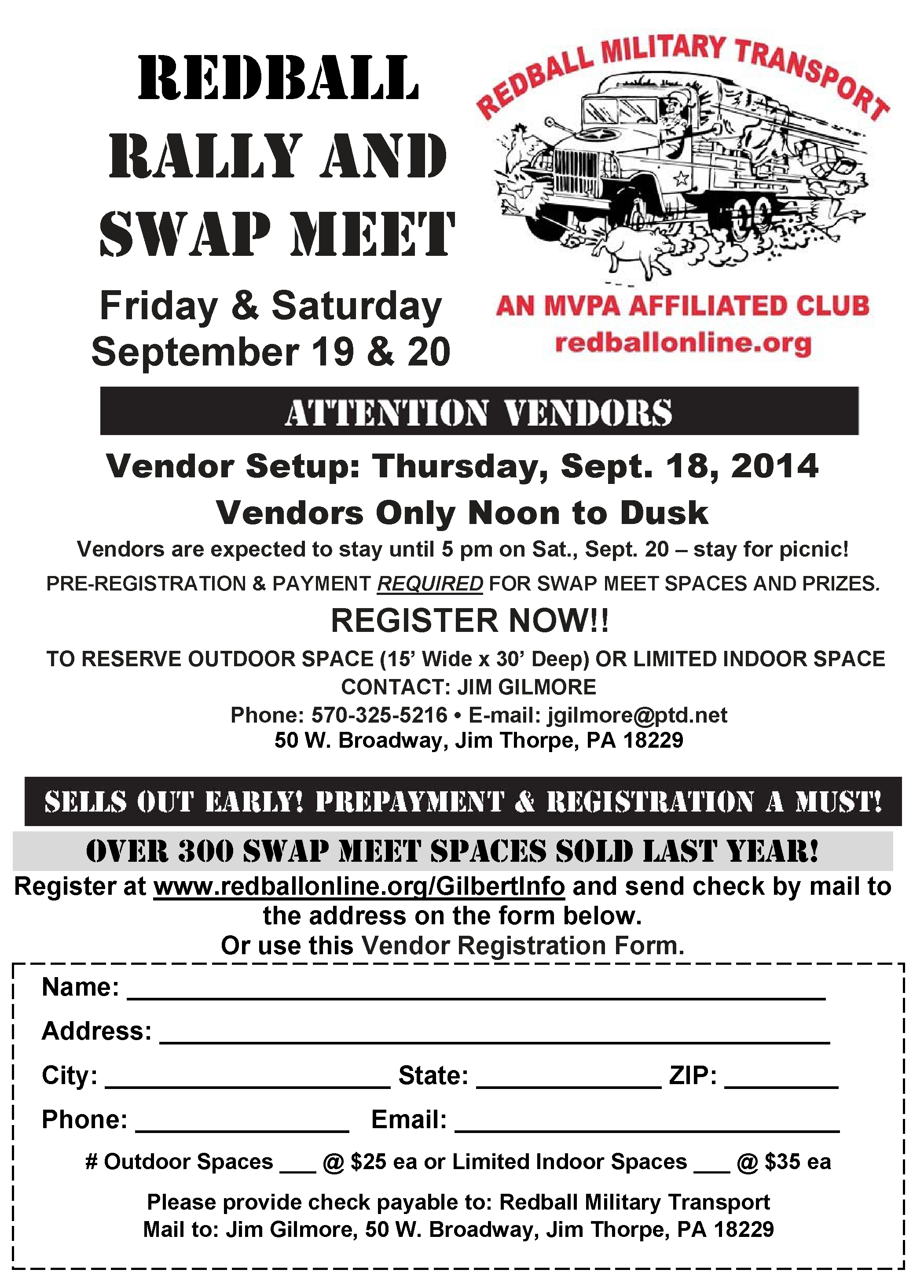 Even though it is not in the Tamaqua area, the following 2-day event is still worth visiting. The Annual Redball Gilbert Military Vehicle Rally and Swap Meet is scheduled Friday, September 19 and Saturday, September 20, 2014 from 8 AM to 5 PM both days.