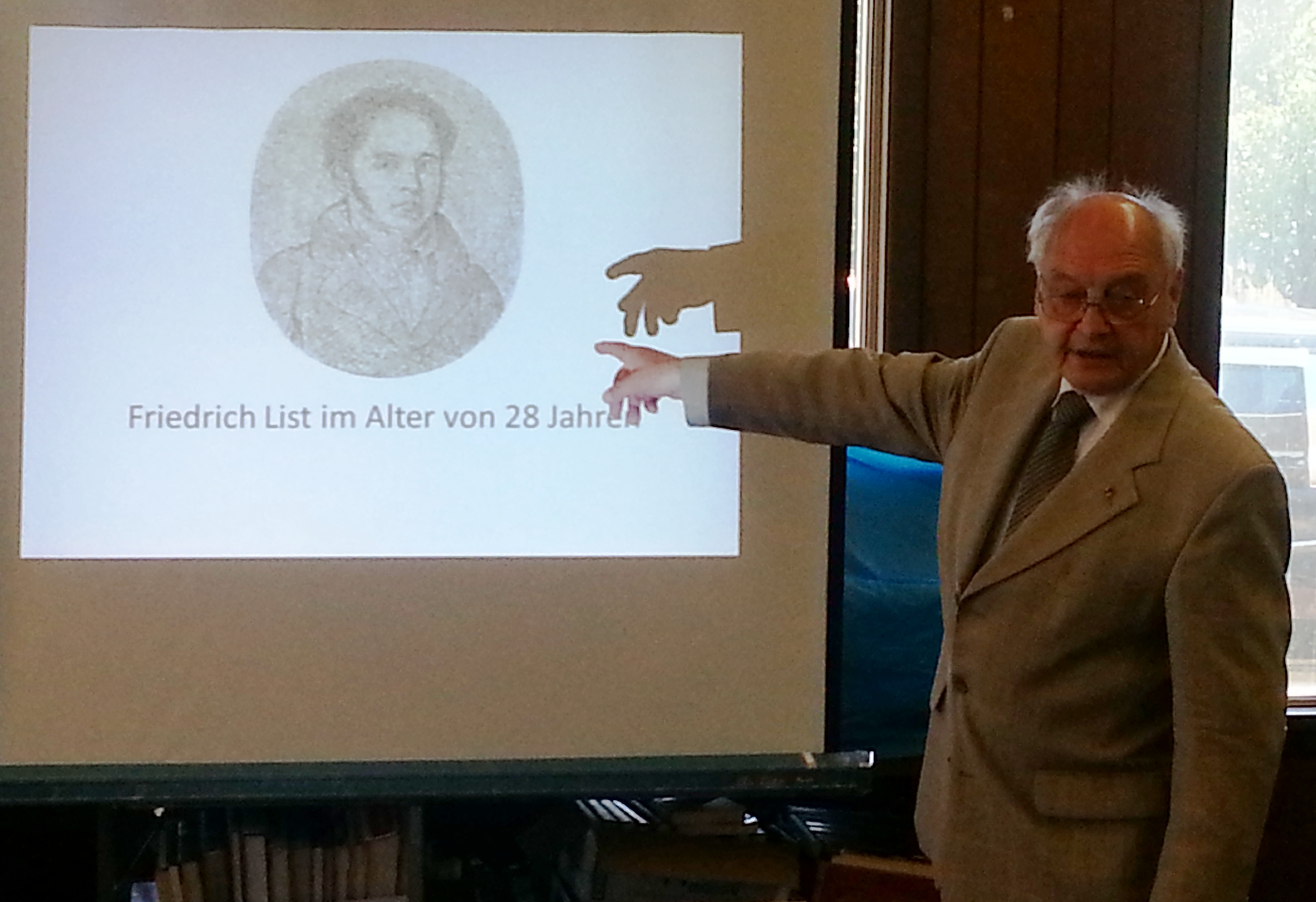 Professor Dr Eugen Wendler, of Reutlingen University in Germany, spent time recently talking to Tamaqua residents and others at the Tamaqua Library about the life of pioneer Friedrich List. During the presentation (held Sept. 23, 2014), Wendler spoke about List’s involvement with the creation of the railroad throughout our area.
