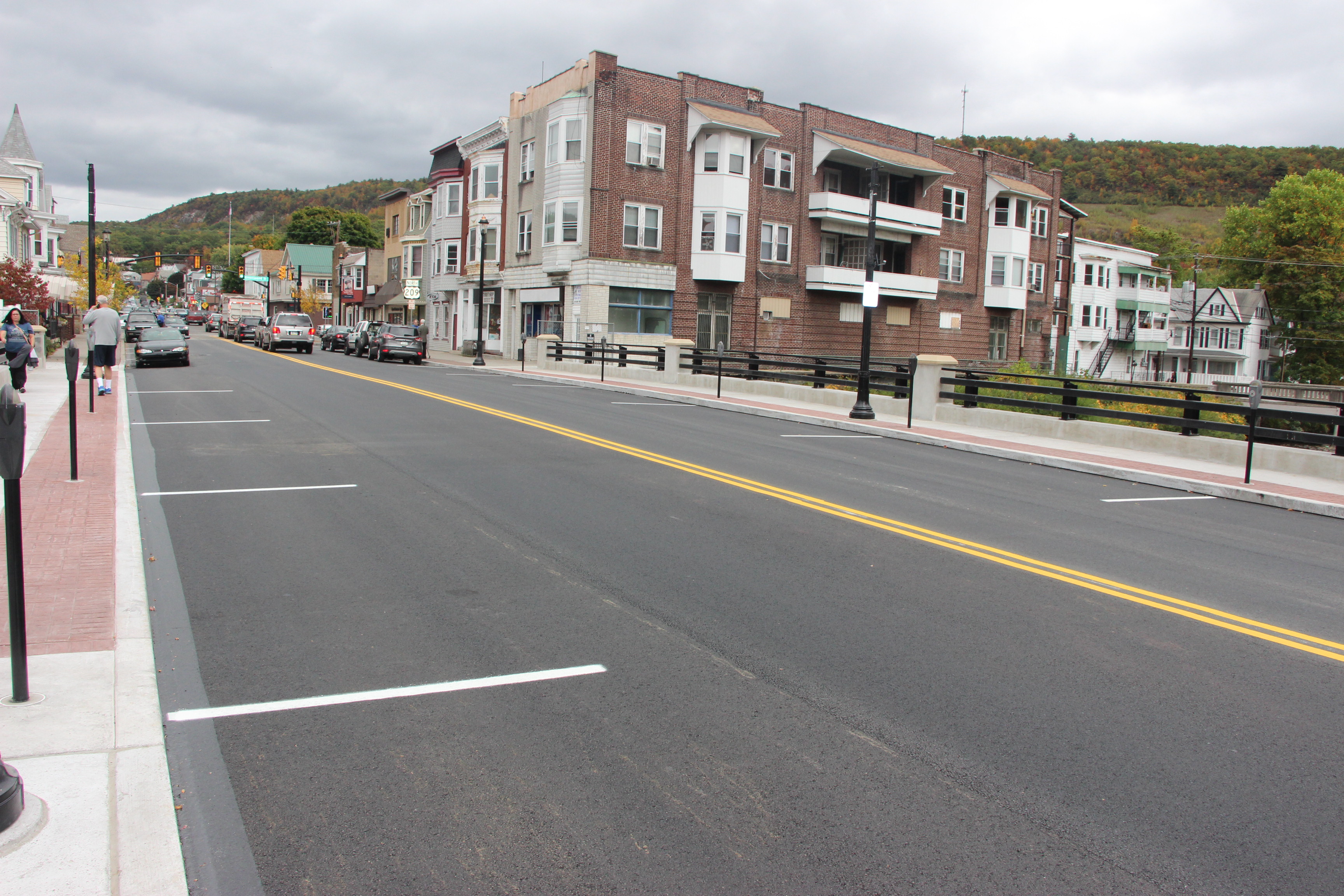 Officials said that the bridge is a contributing resource in the Tamaqua Historic District. Several historic elements were included in the bridge design such as tapered and curved reinforced concrete piers with aesthetic treatments, curved pilasters, brick-patterned concrete sidewalks, decorative railings and two decorative street lights.