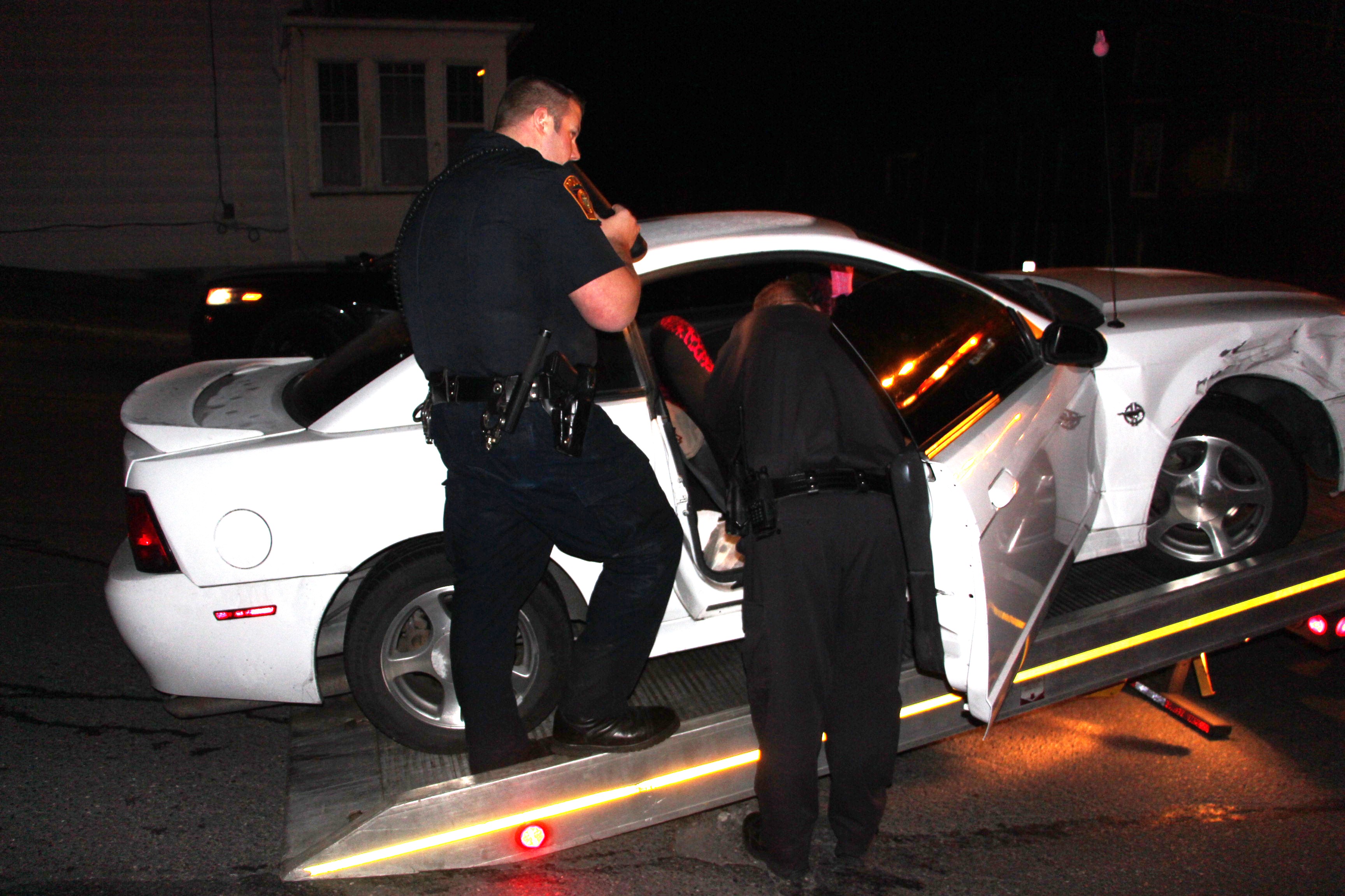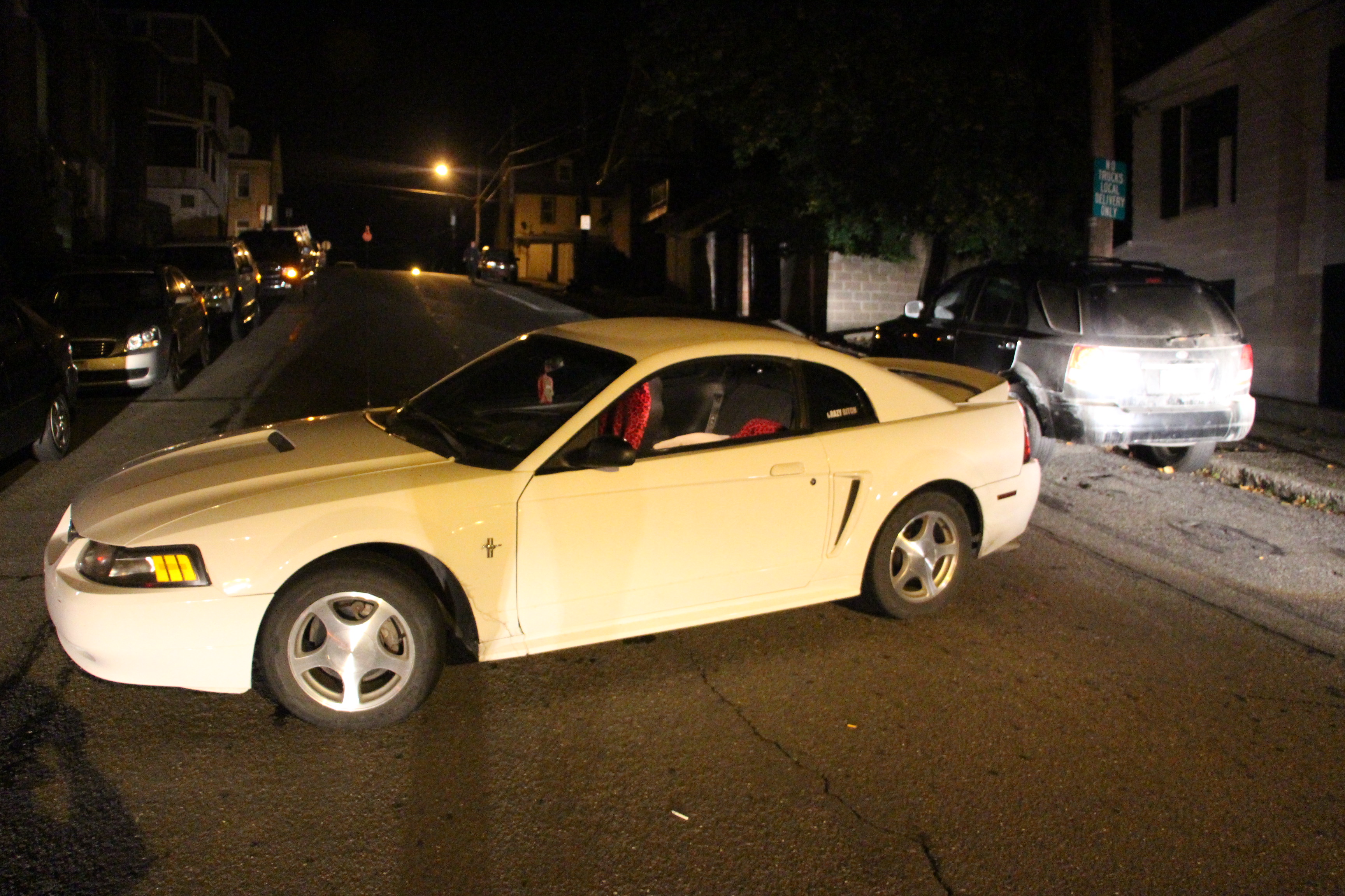 The woman was driving a white Ford Mustang, which was disabled in the middle of the road when officers arrived.