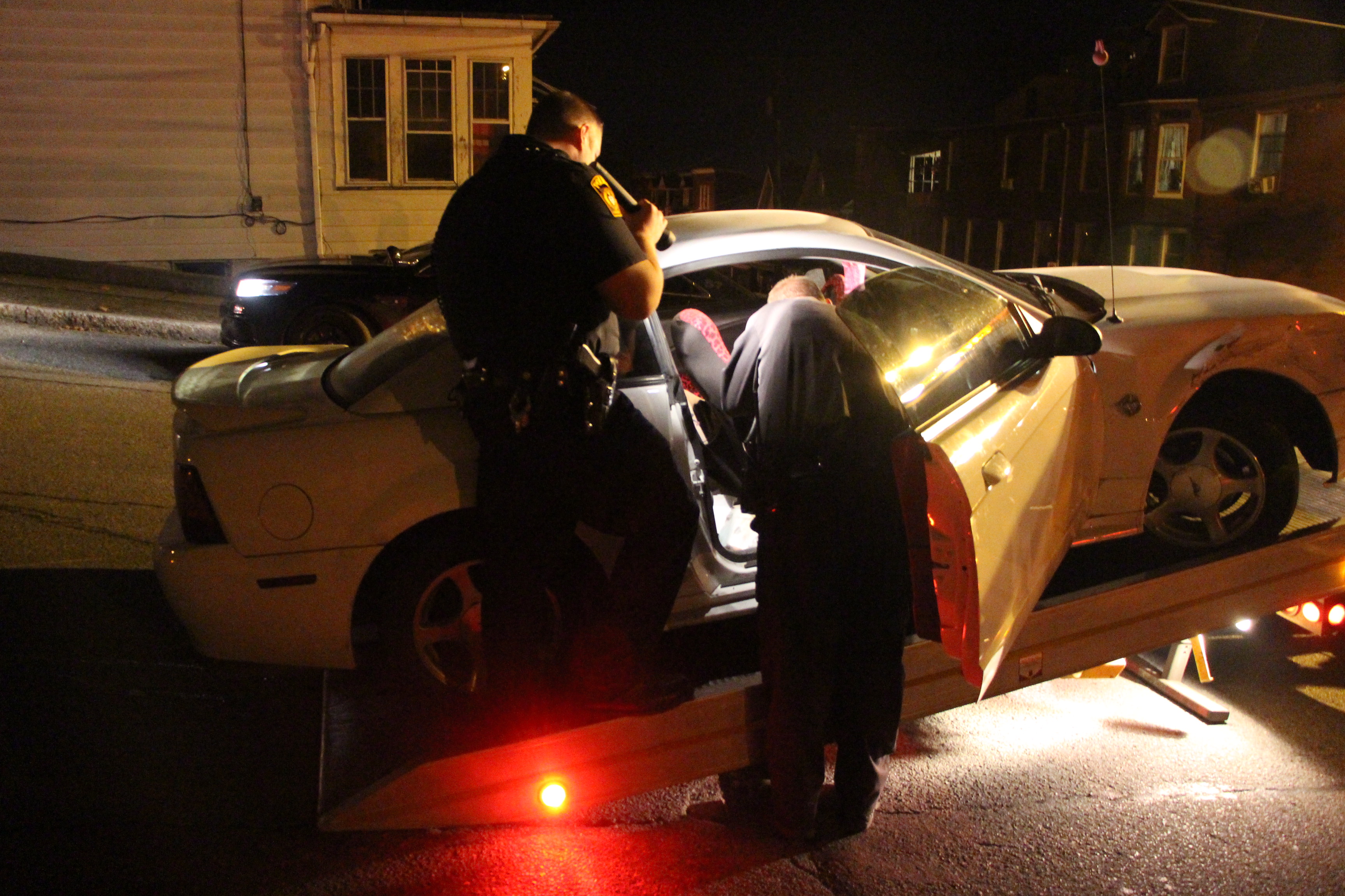 A woman was taken into custody by Tamaqua Police around 1:40 AM today (Thursday, October 2, 2014) after crashing her car into a parked SUV (Kia Sorrento) on East Mauch Chunk Street in Tamaqua.