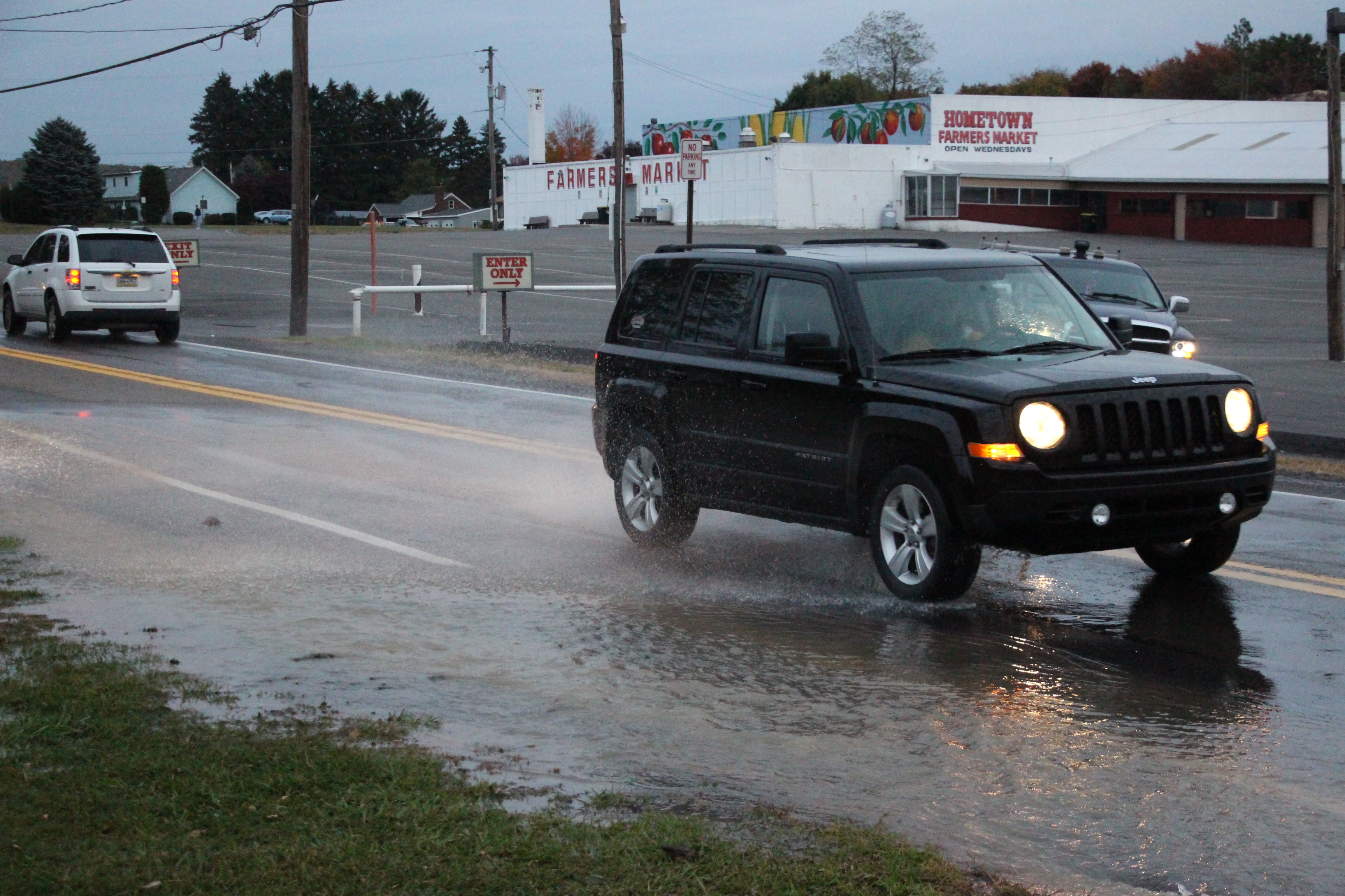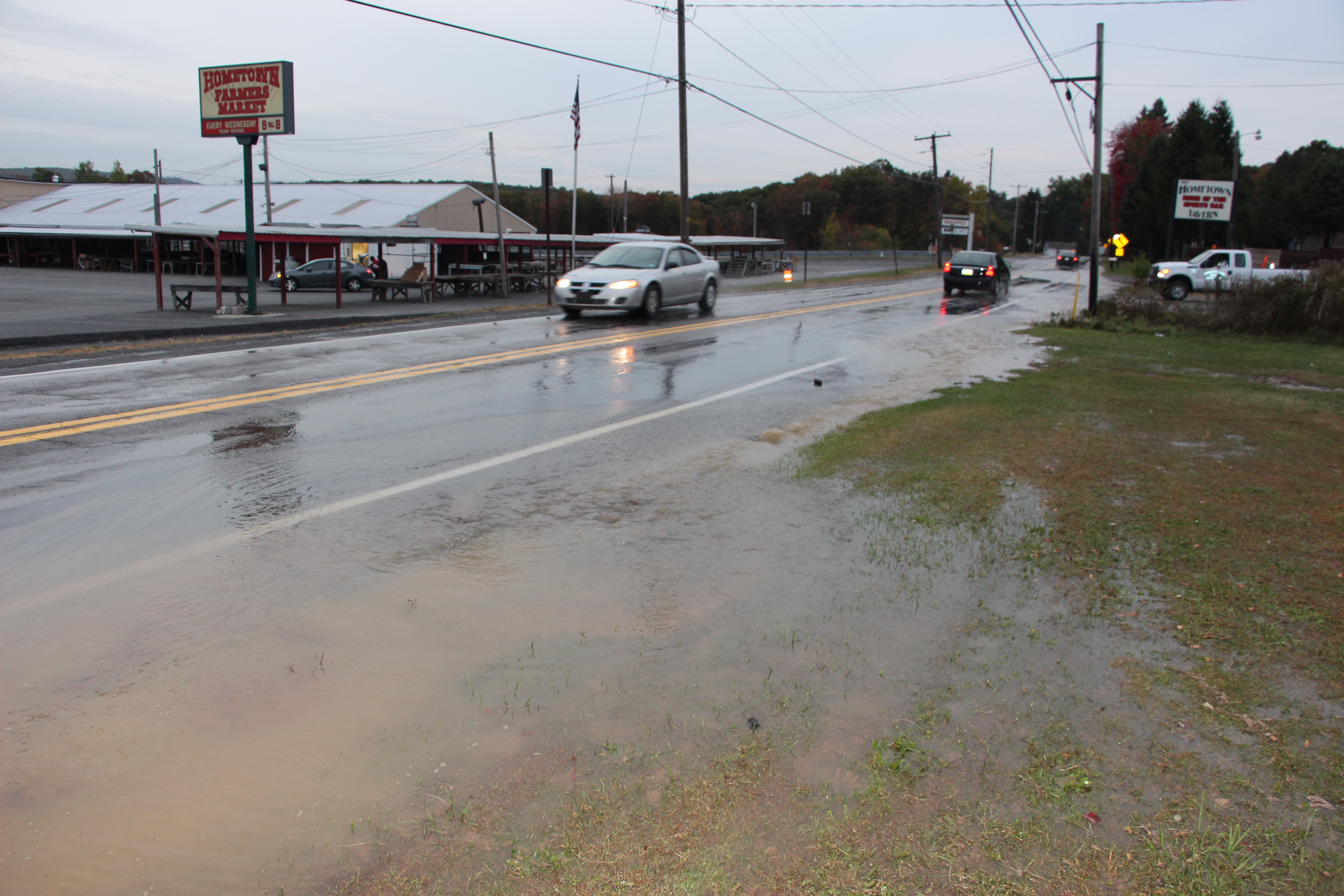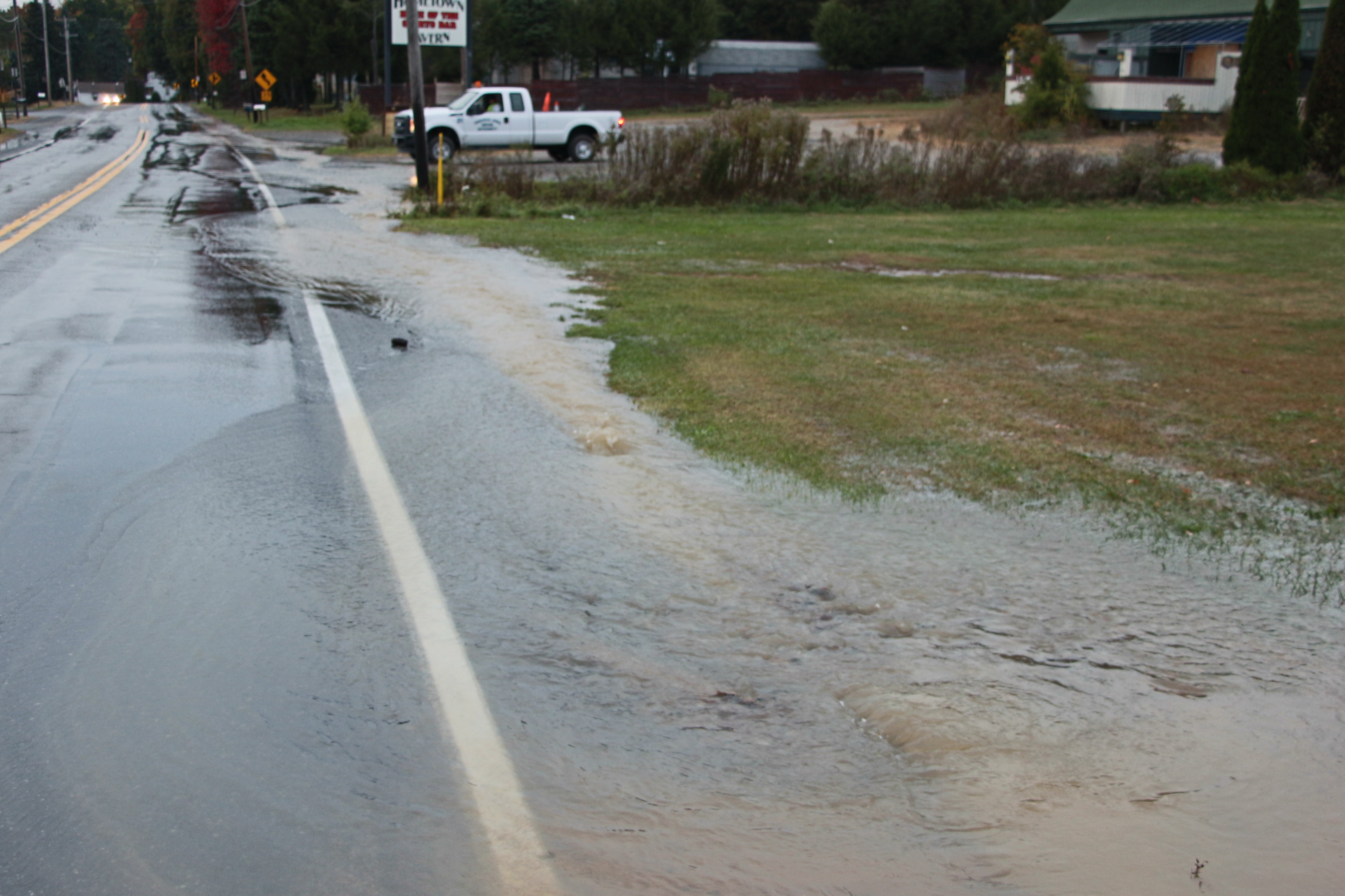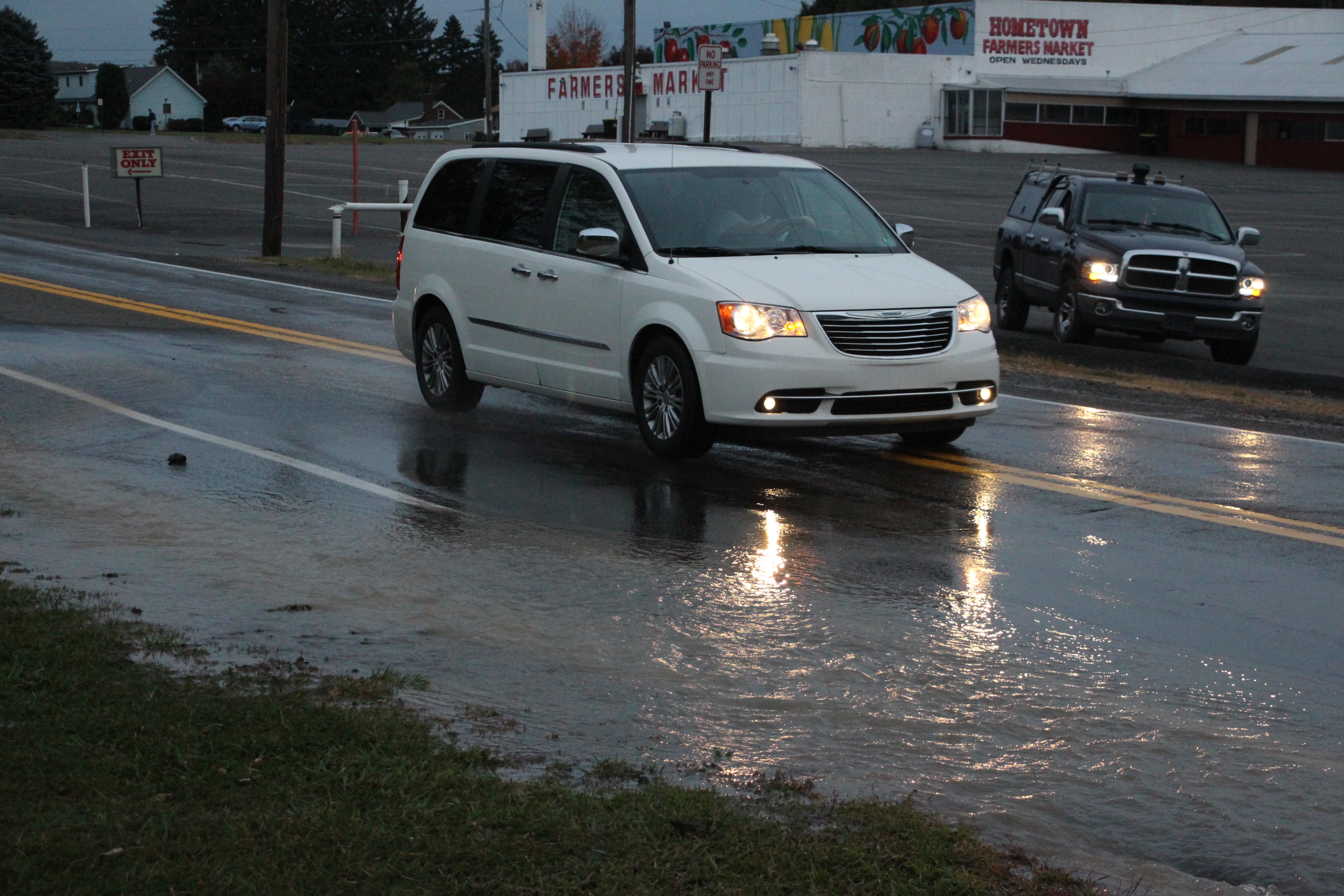 The leak, located across the street from the Hometown Farmers Market, was first spotted around 5:30 PM today (Friday, October 10, 2014).