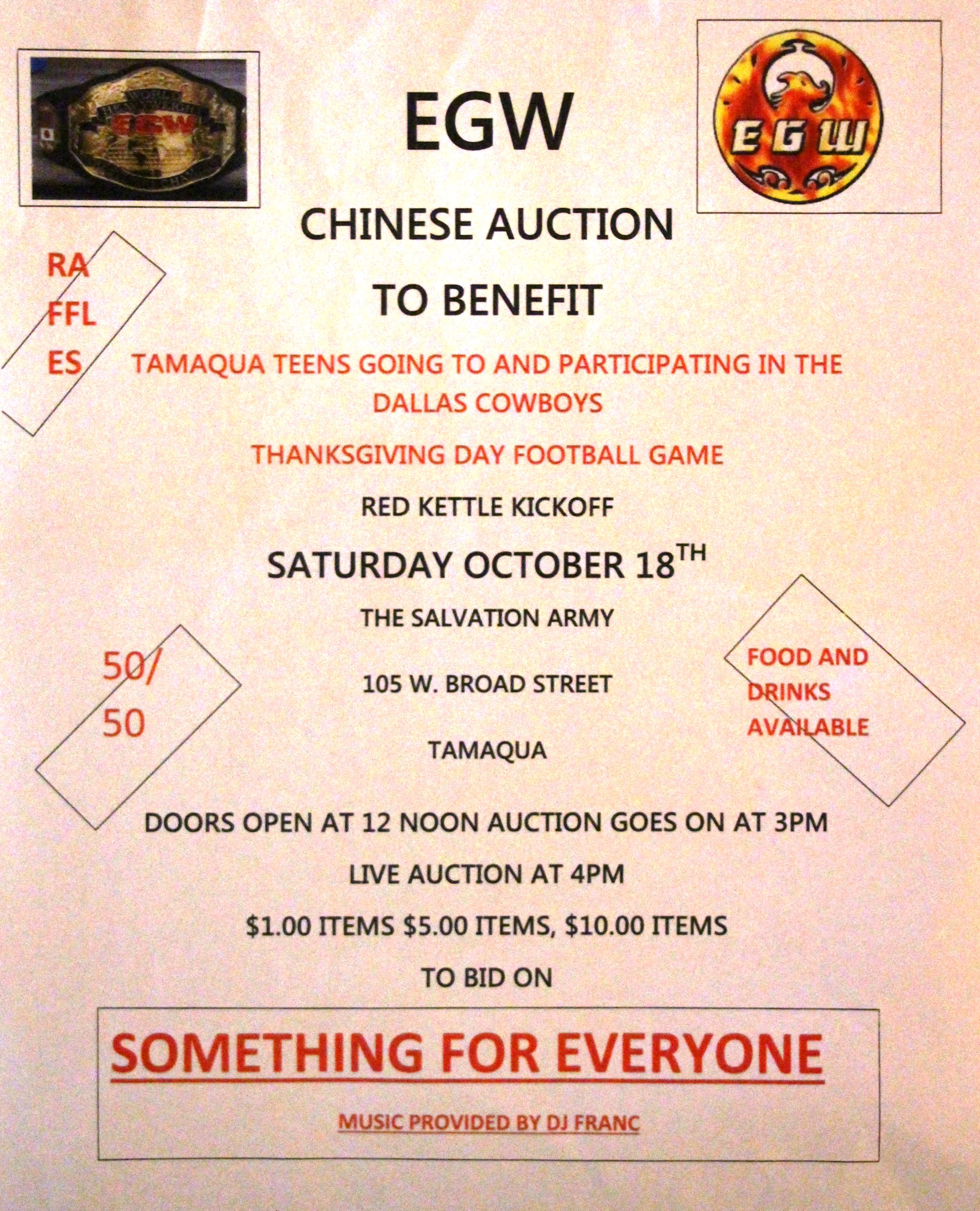 The event benefits Tamaqua teens going to and participating in the Salvation Army’s Red Kettle Kick-Off held during the halftime of the Dallas Cowboys Thanksgiving Day Football Game.