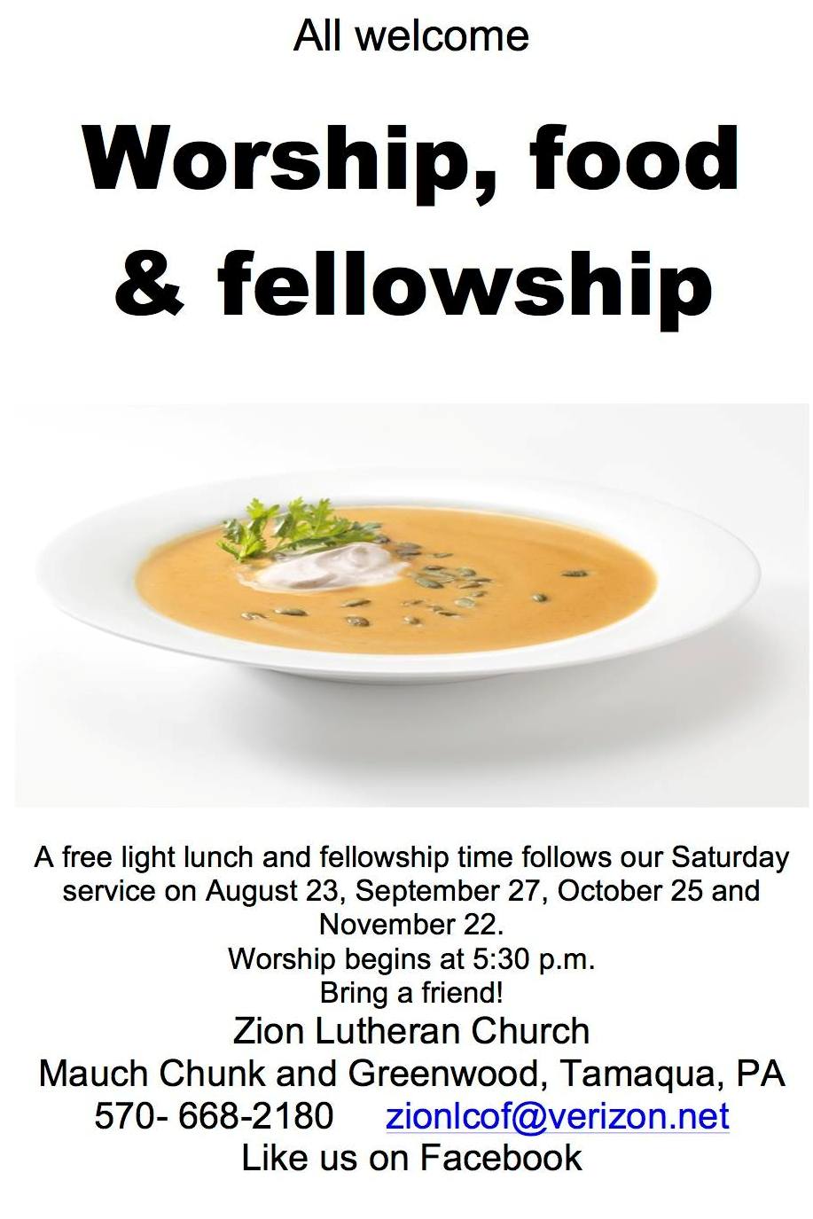 Volunteers and parishioners with the Zion Evangelical Lutheran Church in Tamaqua are holding their monthly “Worship, Food and Fellowship” event on Saturday, October 25, 2014 at their church.