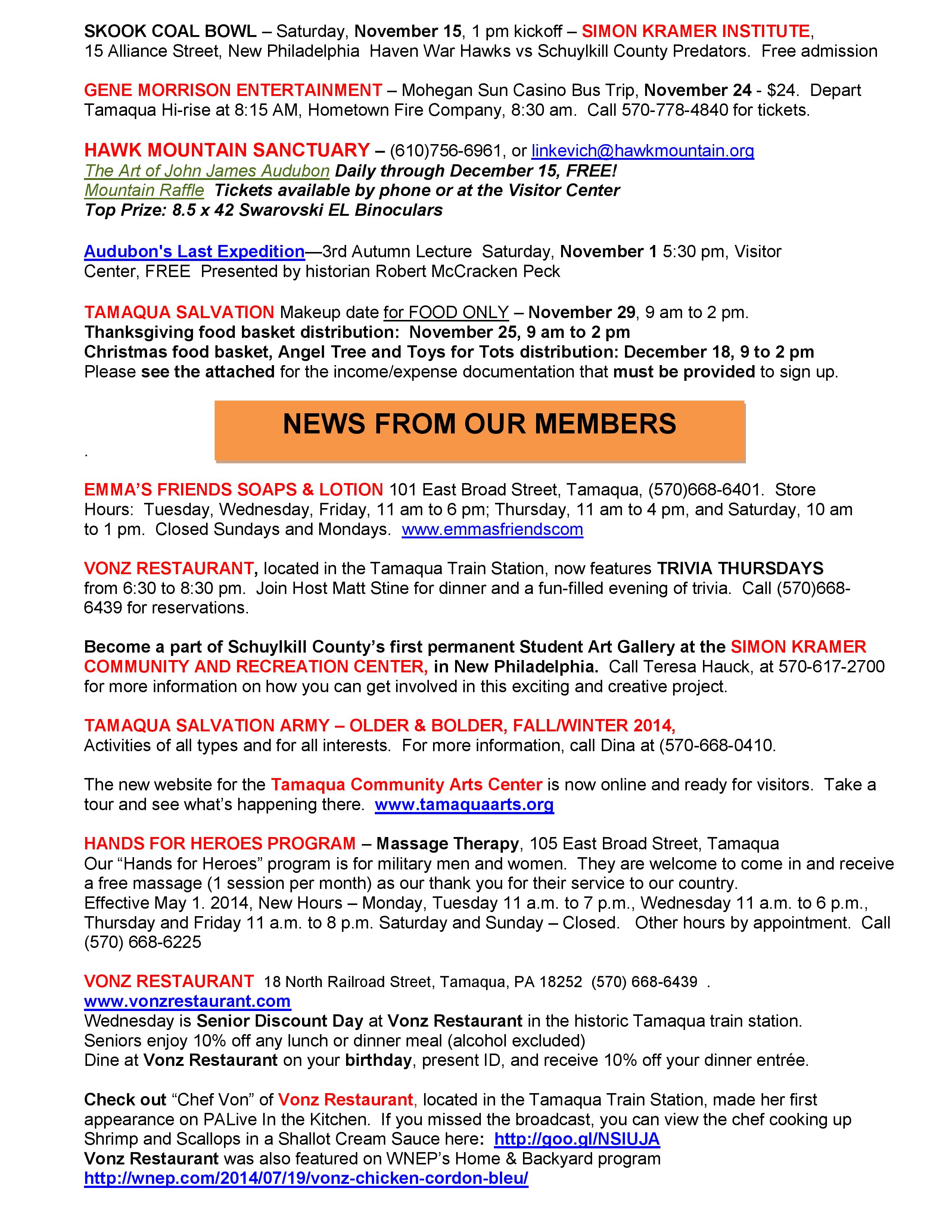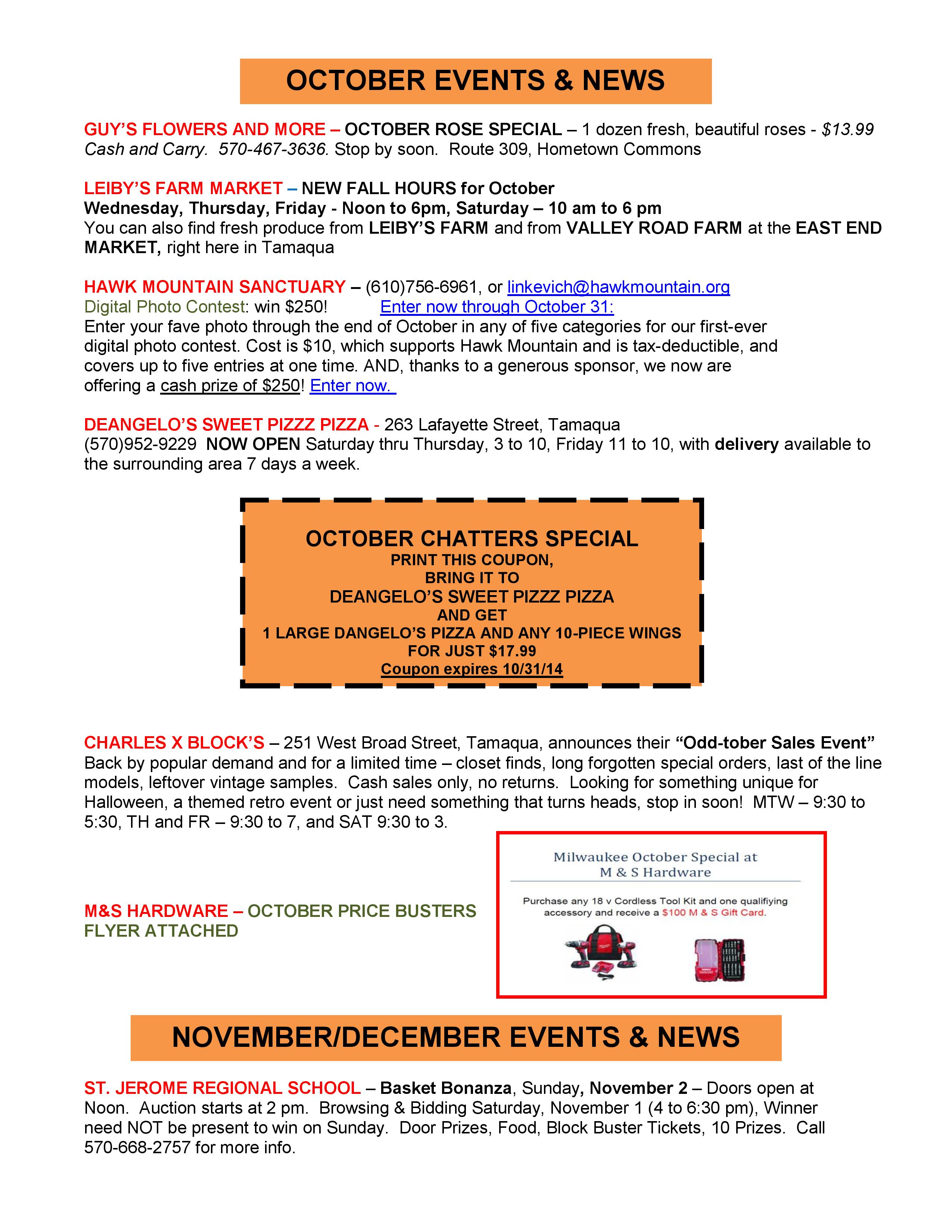 Here is the latest Tamaqua Area Chamber of Commerce’s Chamber Chatters newsletter dated Friday (October 31, 2014).