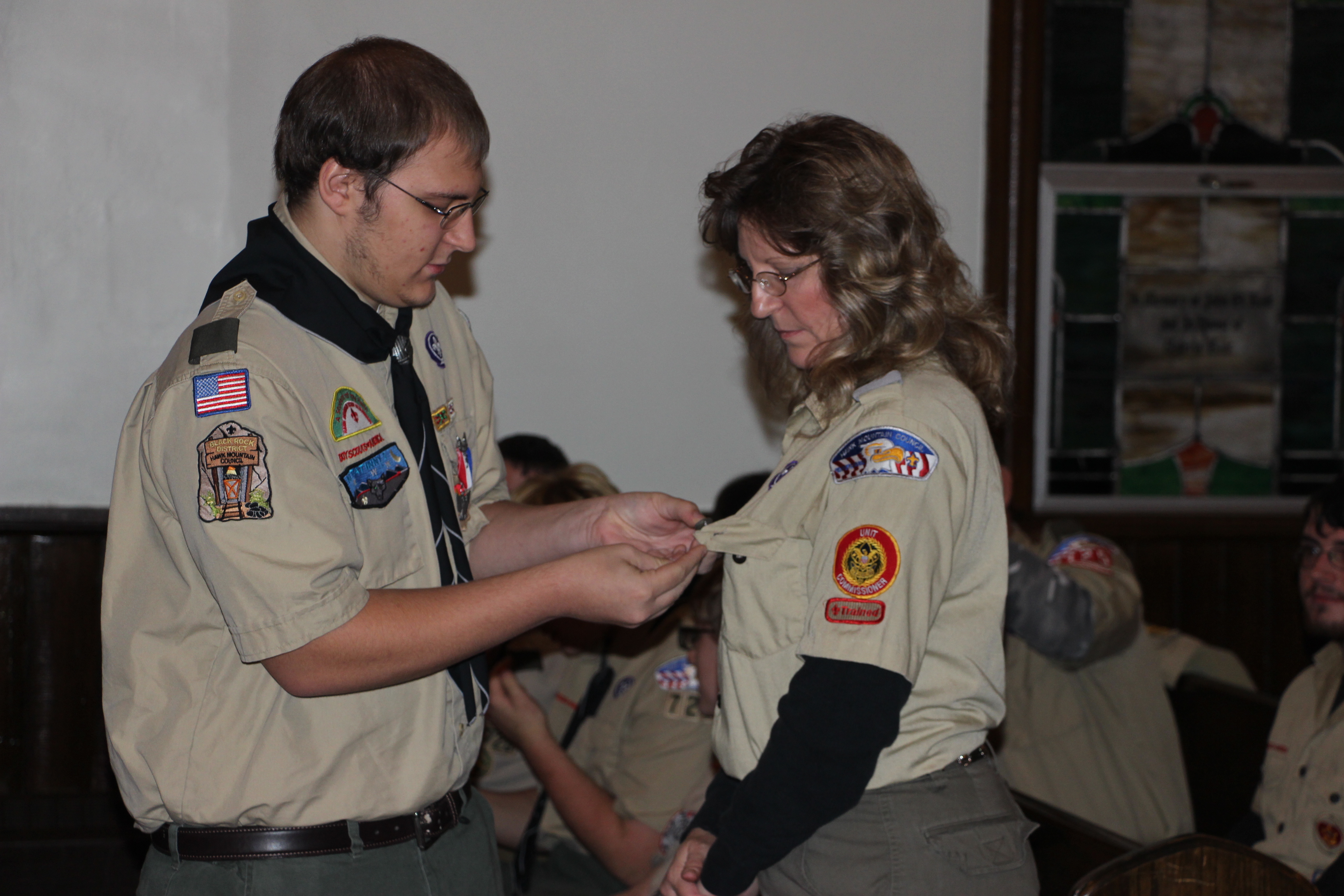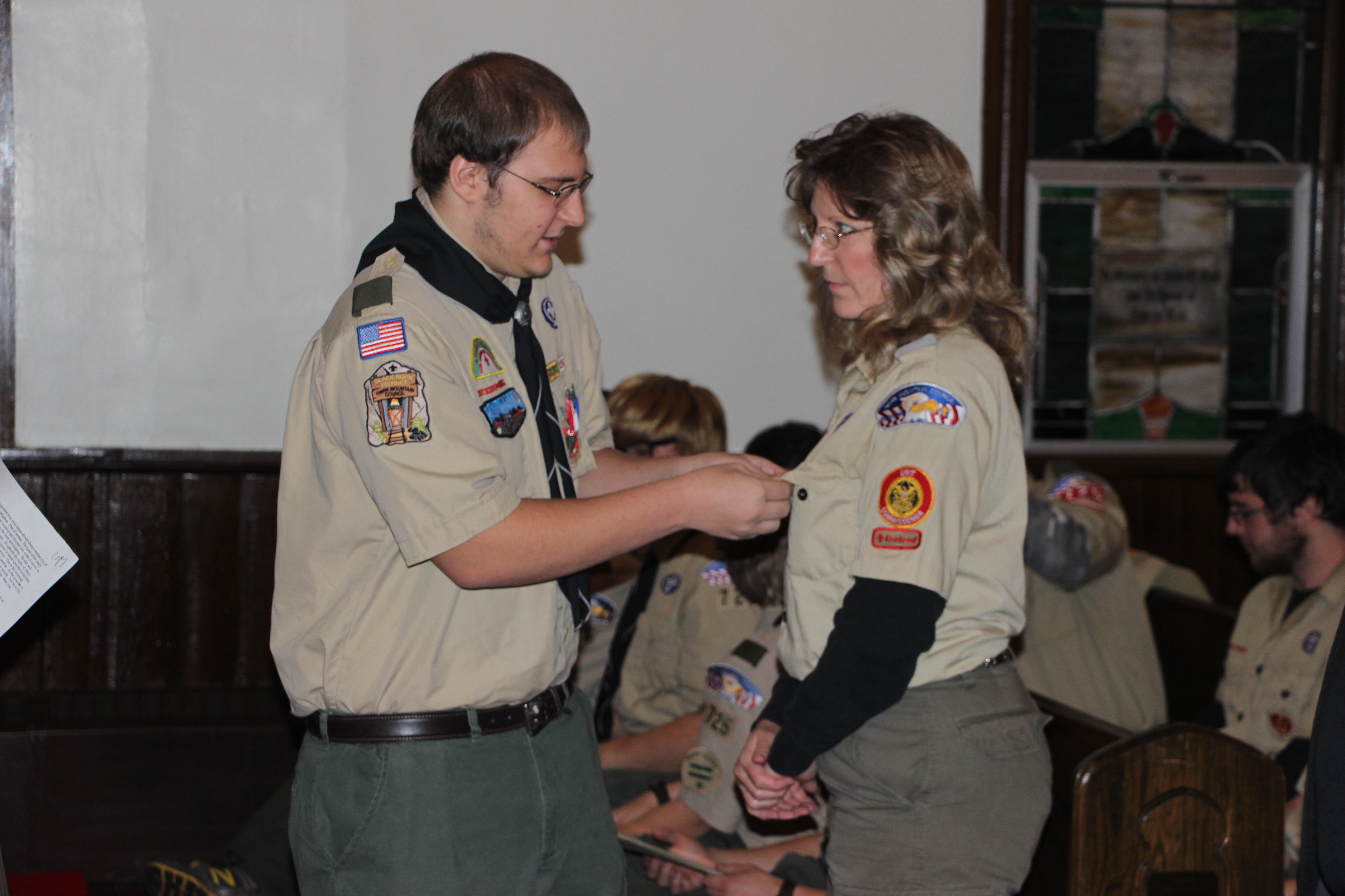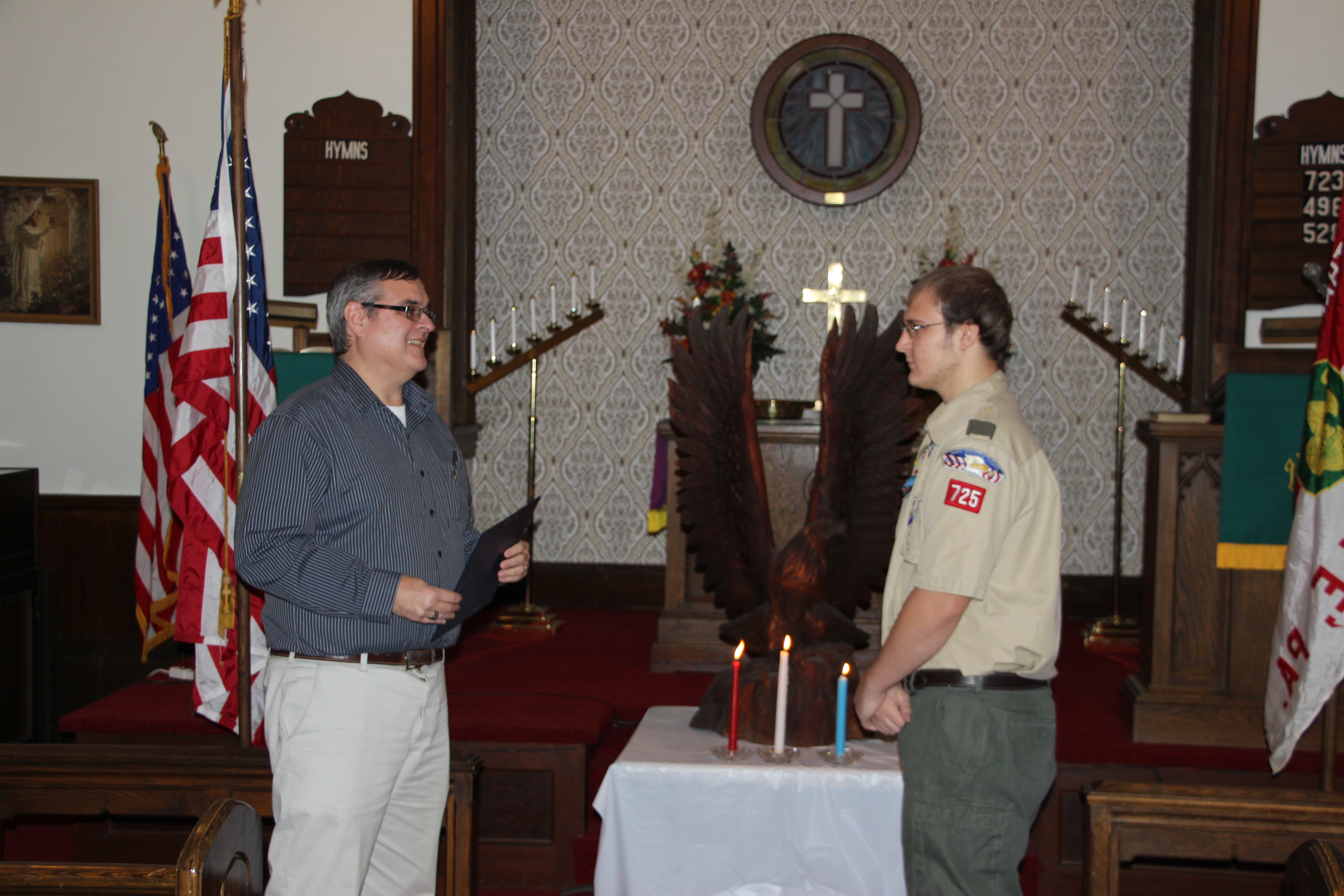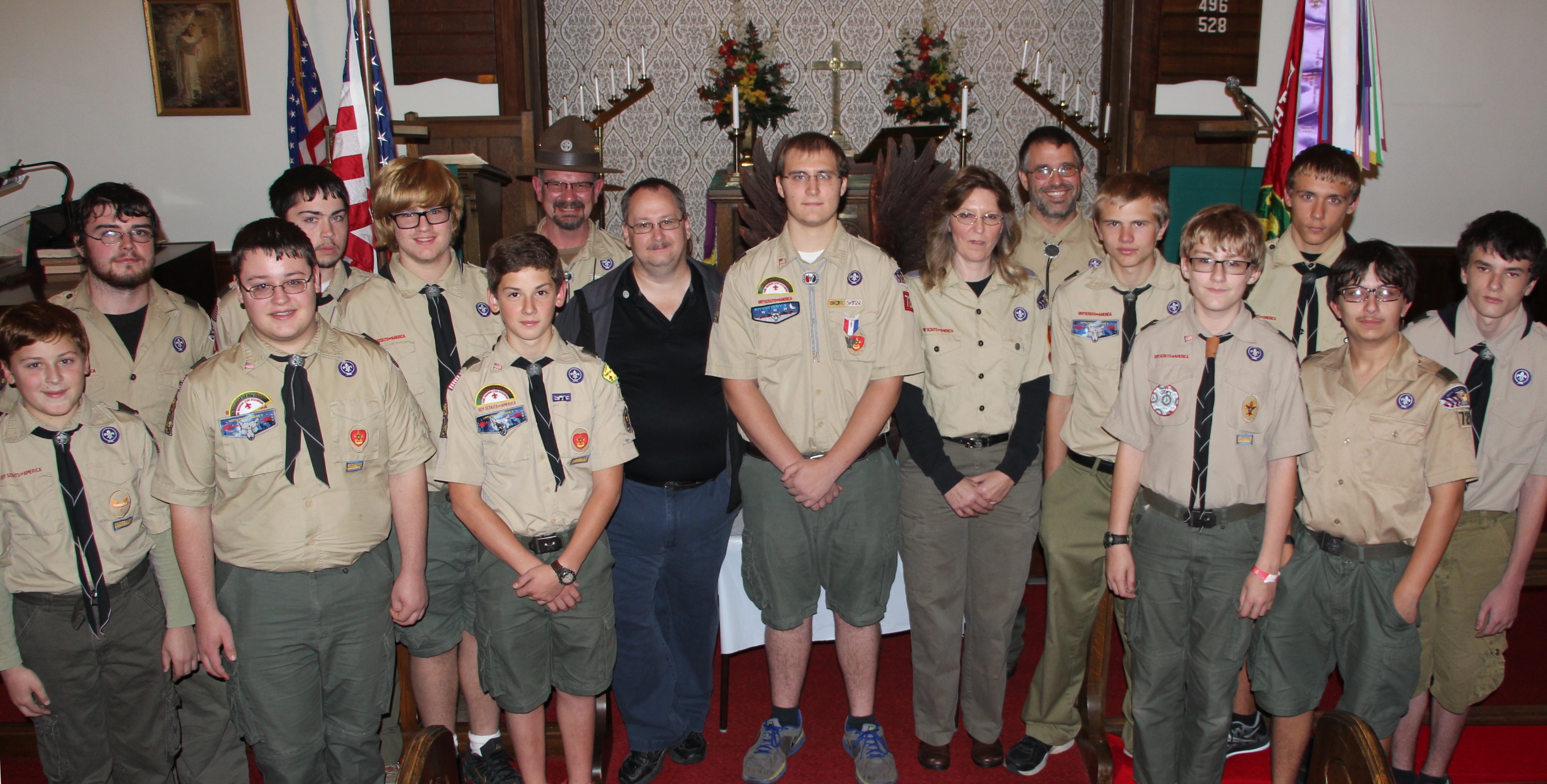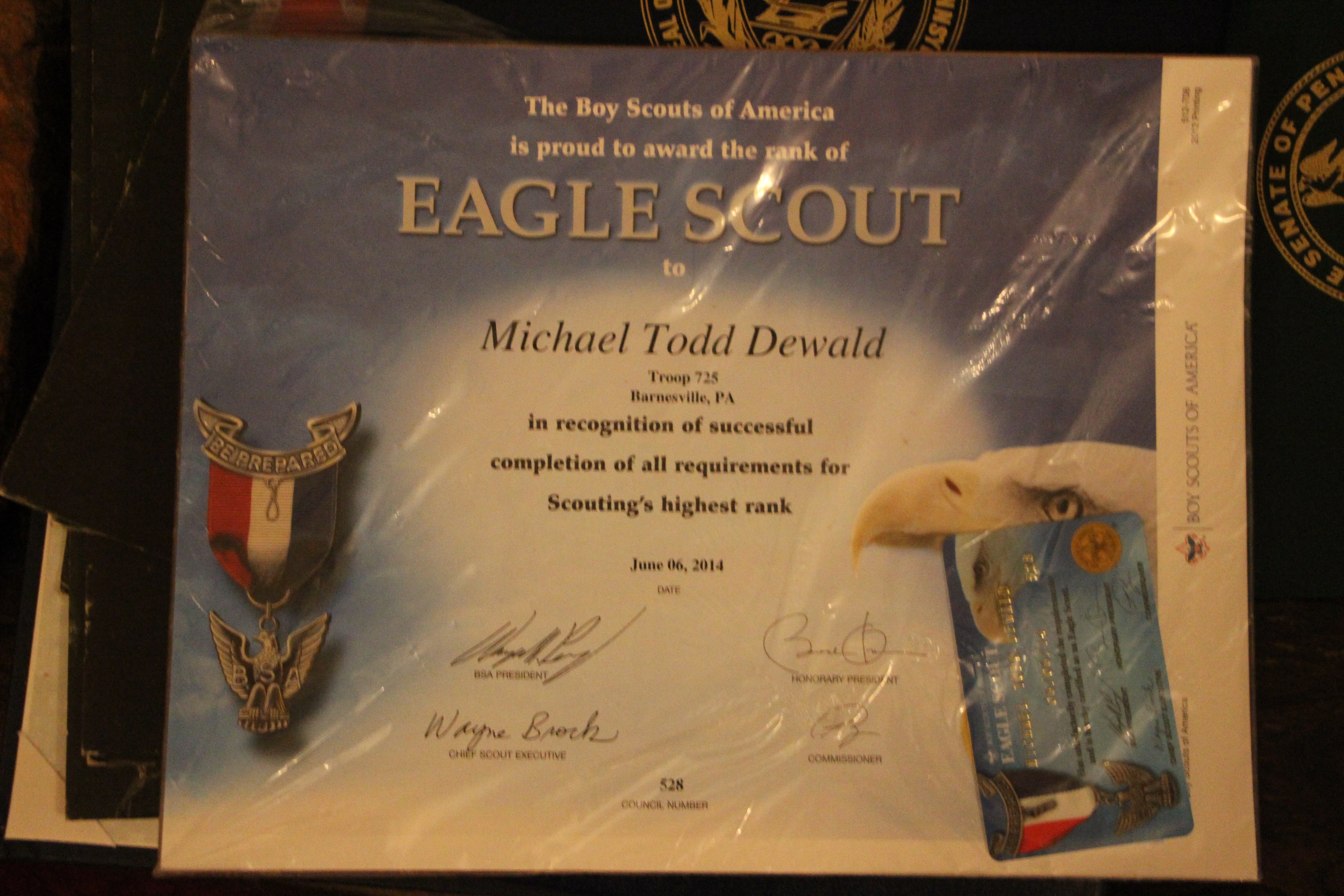 Scoutmaster Roy Bradbury, who spoke of Michael’s accomplishments and journey as a scout, said that only about 6 percent of all boy scouts earn the Eagle Scout rank. He also presented Michael with a traditional eagle wood carving.