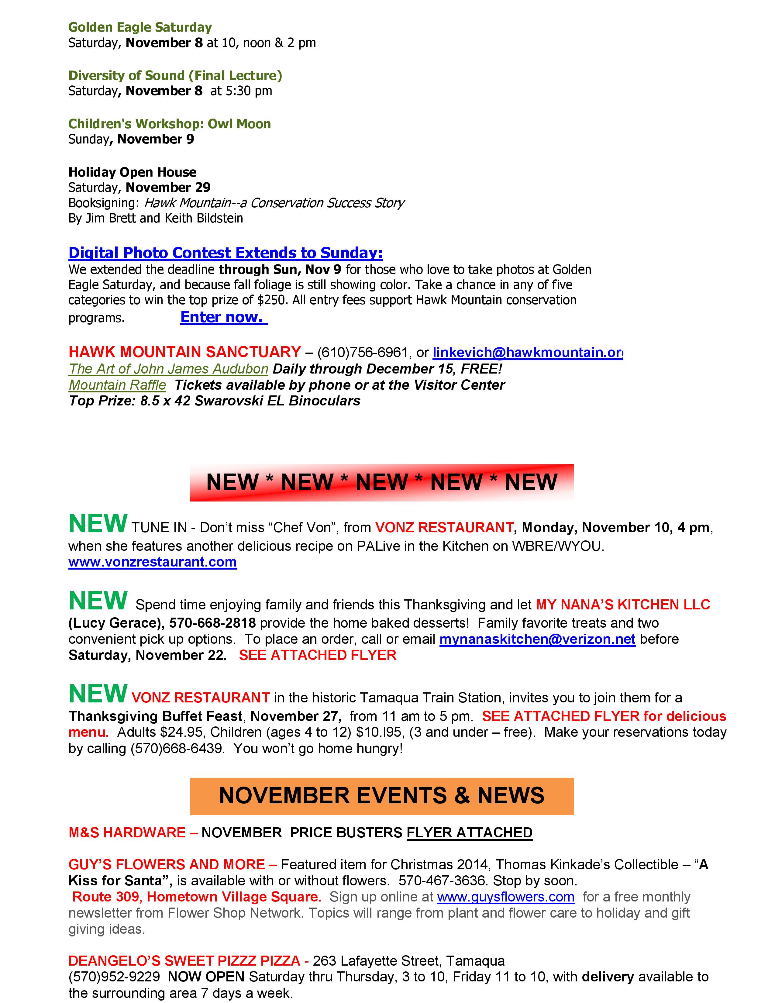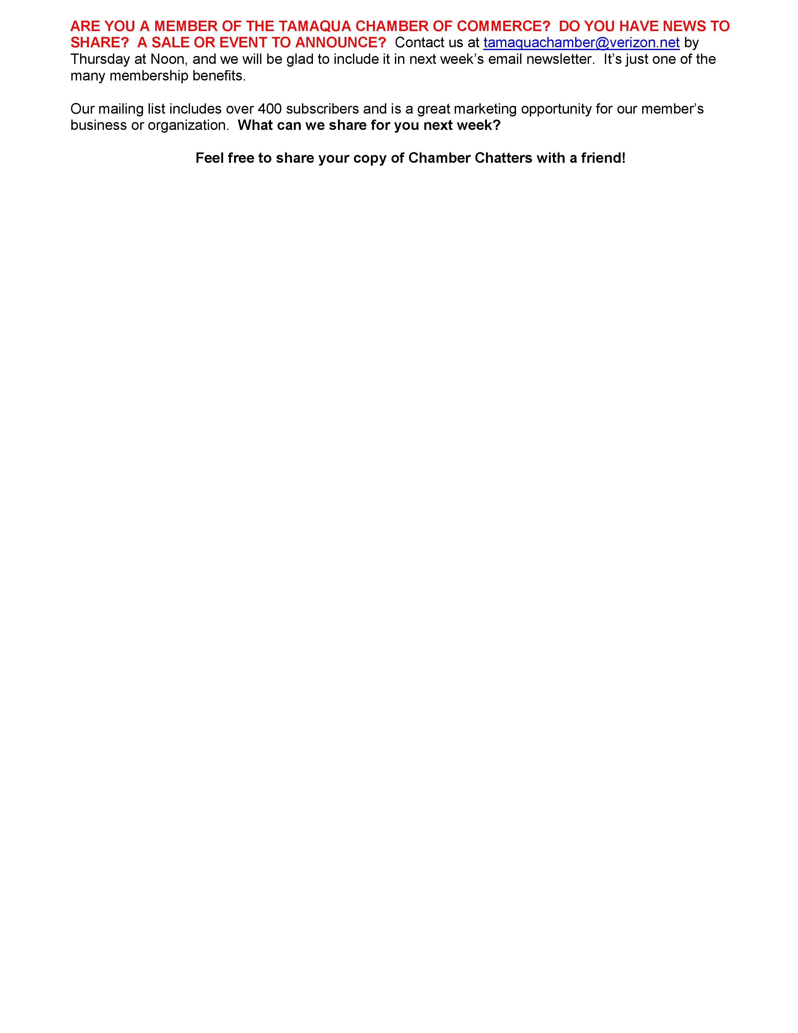 Here is the latest Tamaqua Area Chamber of Commerce’s Chamber Chatters newsletter dated Friday (November 7, 2014).