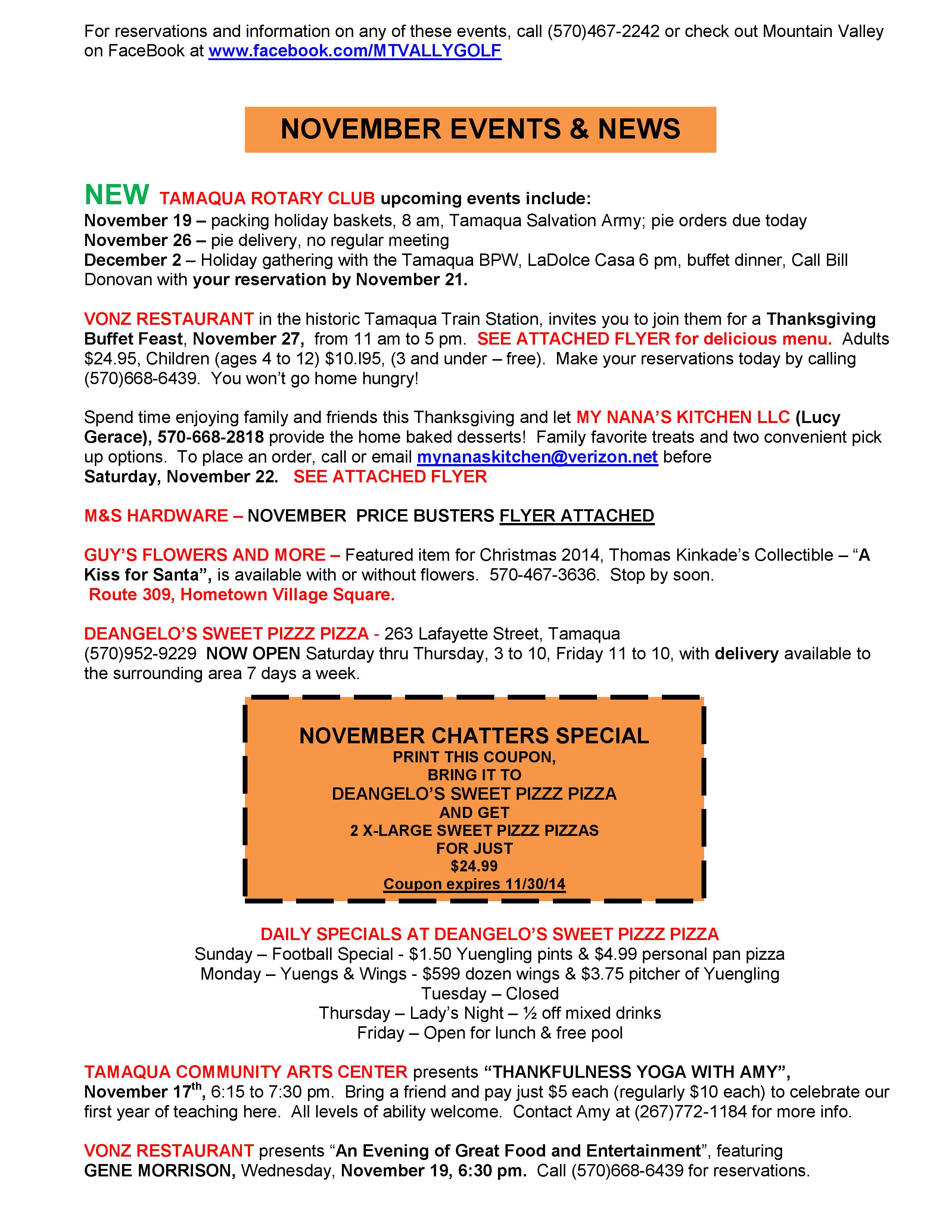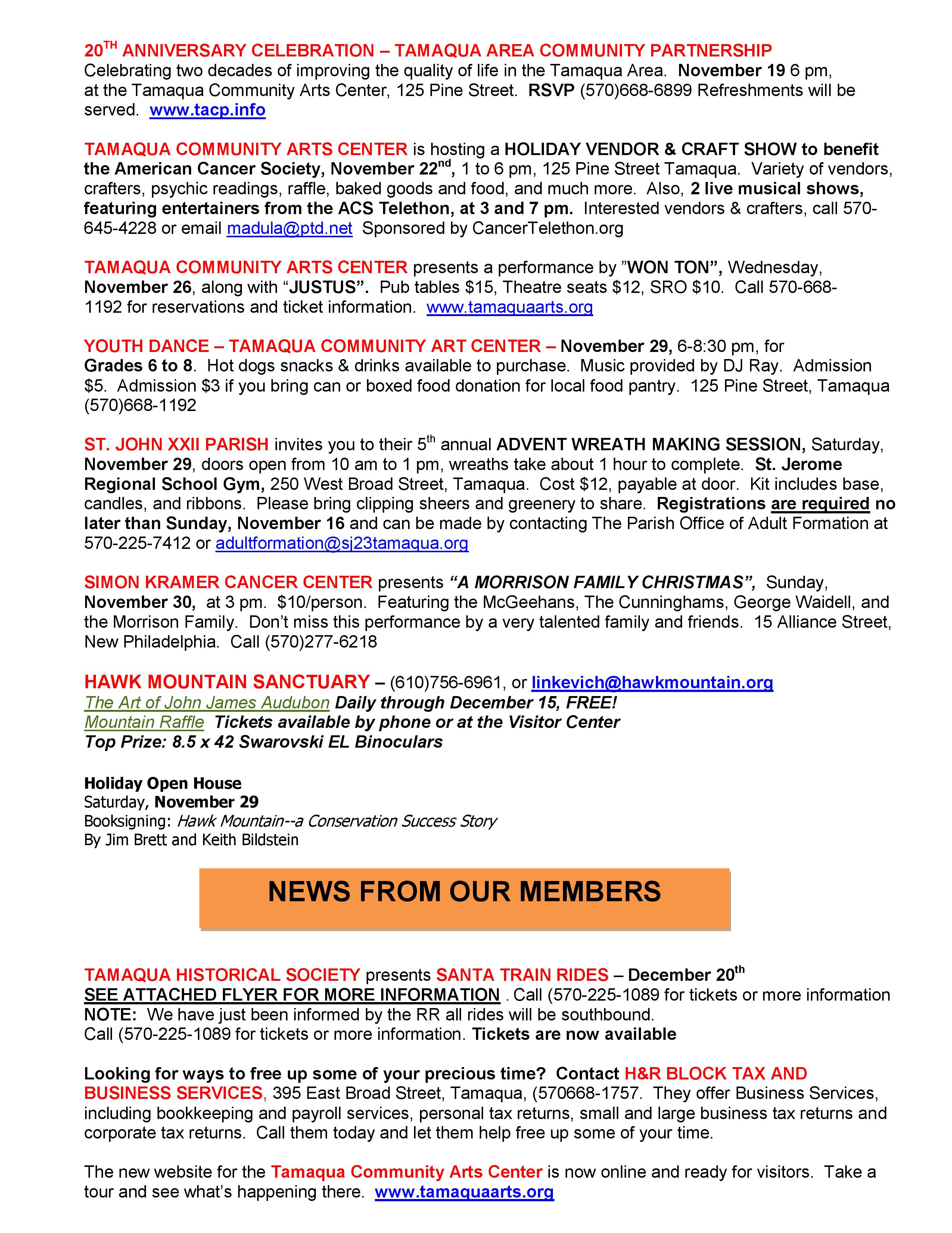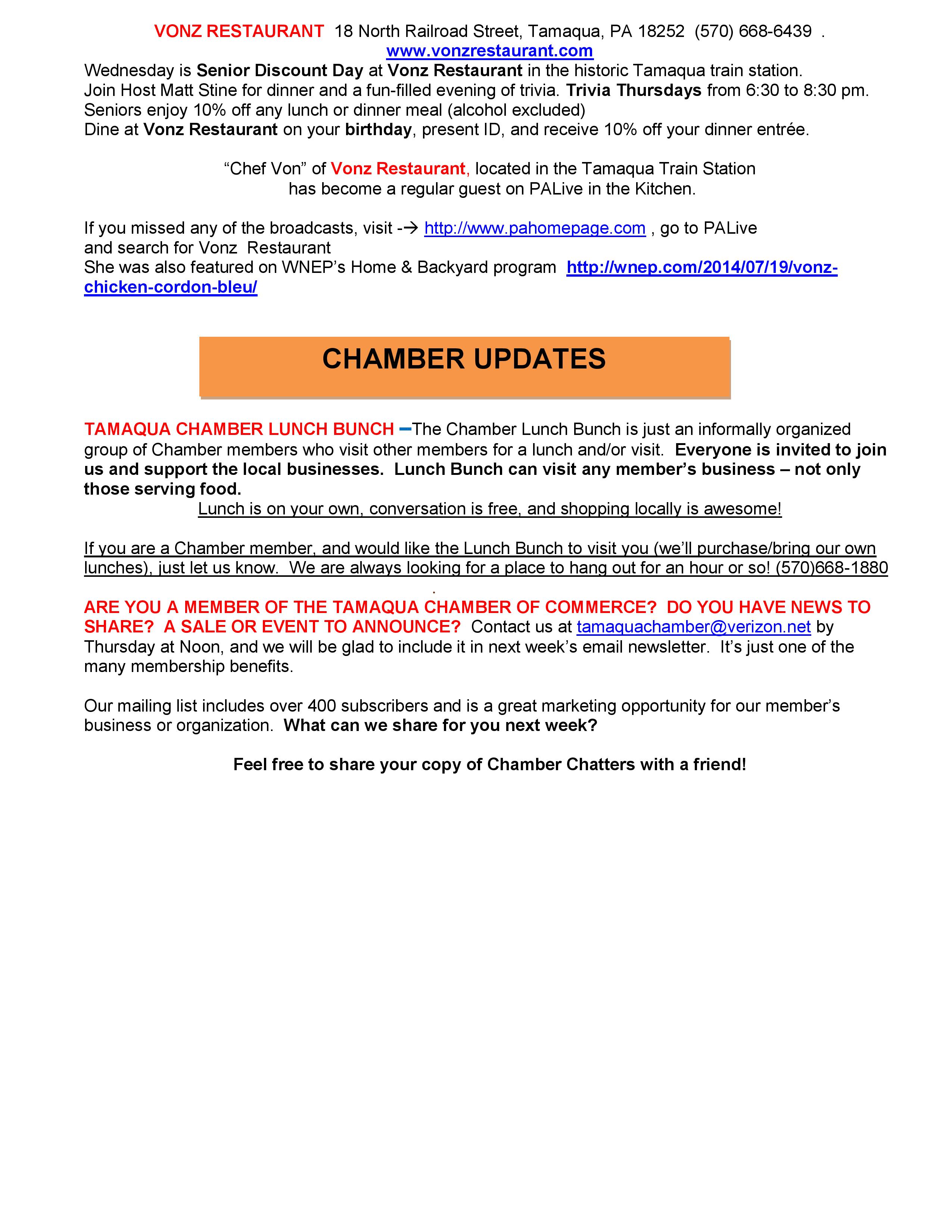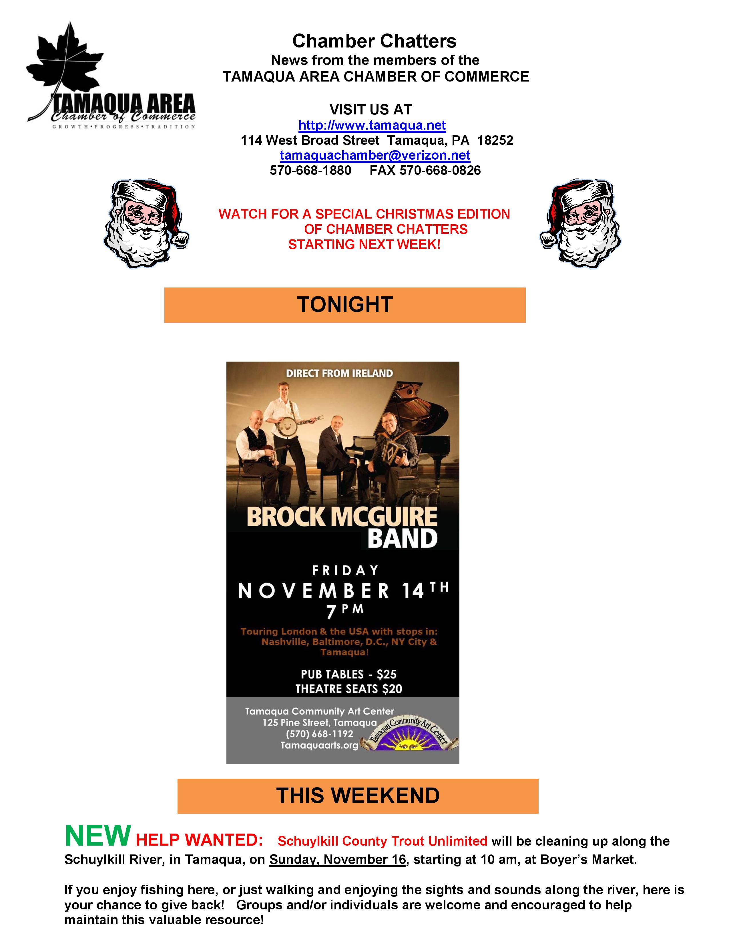 Here is the latest Tamaqua Area Chamber of Commerce’s Chamber Chatters newsletter dated Friday (November 14, 2014).