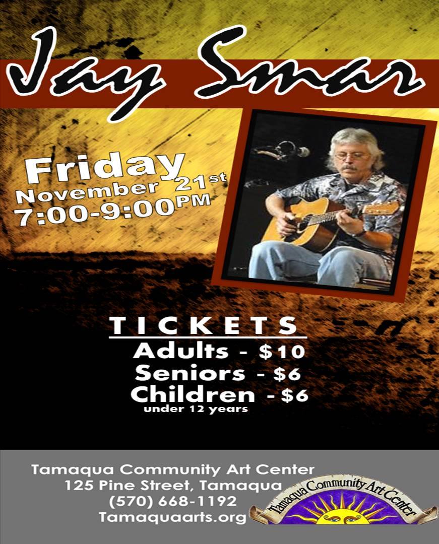 Jay Smar will perform on Friday, November 21, 2014 at the Tamaqua Community Arts Center from 7 PM to 9 PM.