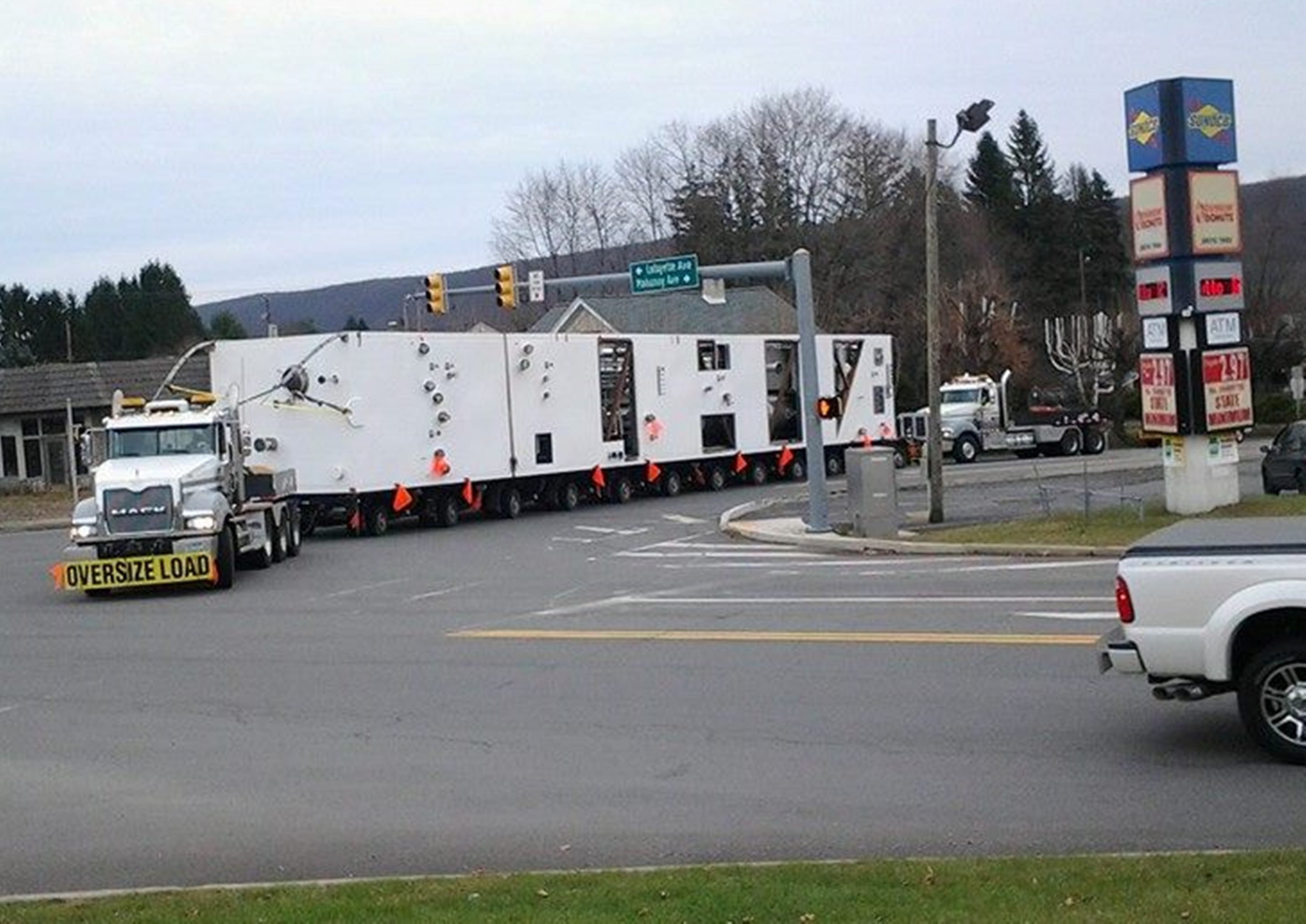 A 19-axle oversize load caused a 15 to 20 minute traffic headache for drivers traveling south through Tamaqua today (Tuesday, November 25, 2014).