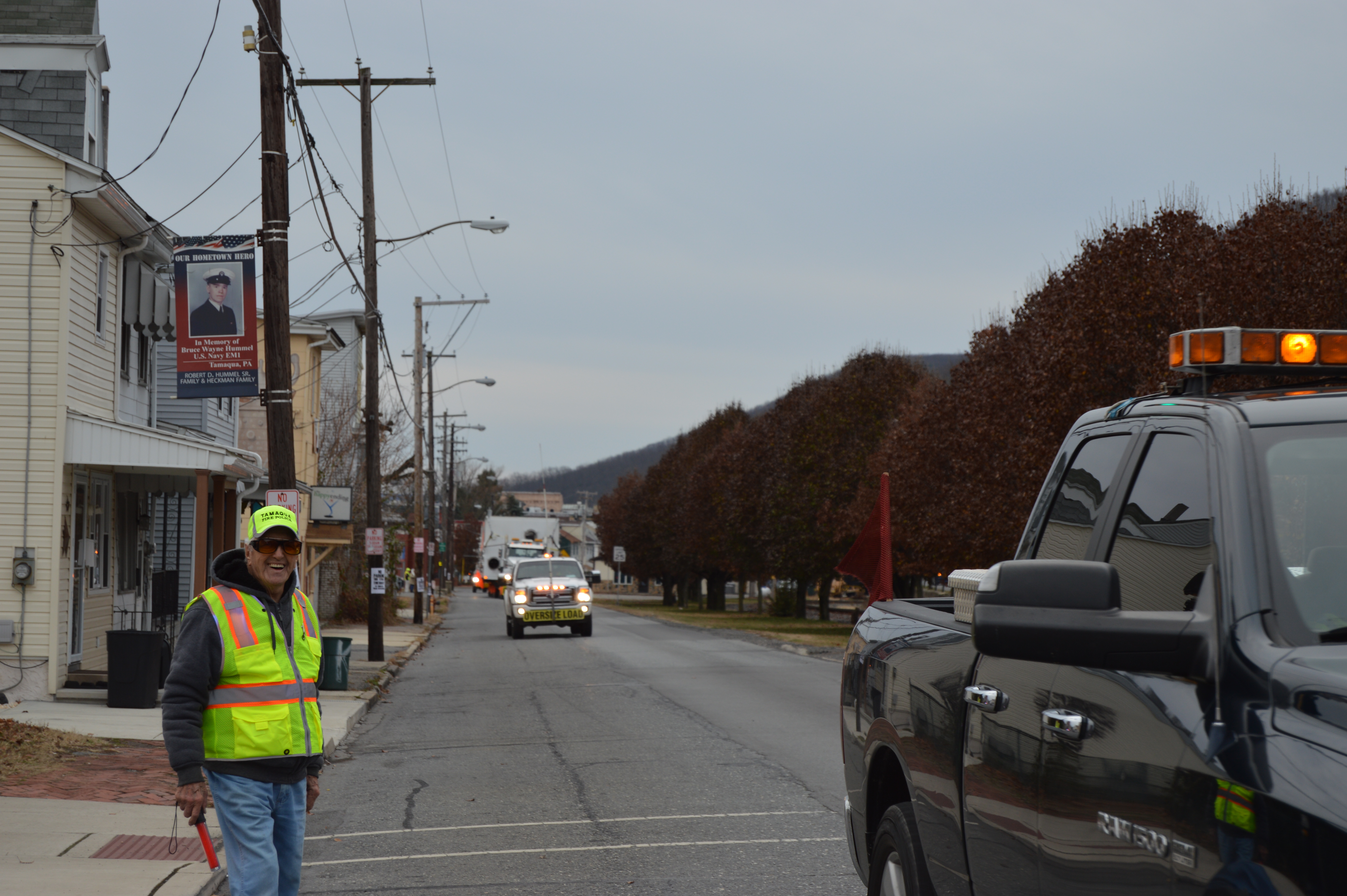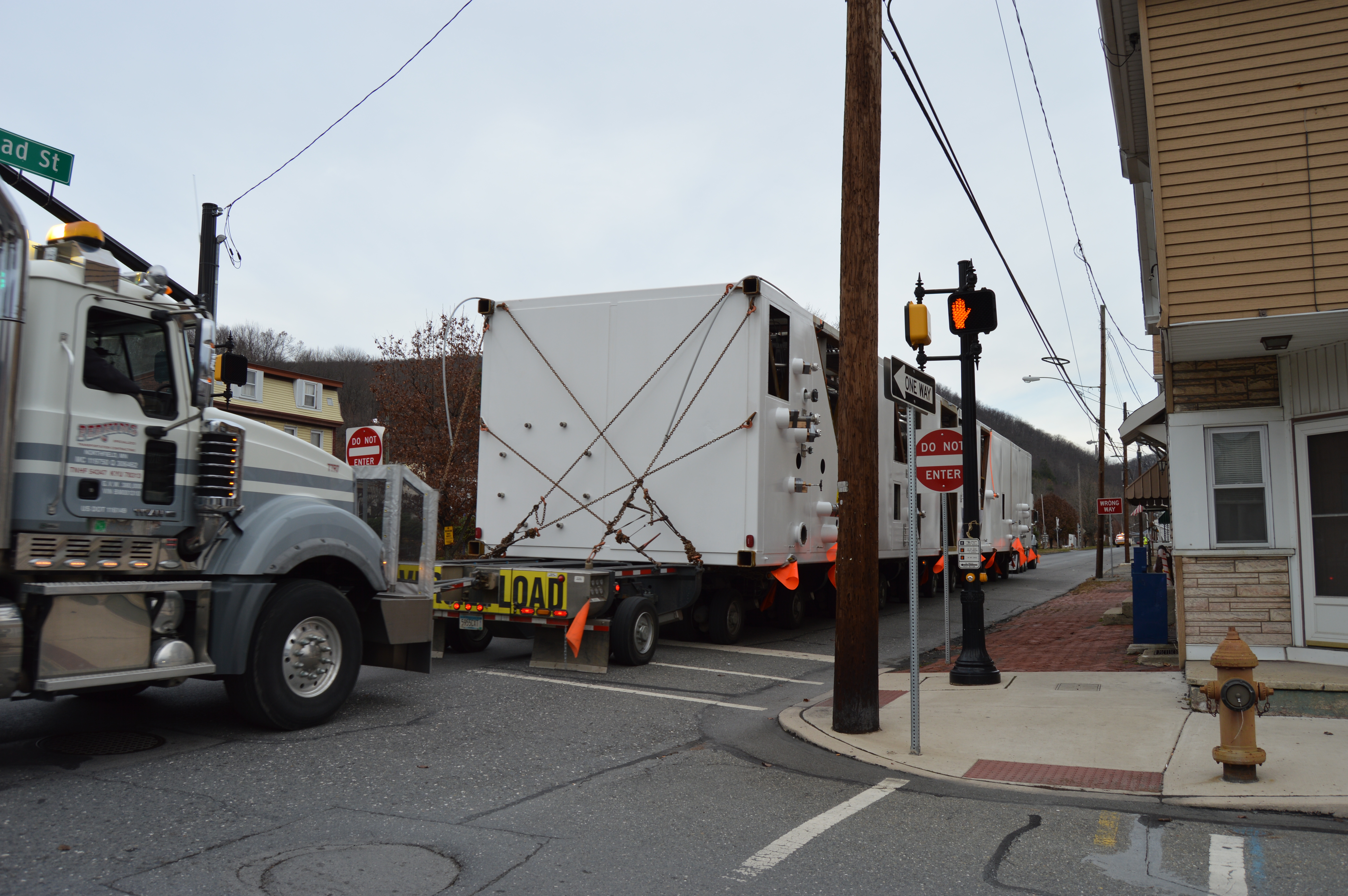 Parking was limited on North Railroad Street (SR309) today in preparation for the load to be driven up North Railroad Street (a one-way street).