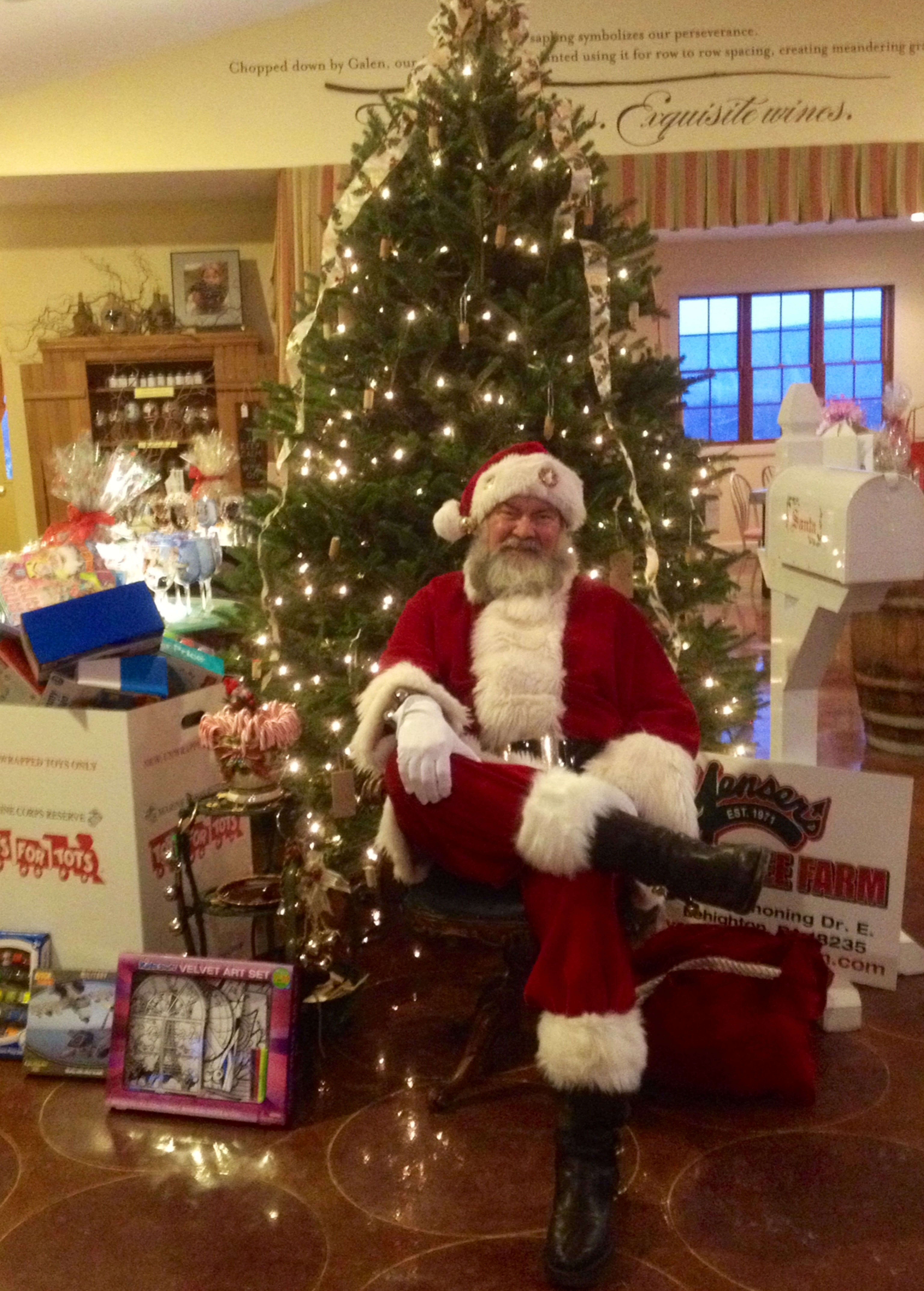 Guests and staff at Galen Glen Vineyard and Winery in Andreas made a generous donation to Toys For Tots during their annual Santa Claus Visit held yesterday (Sunday, November 30, 2014). Galen Glen can be found online at http://www.galenglen.com or on Facebook at https://www.facebook.com/pages/Galen-Glen-Vineyard-Winery/203422131356.