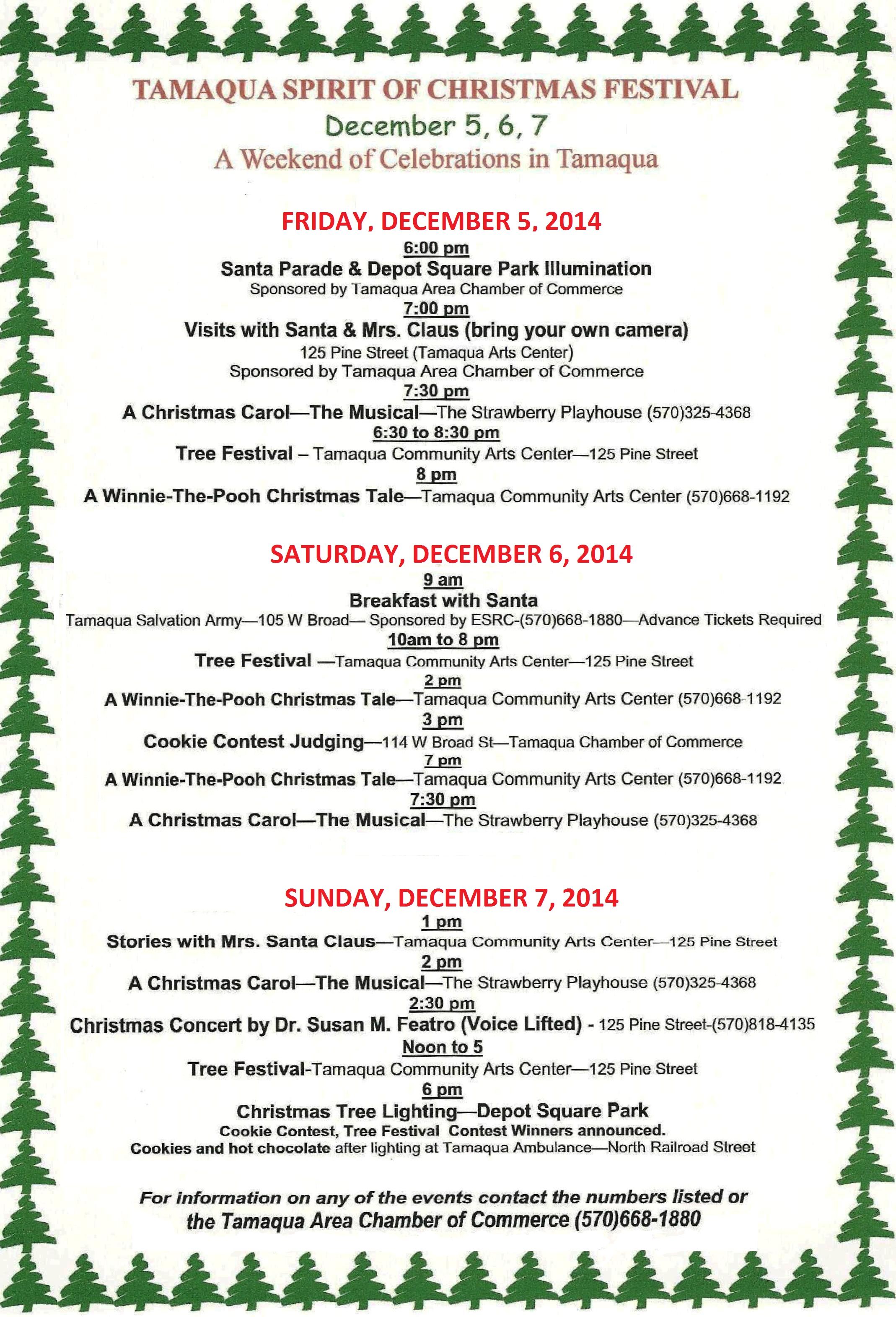 Tamaqua’s Annual Spirit of Christmas Festival runs from Friday, December 5 to Sunday, December 7, 2014.