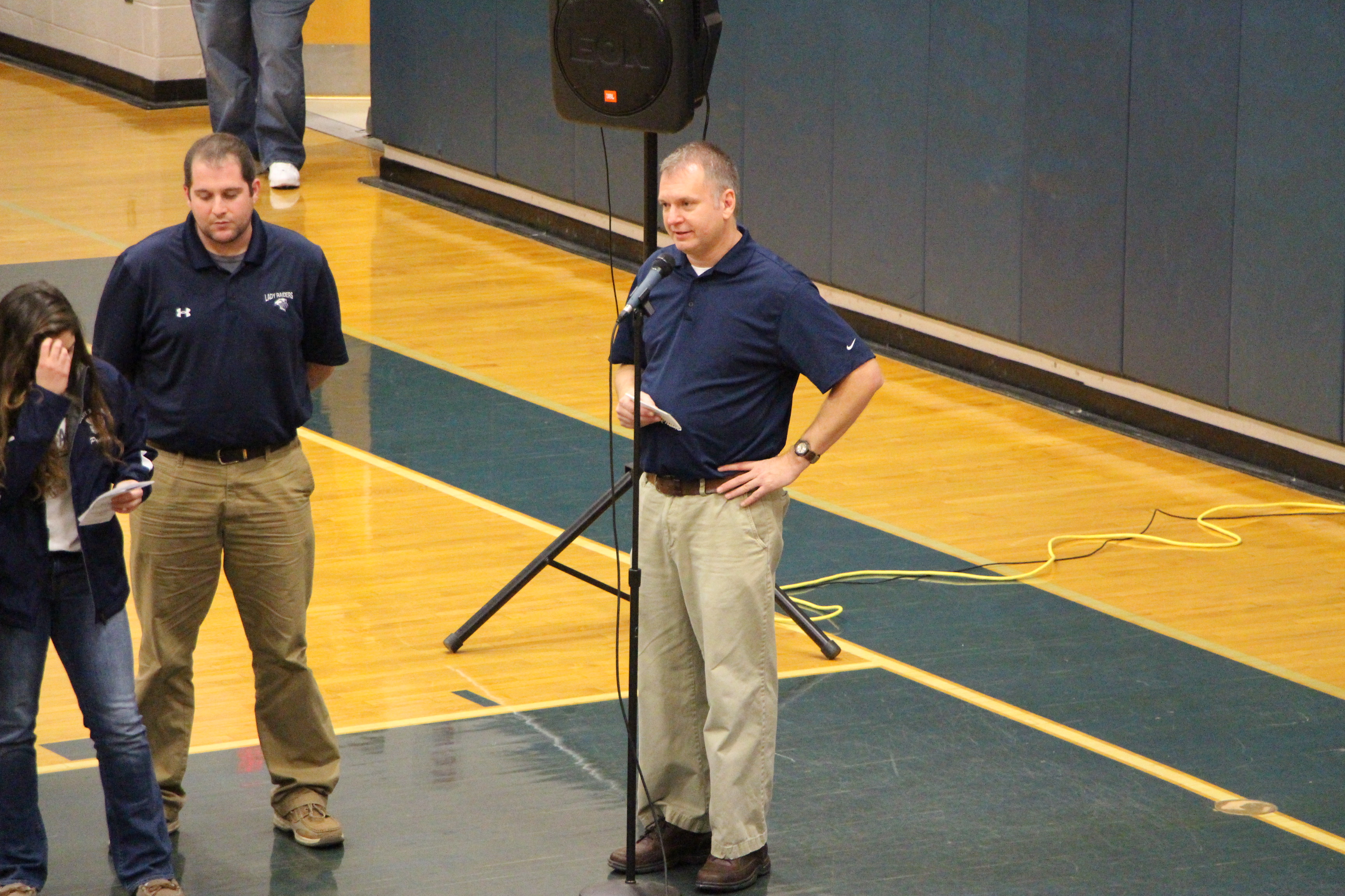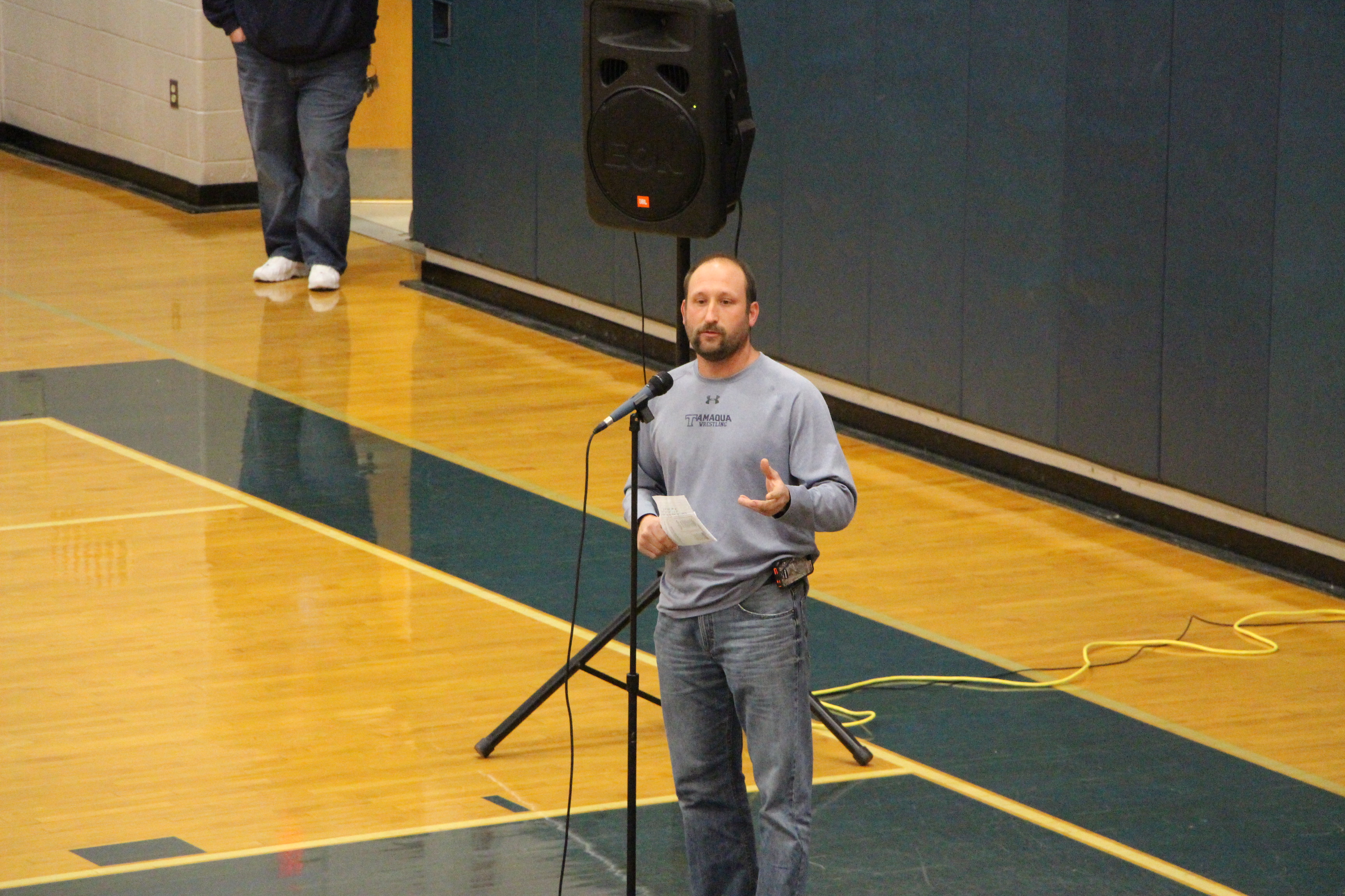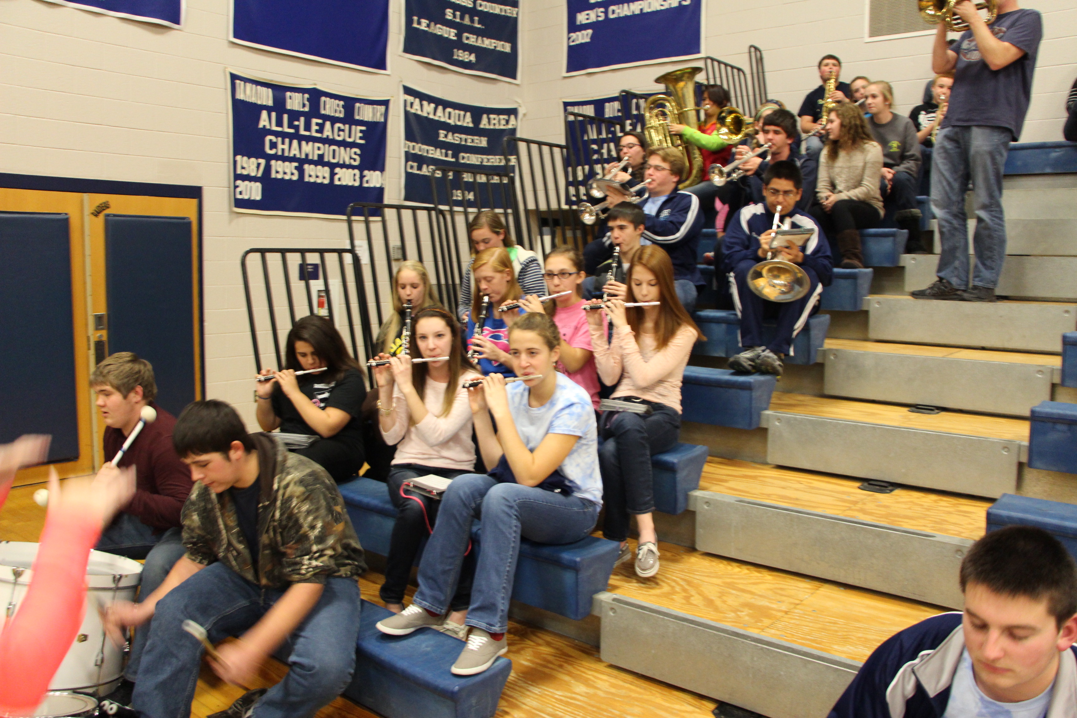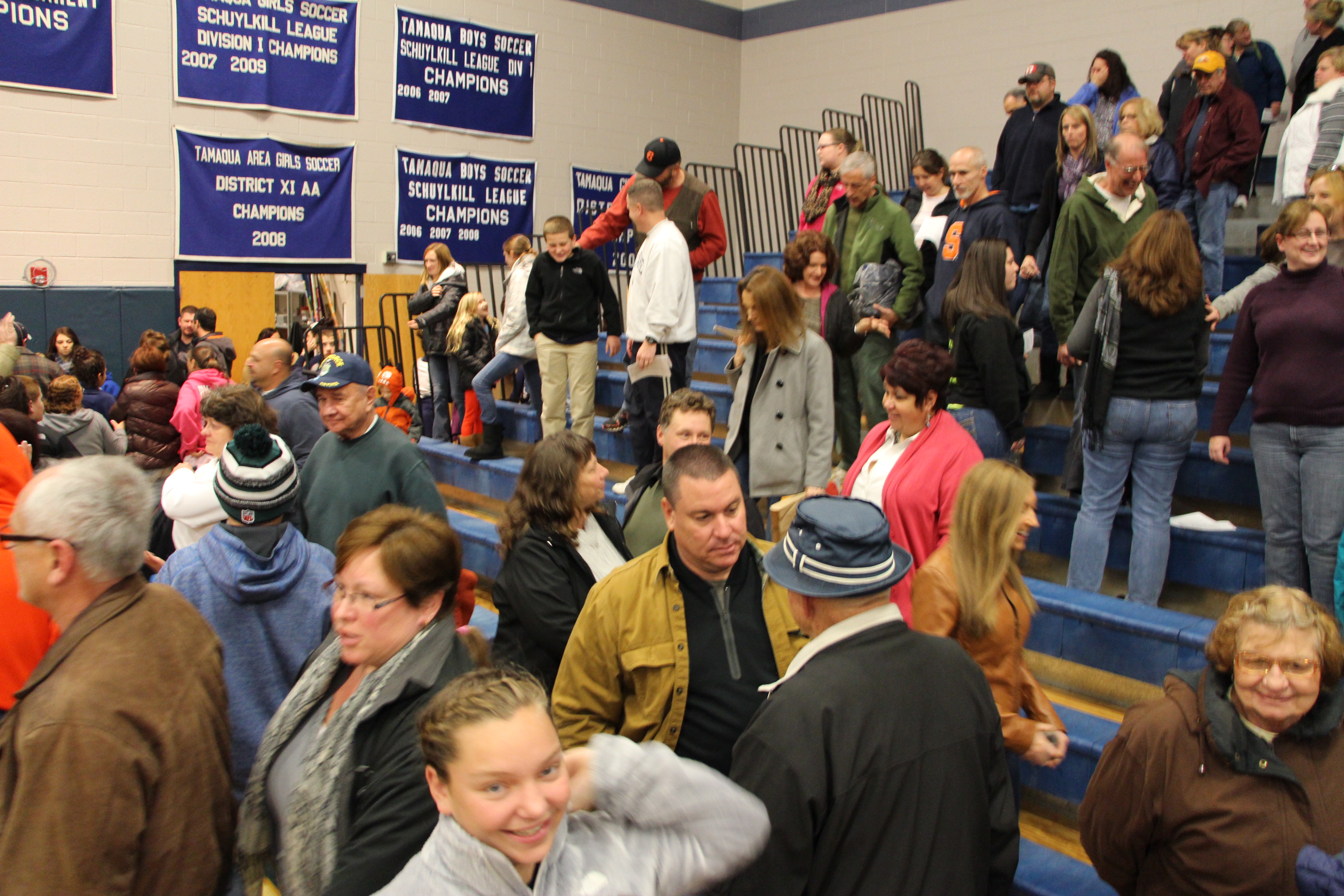 The Tamaqua Area School District held its annual “Winter Meet the Raiders Night” on Wednesday, December 3, 2014 in the Tamaqua Area School District Athletic Center. Members of the boys and girls basketball, wrestling, and swimming programs, along with the cheerleaders, were introduced. The Blue Raider pep band also performed.
