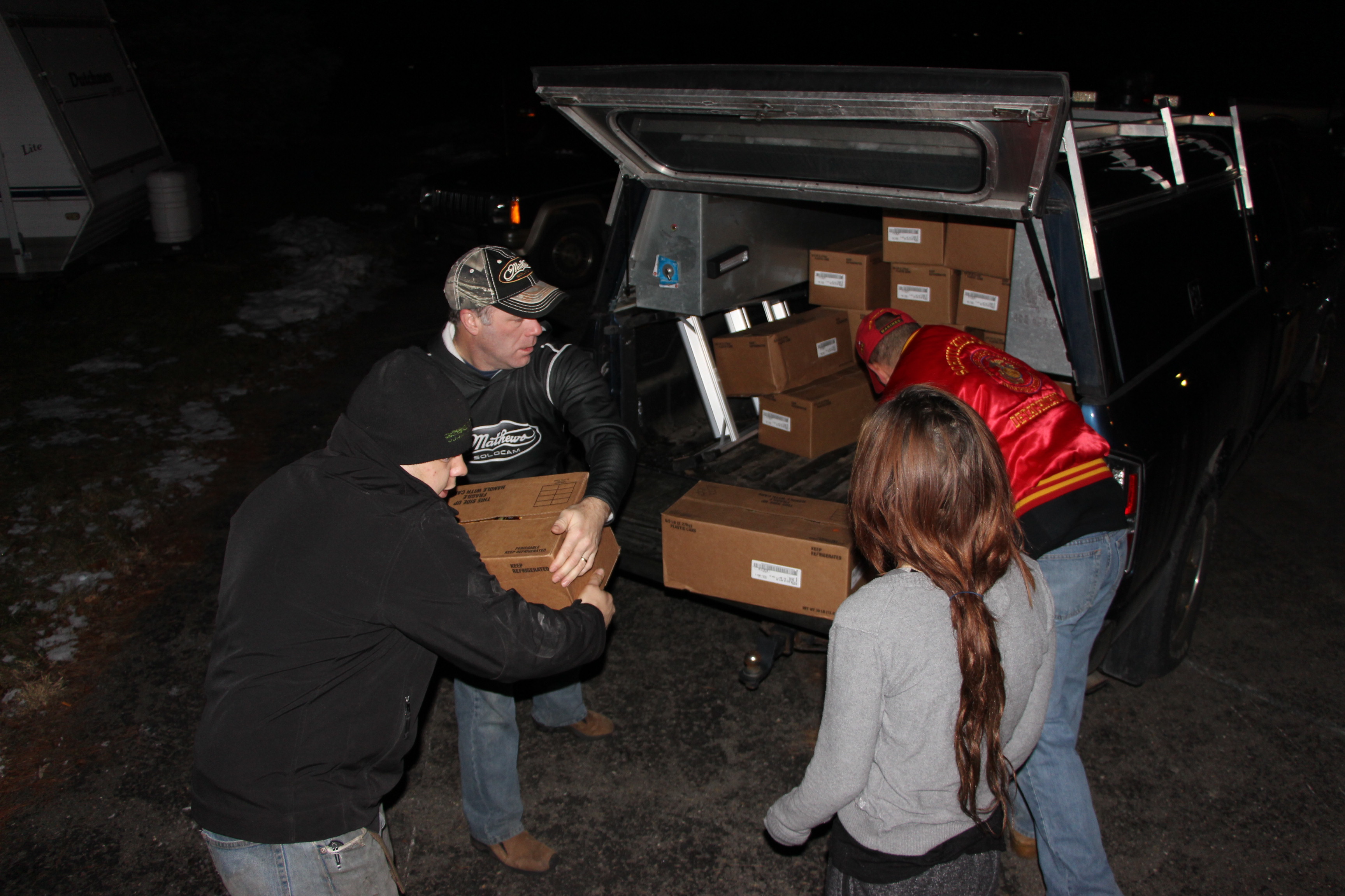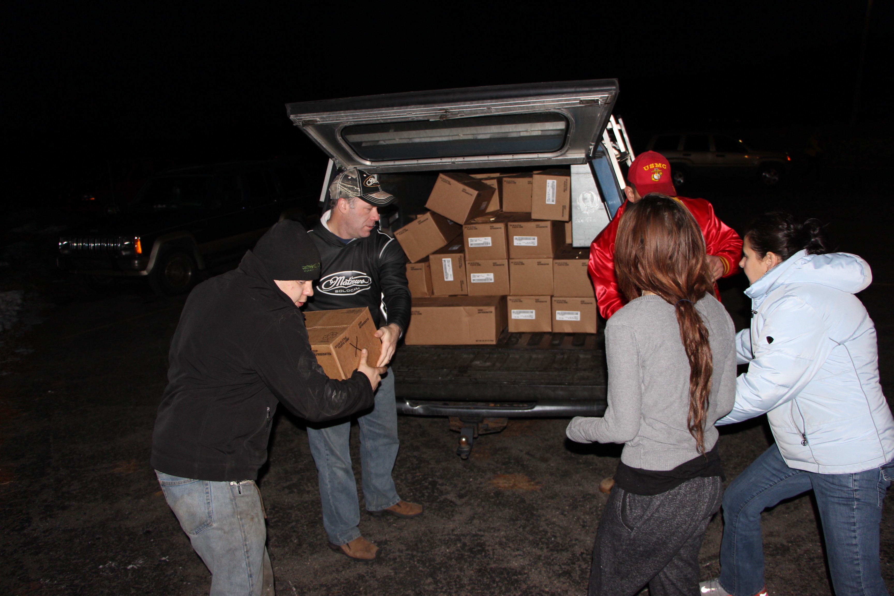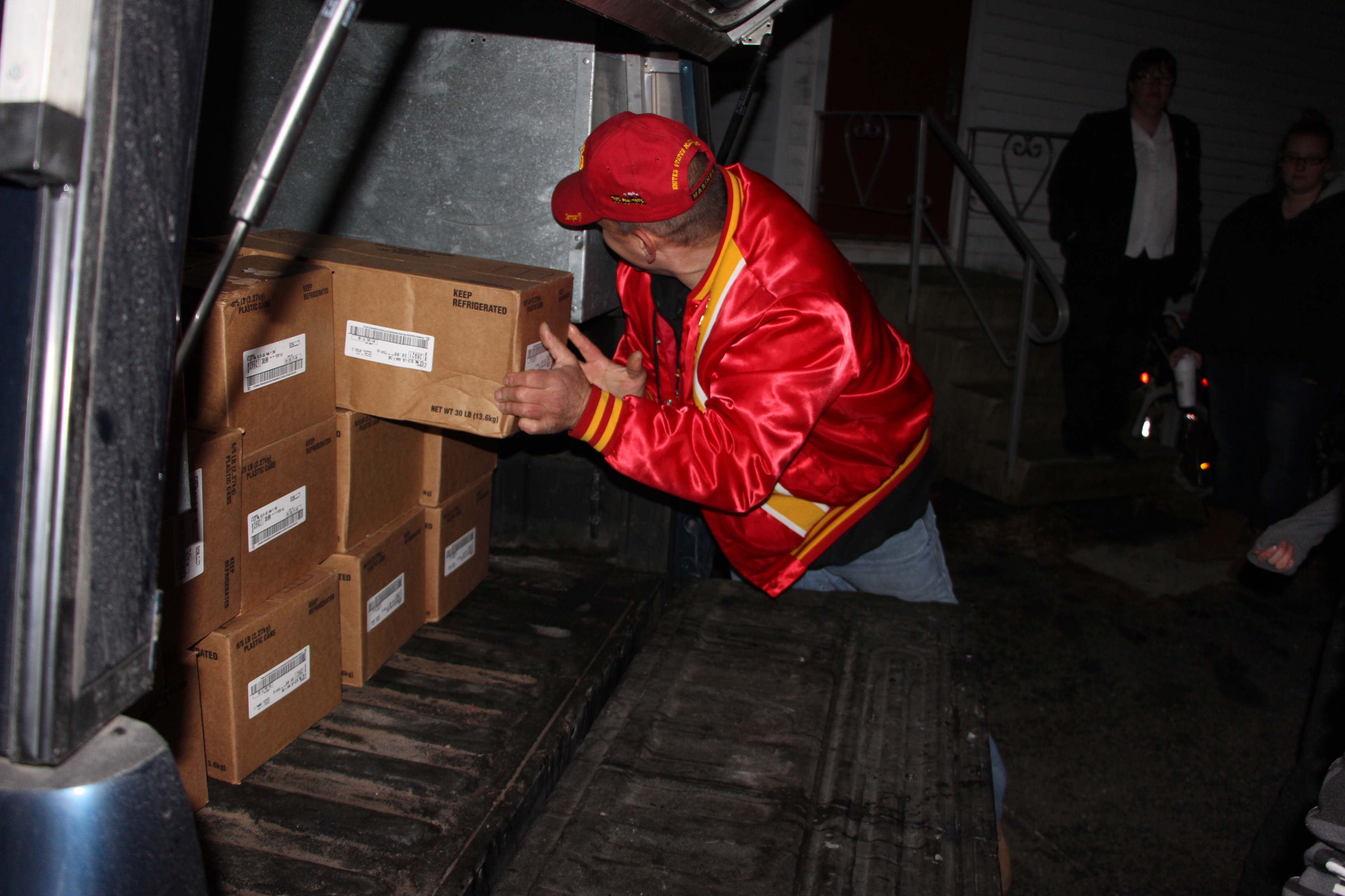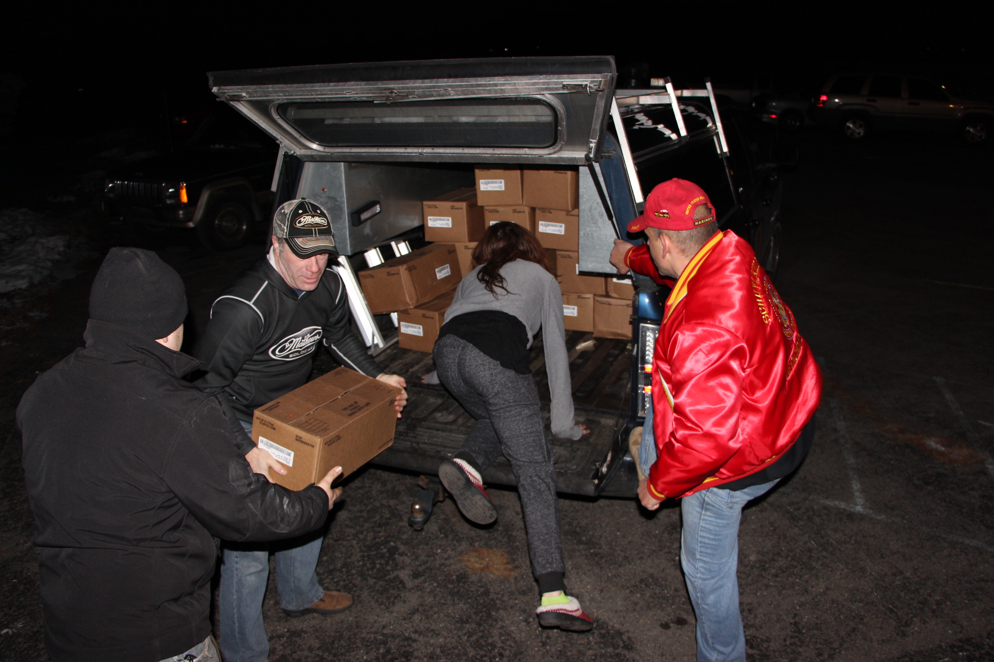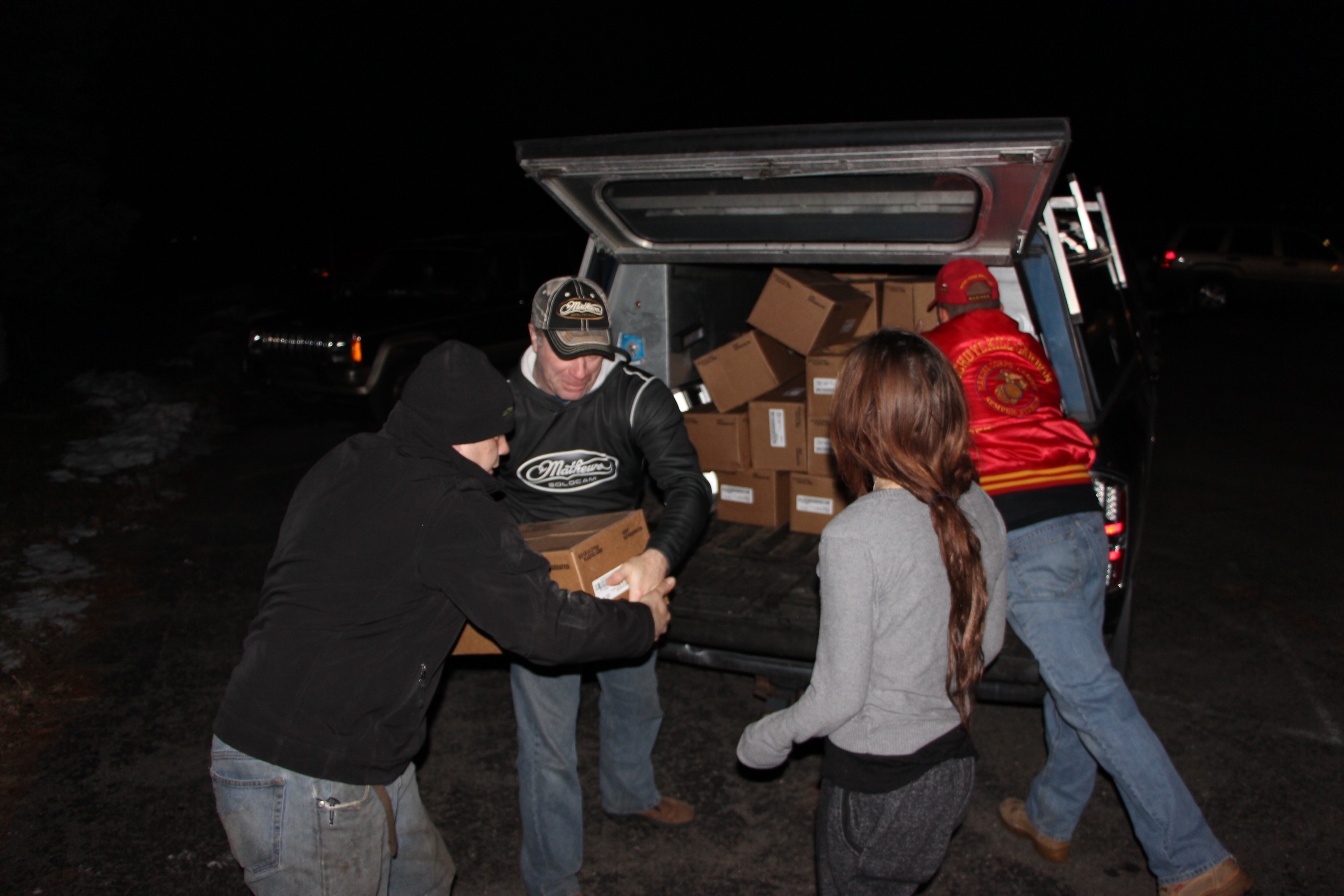 After a last-minute request on Facebook for assistance from the Tamaqua Salvation Army, a number of community members stepped up to help load over 400 purchased hams for delivery to Lehighton for the Schuylkill Carbon Marine Corps League’s Carbon County Toys For Tots Distribution.