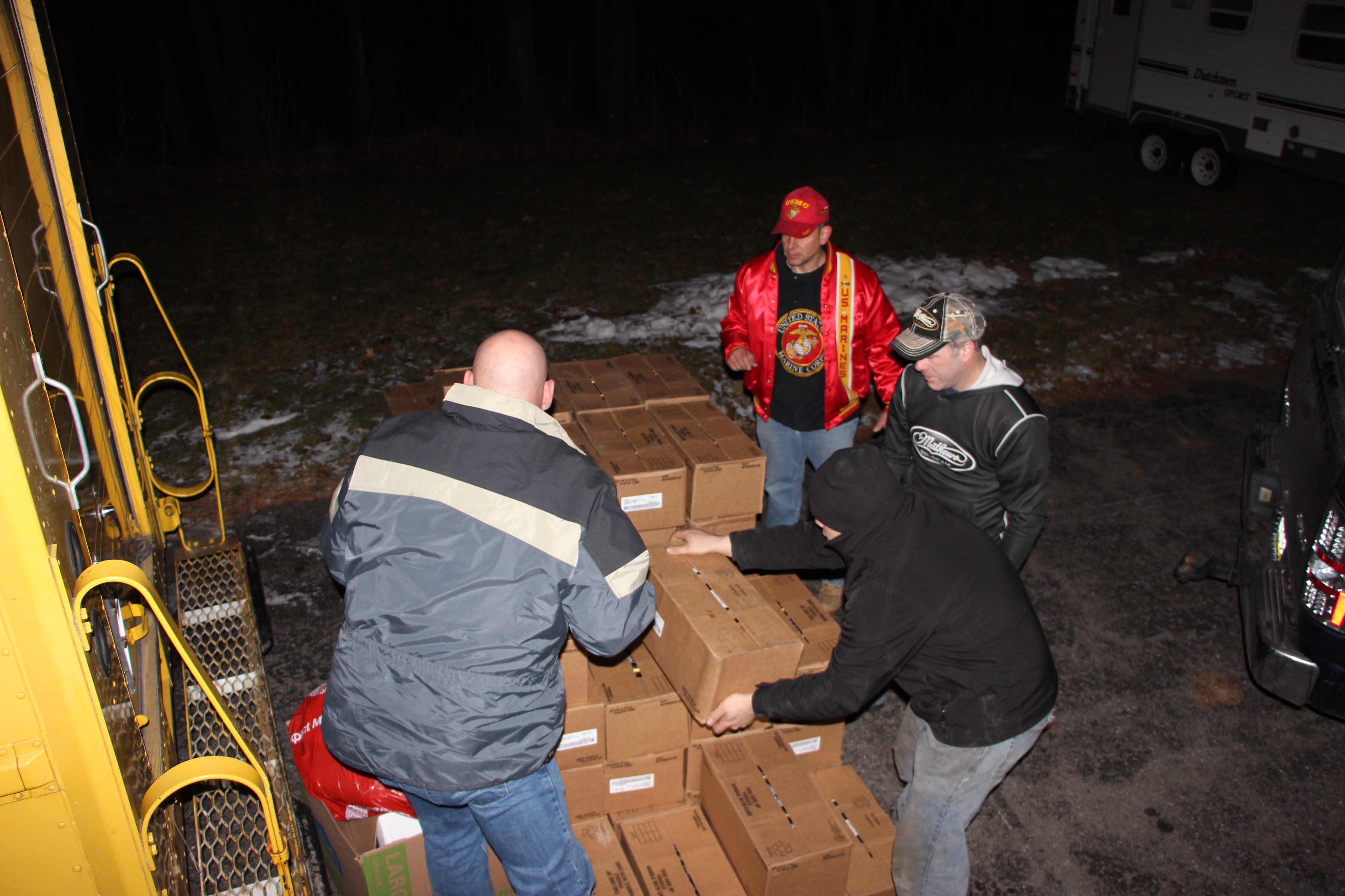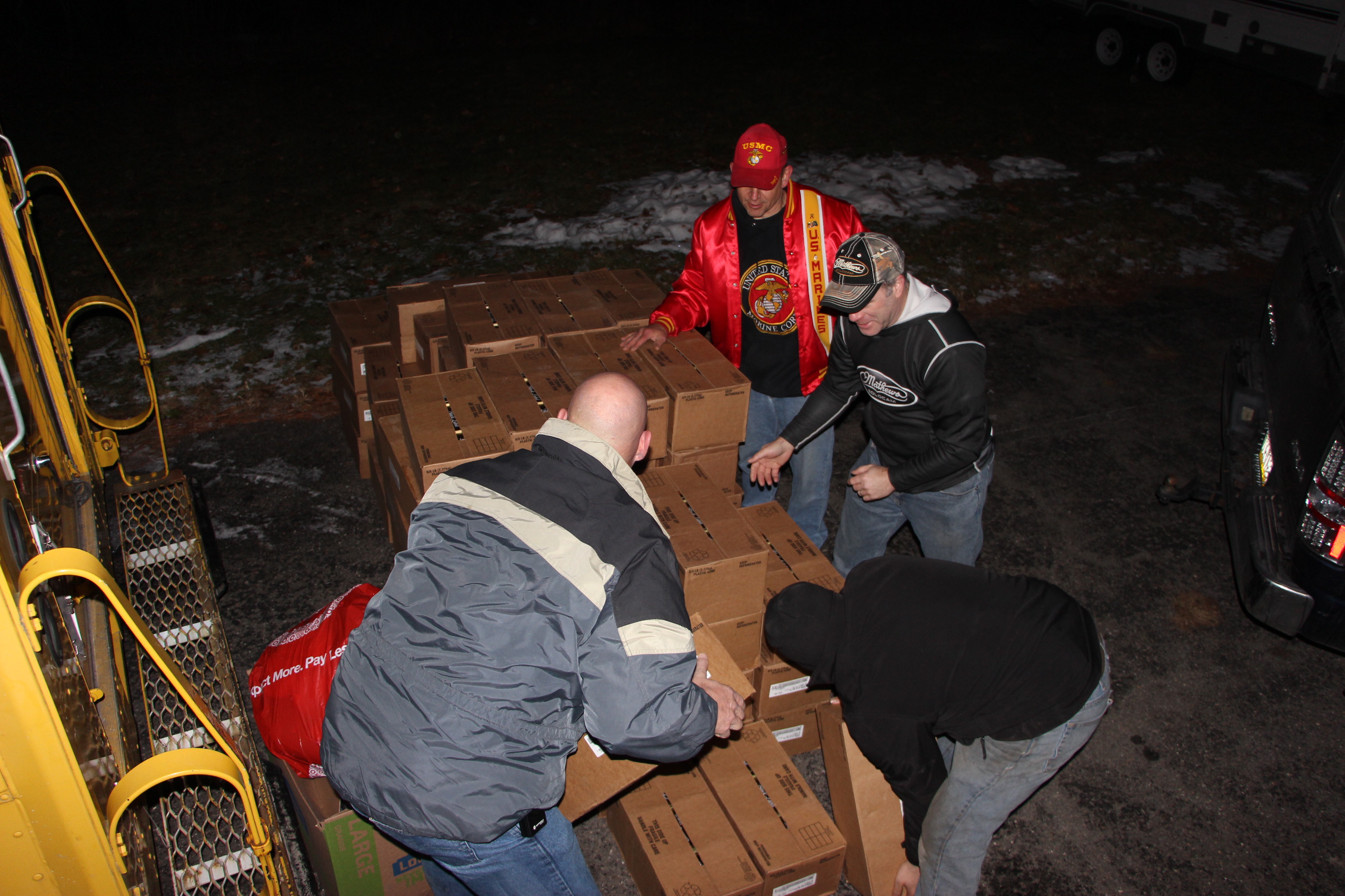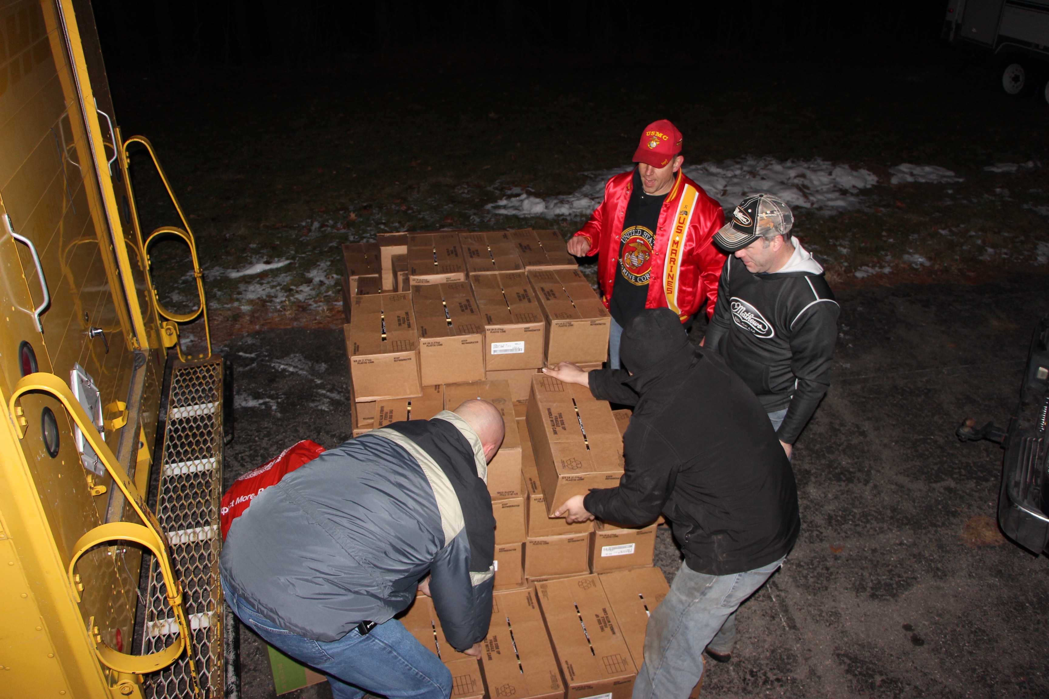 Members and volunteers of the Schuylkill Carbon Marine Corps League unloaded the three vehicles in Lehighton.