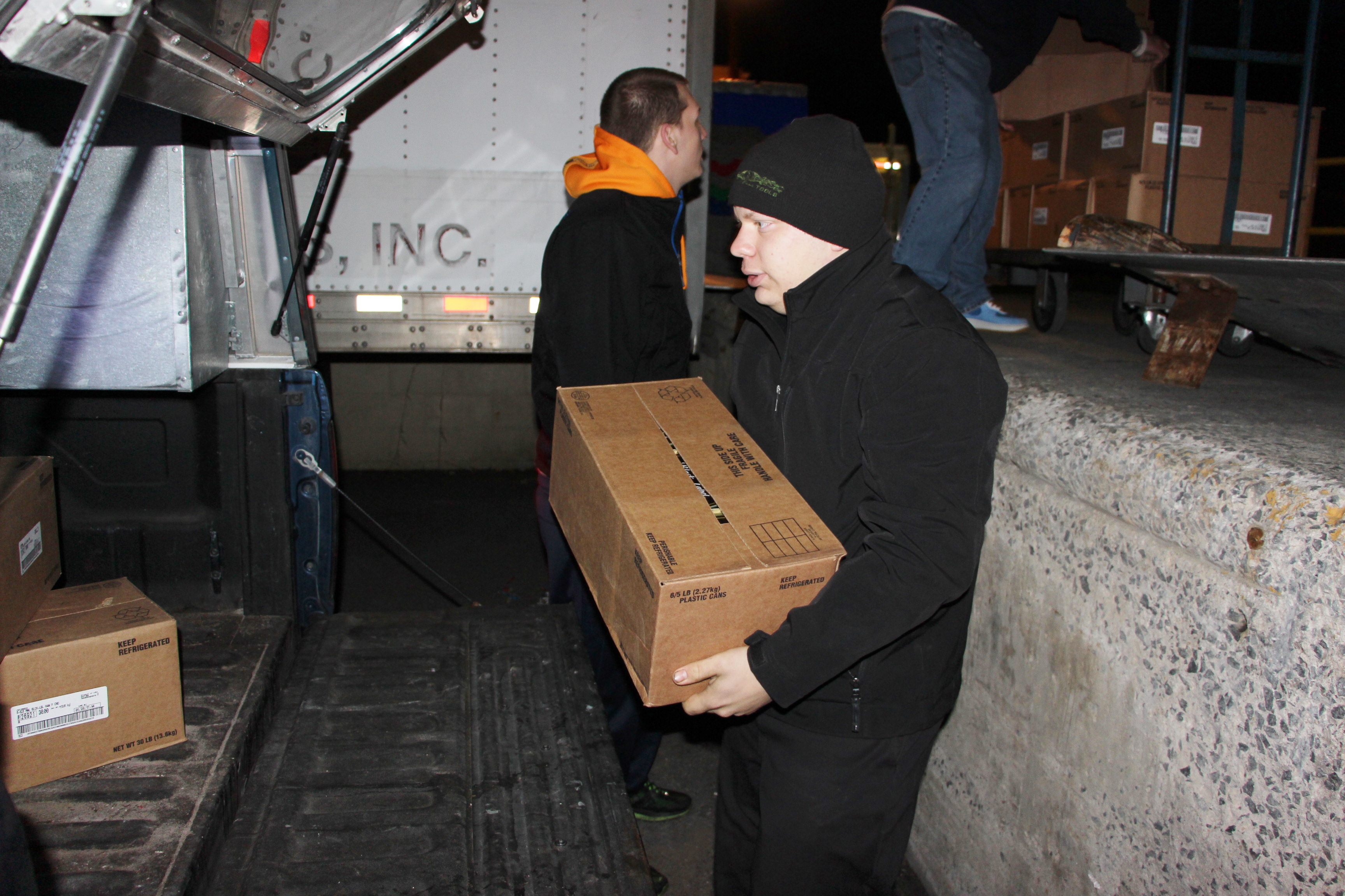 Pictured are volunteers loading hams in preparation for the Tamaqua Salvation Army’s second food distribution held Saturday, December 18, 2014.