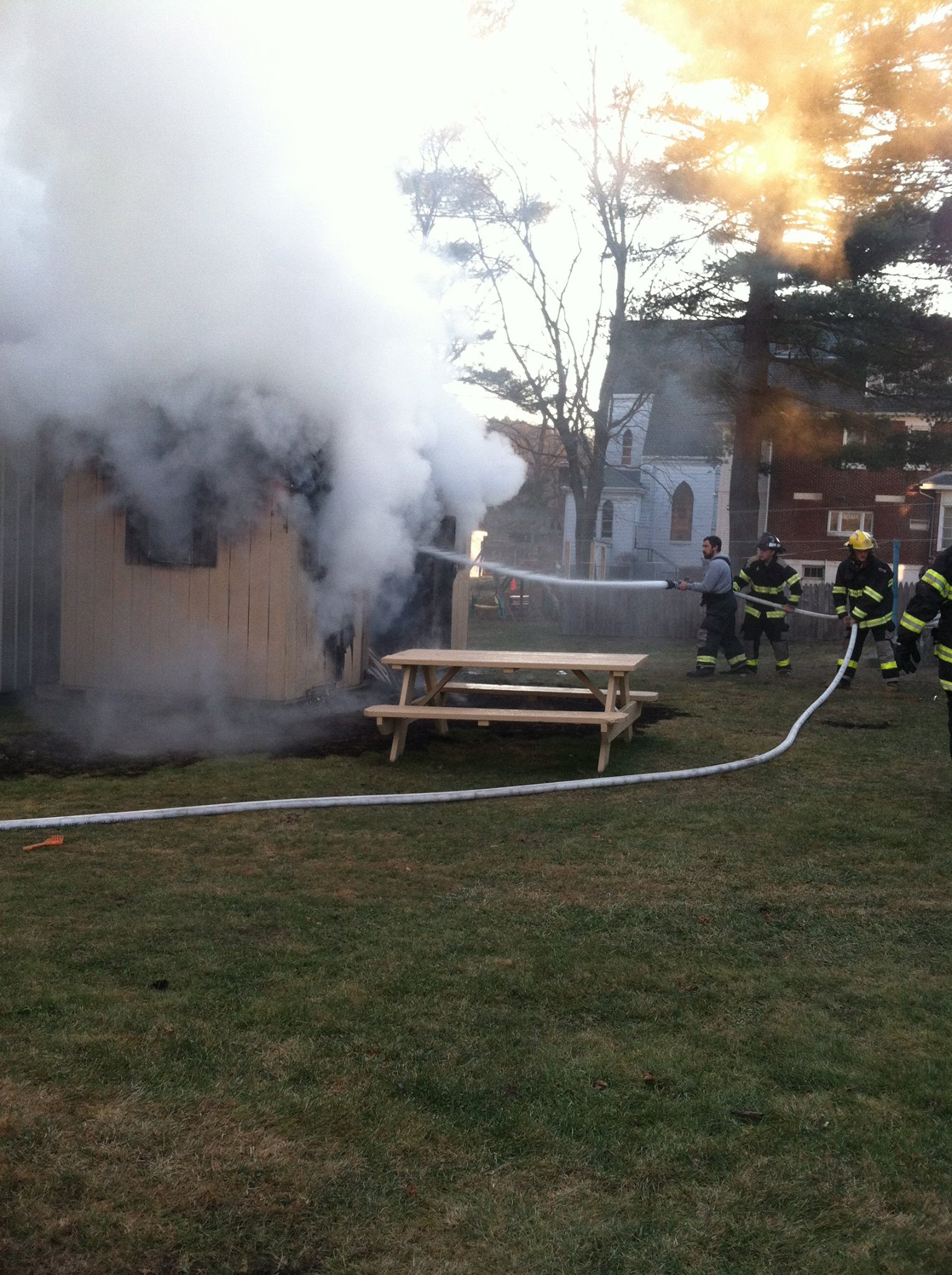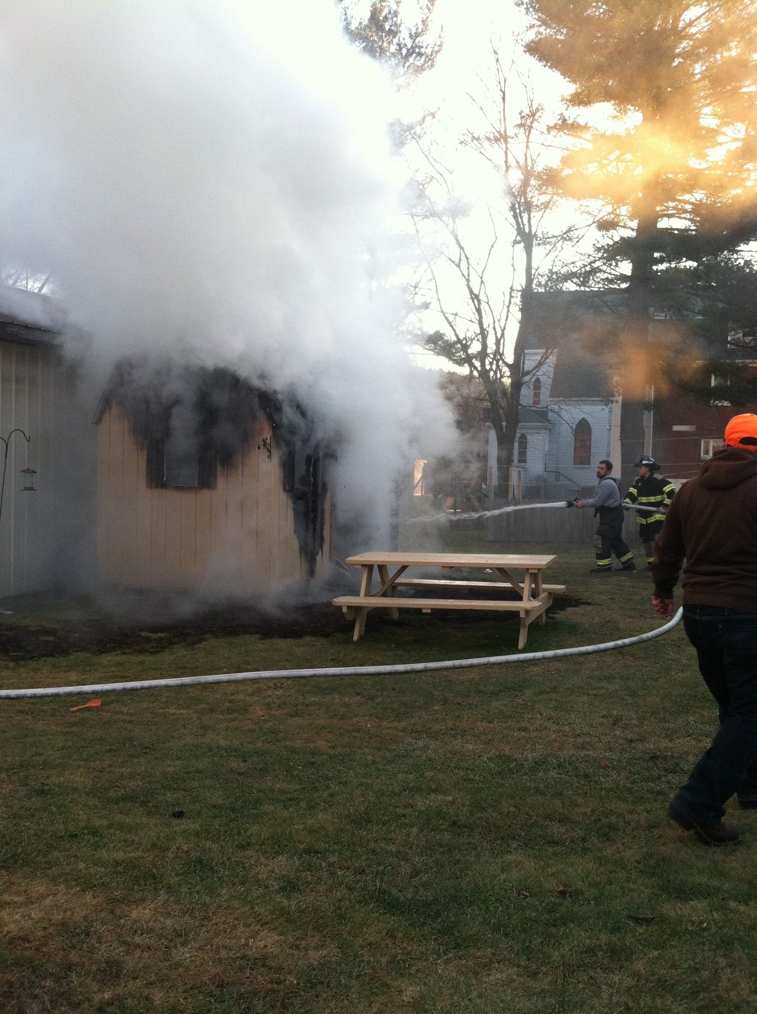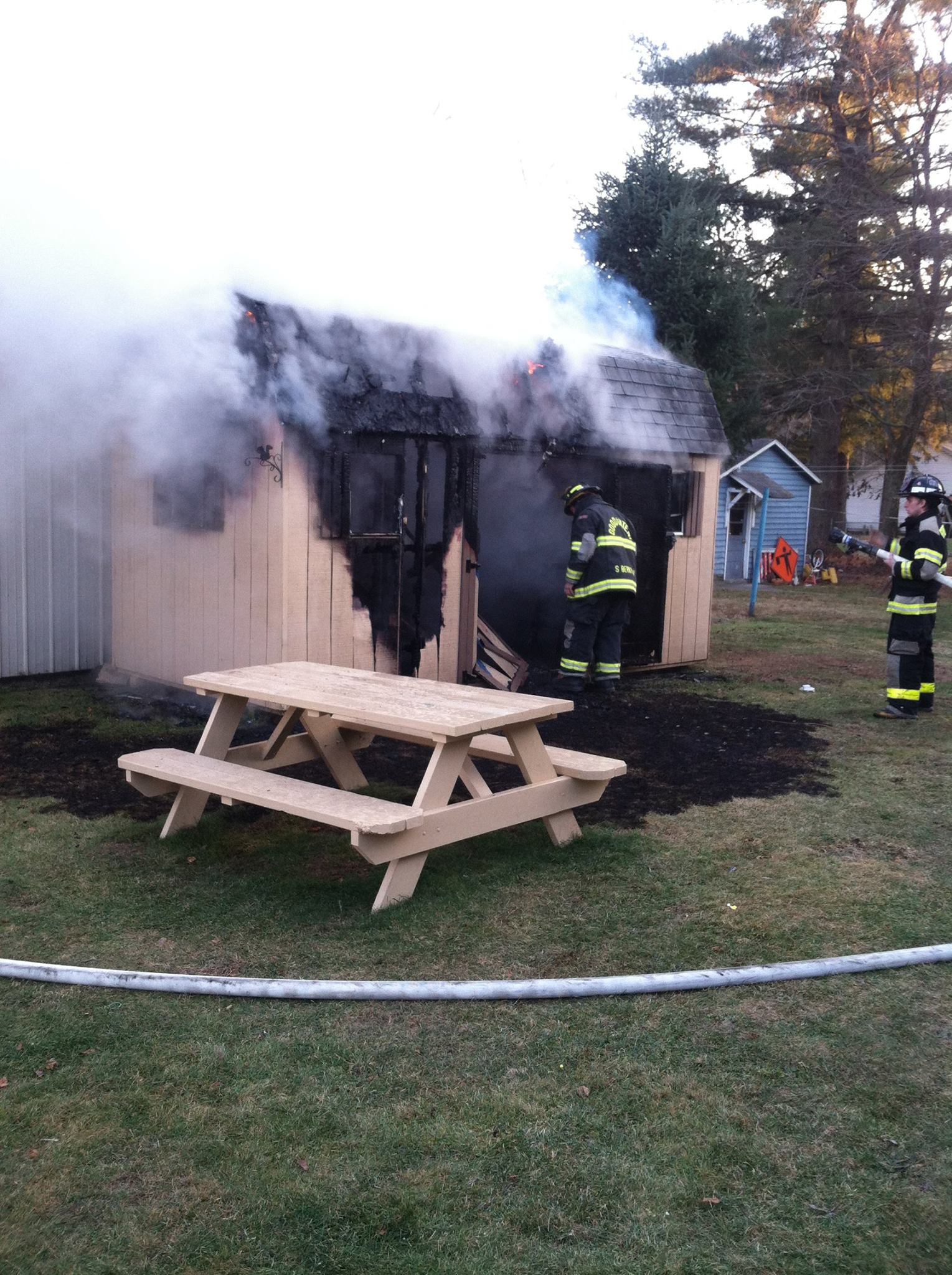 Neighbors said on Facebook that the shed and all its belongings were destroyed by the fire. They added that firefighters prevented the fire from spreading to neighboring properties.