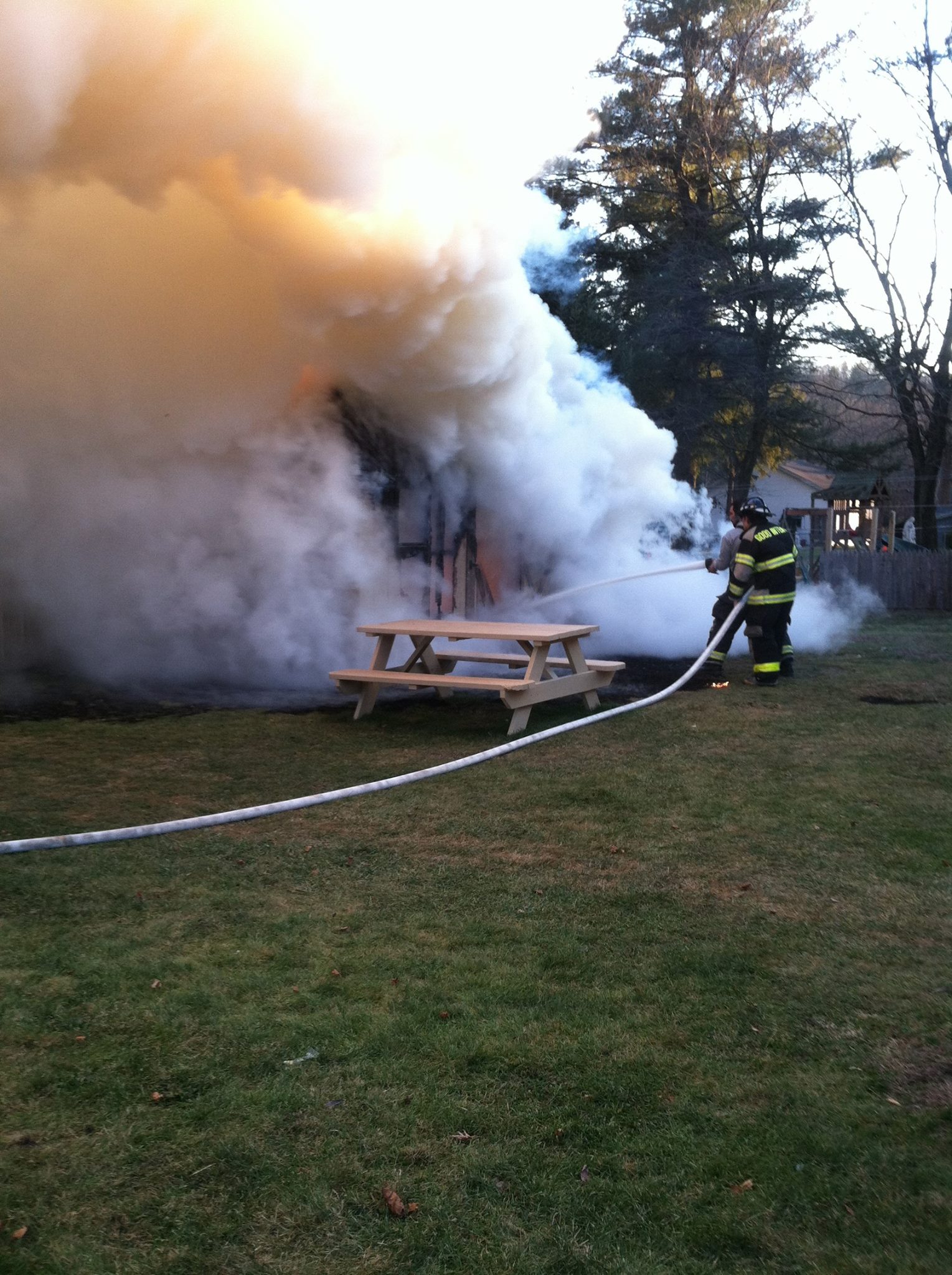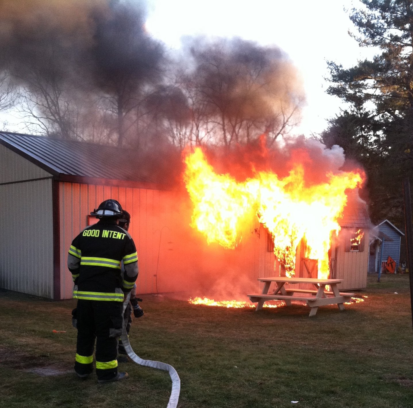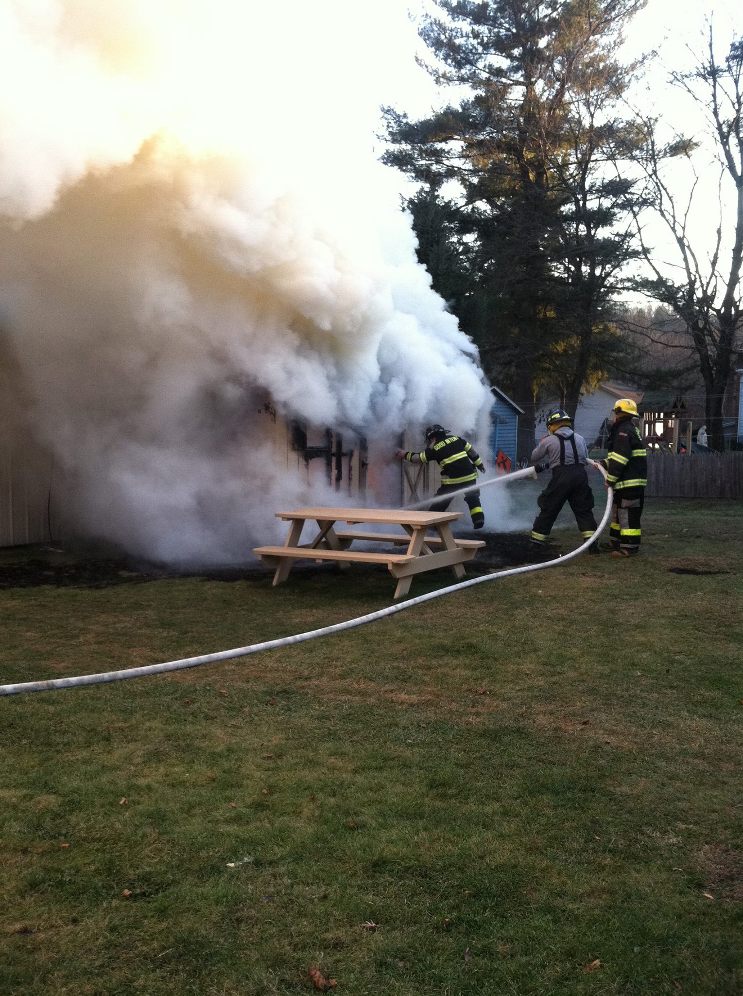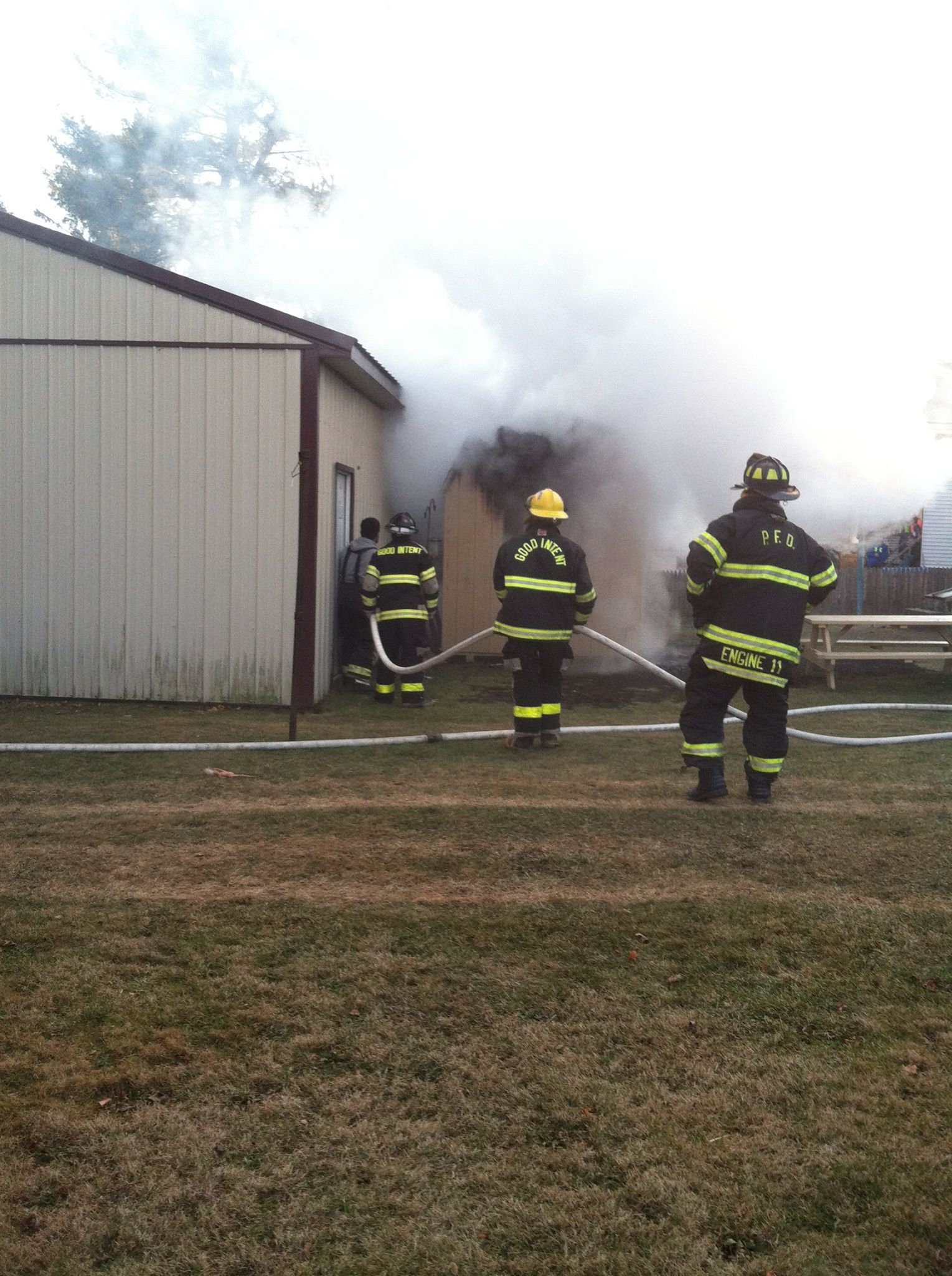 Neighbors said on Facebook that the shed and all its belongings were destroyed by the fire. They added that firefighters prevented the fire from spreading to neighboring properties.