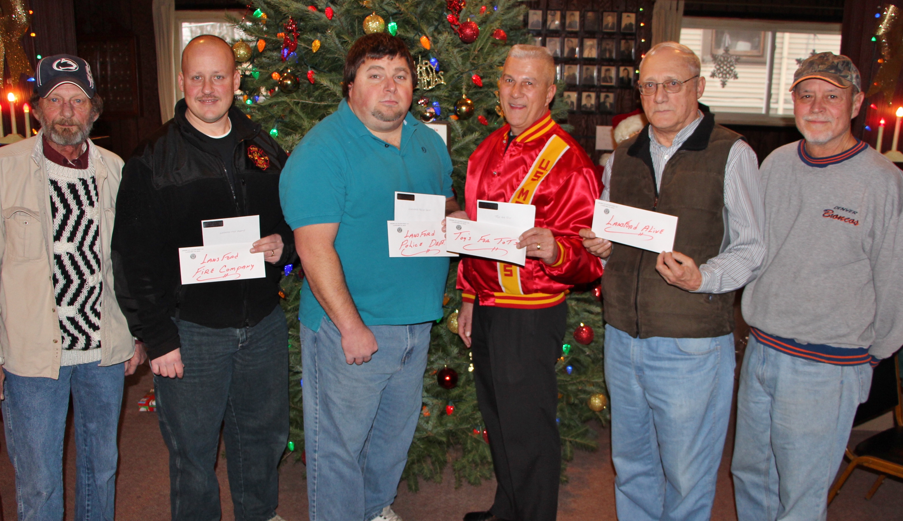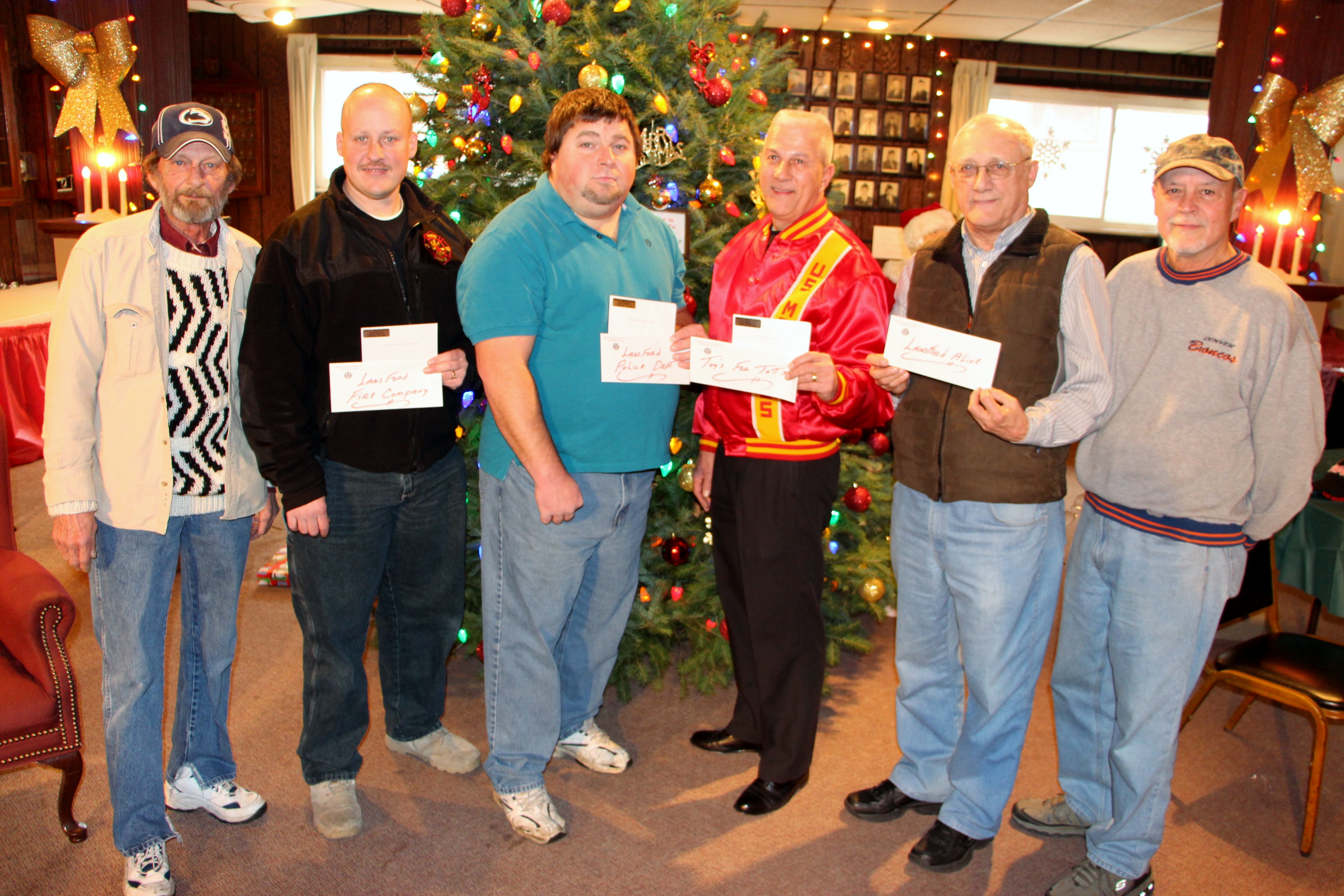 They were Lansford Fire Company, $500; Lansford Police Department, $500; Schuylkill Carbon Marine Corps League Toys for Tots, $250; and Lansford Alive, $100.