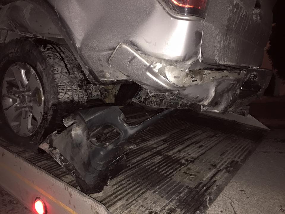 Damaged were a 2004 Volkswagen Jetta and 2011 Ford F-150 FX4, both belonging to Chris and Jacquelyn Hartz.