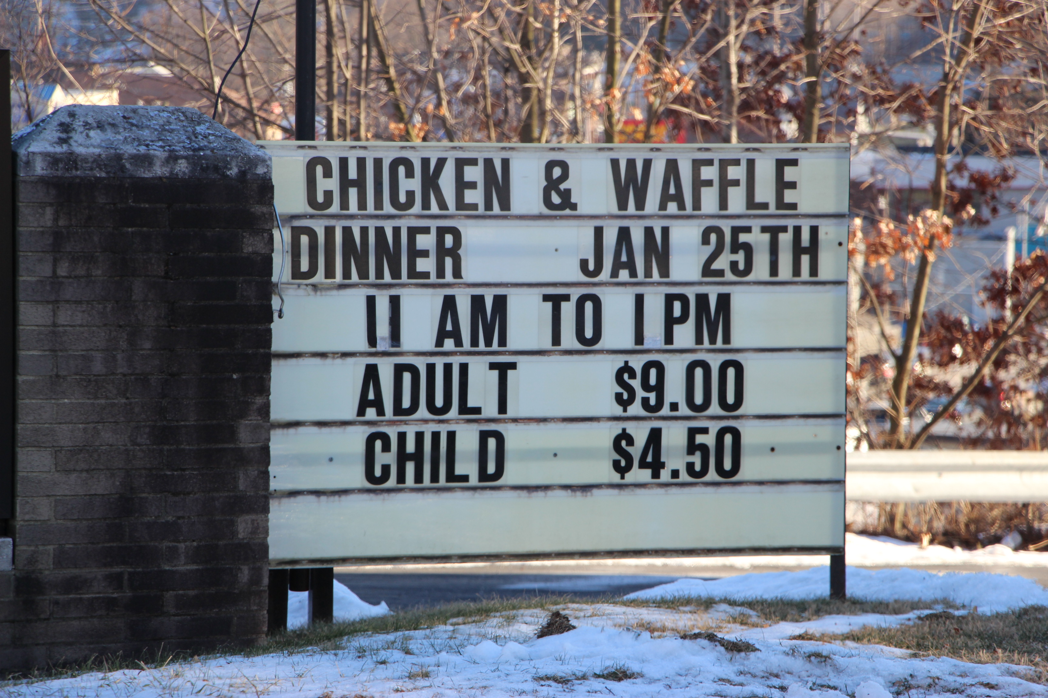 CHICKEN AND WAFFLE DINNER JANUARY 25, 2015 AT TRINITY U.C.C. IN TAMAQUA