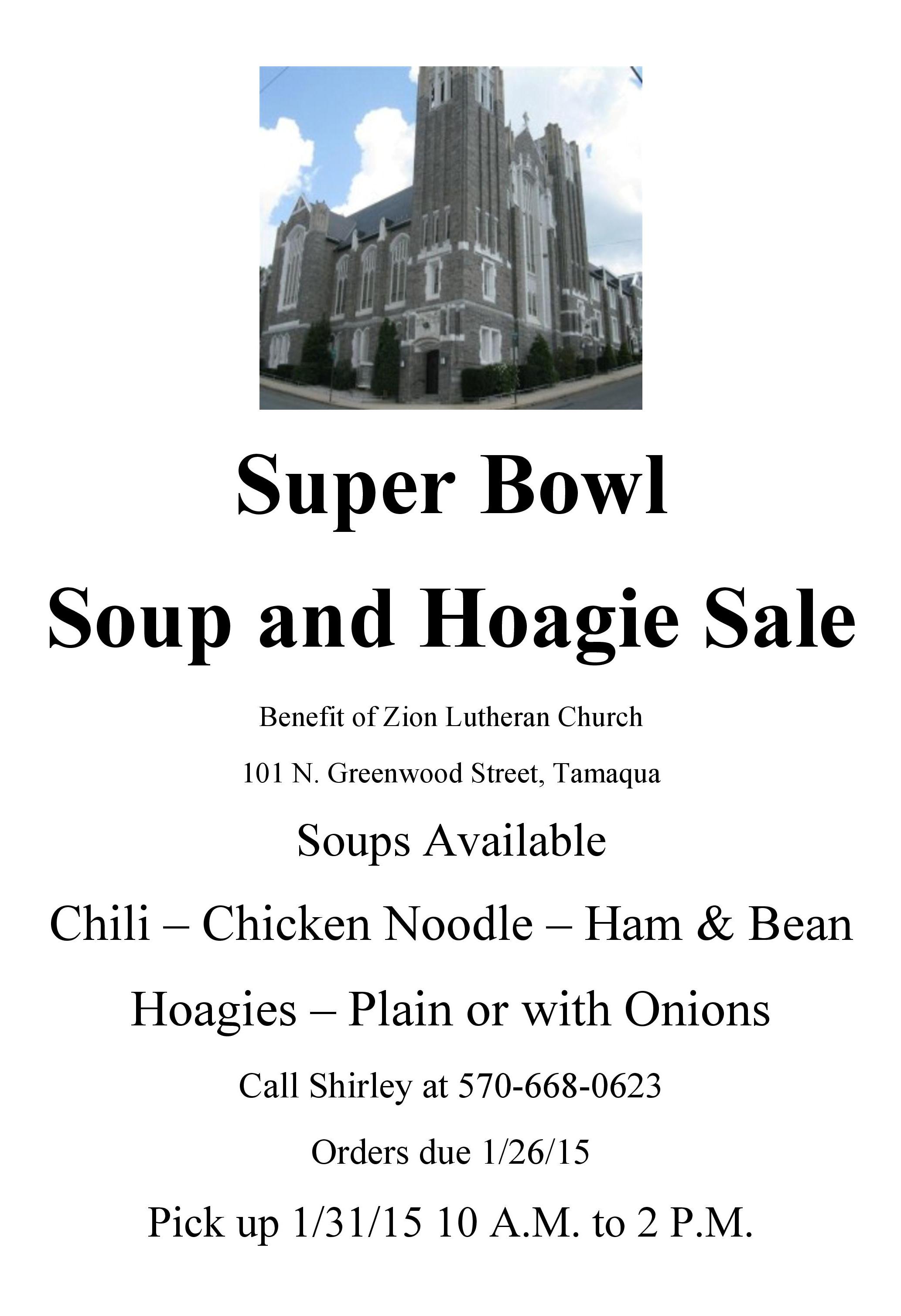 Members and parishioners of Zion Evangelical Lutheran Church in Tamaqua are holding a “Souper” Bowl Soup/Hoagie Sale later this month.