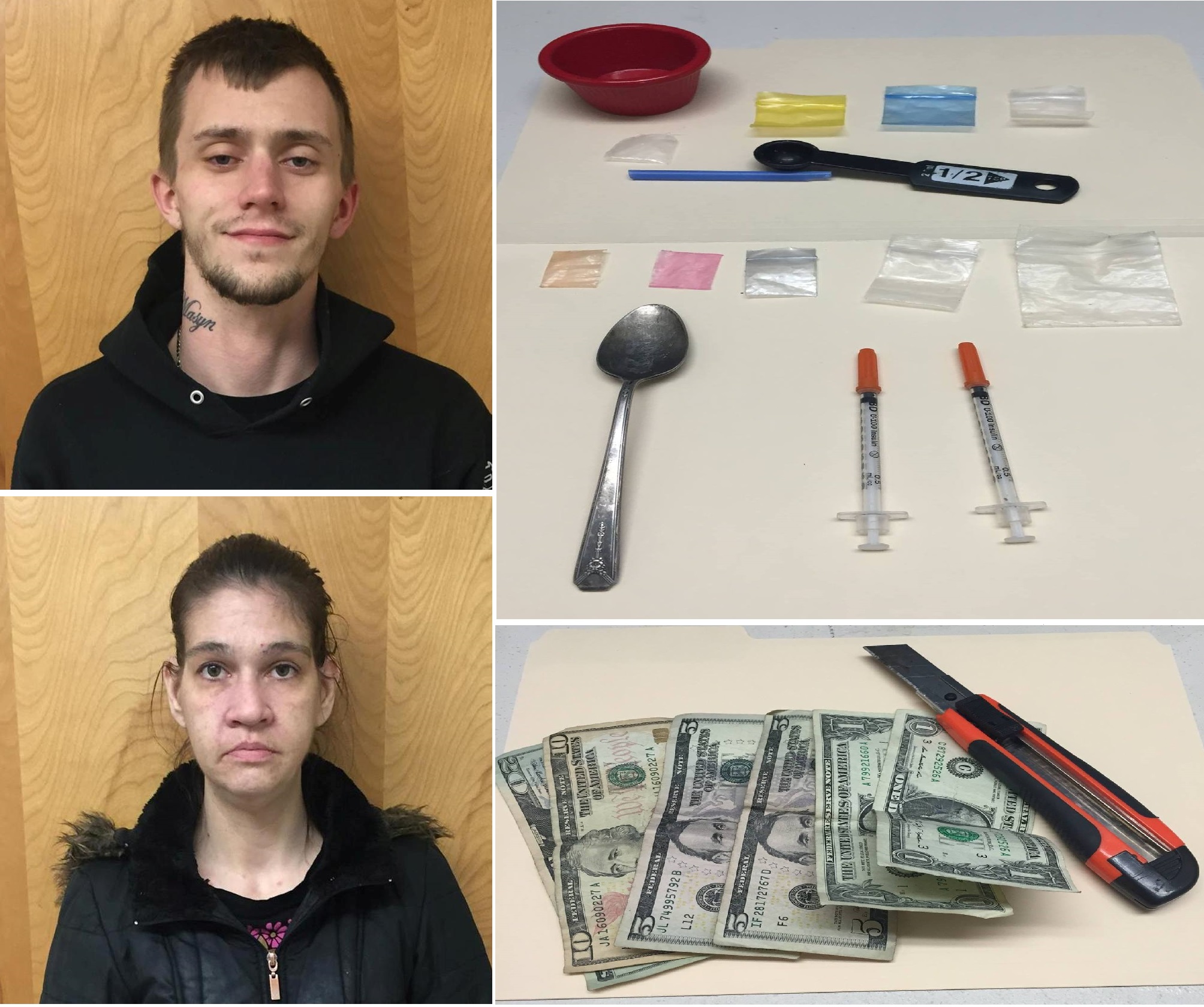 “Last evening officers received a report of an armed robbery. Male victim was robbed of $42 cash at knifepoint on Main St in the Borough. The actor, Corey Wall, 22, of Mahanoy City, was taken into custody within a half hour. Wall was arrested for Robbery, Terroristic Threats, Aggravated Assault, Theft, Receiving stolen property, and possessing instruments of crime. Also arrested was Kelly Kaczmarczyk for Hindering Apprenhension or Prossecution, Obstruction of law or governmental function and possession of Drug paraphernalia.”