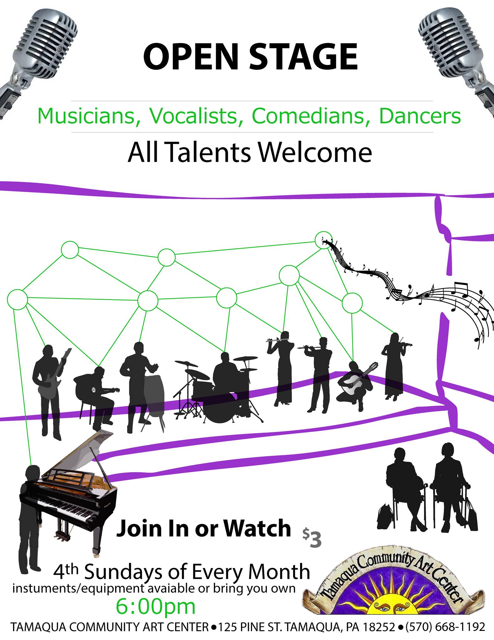 Show off your talent or just watch during the Tamaqua Community Arts Center’s monthly Open Stage event being held Sunday, January 25, 2015 at the center.