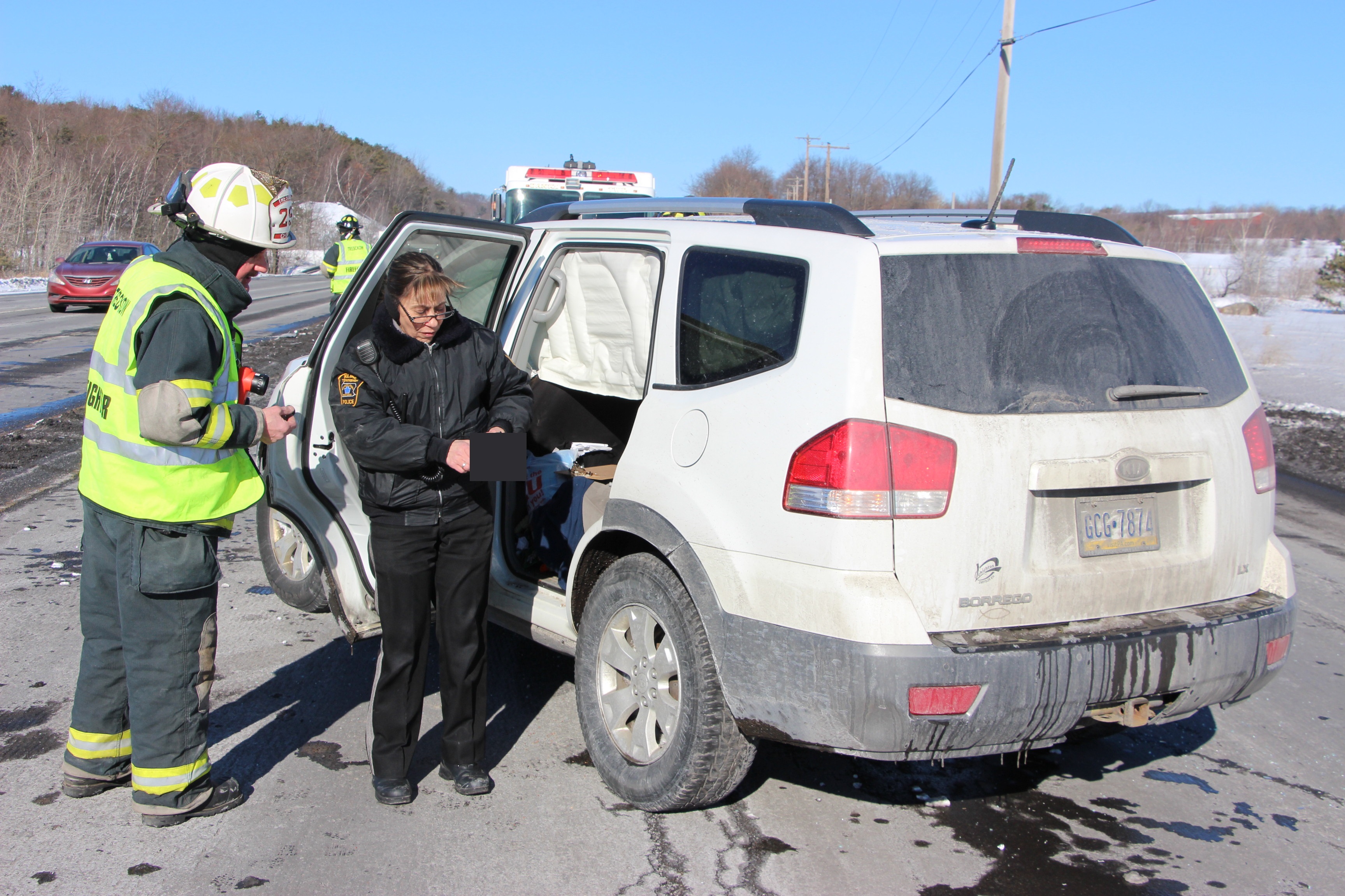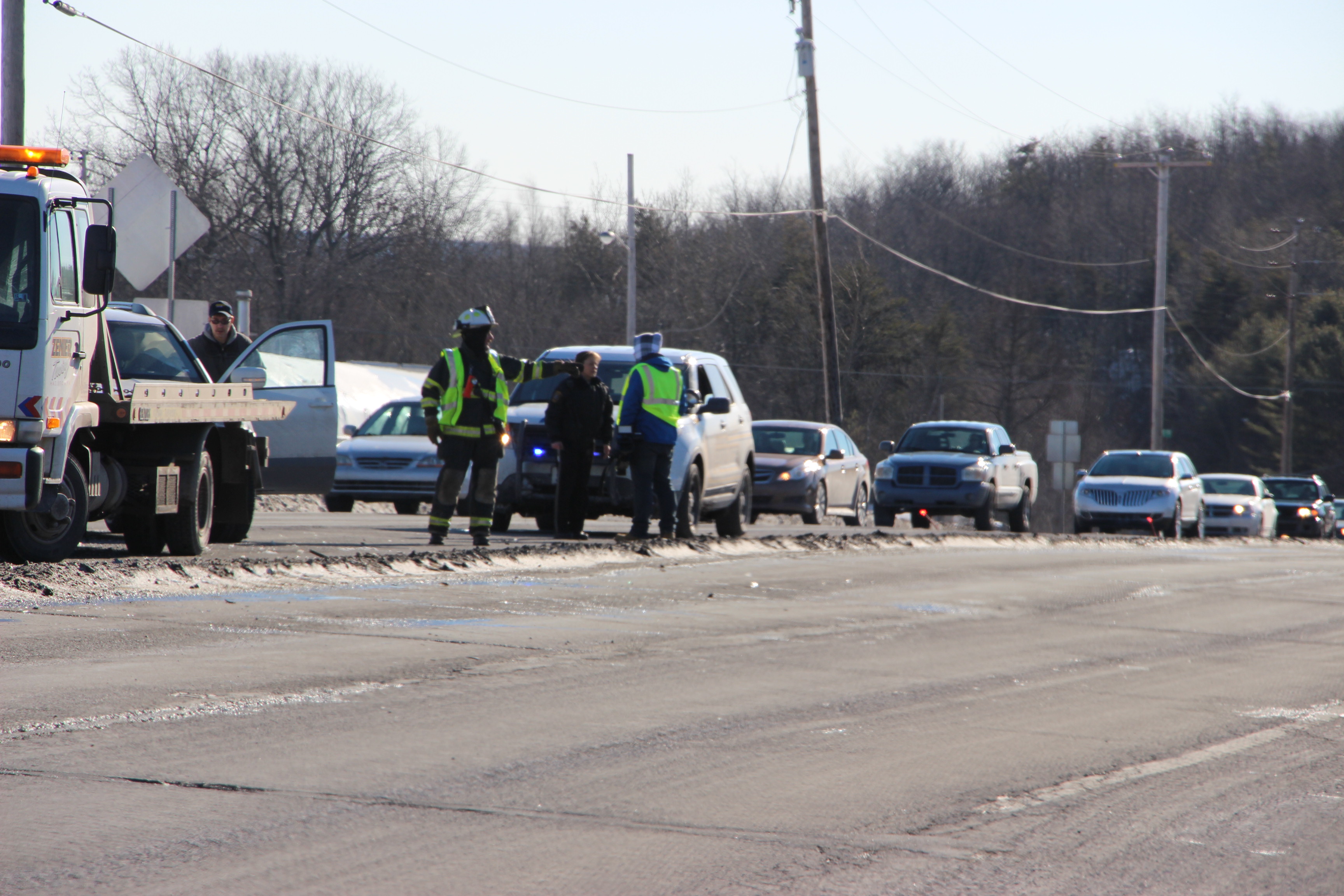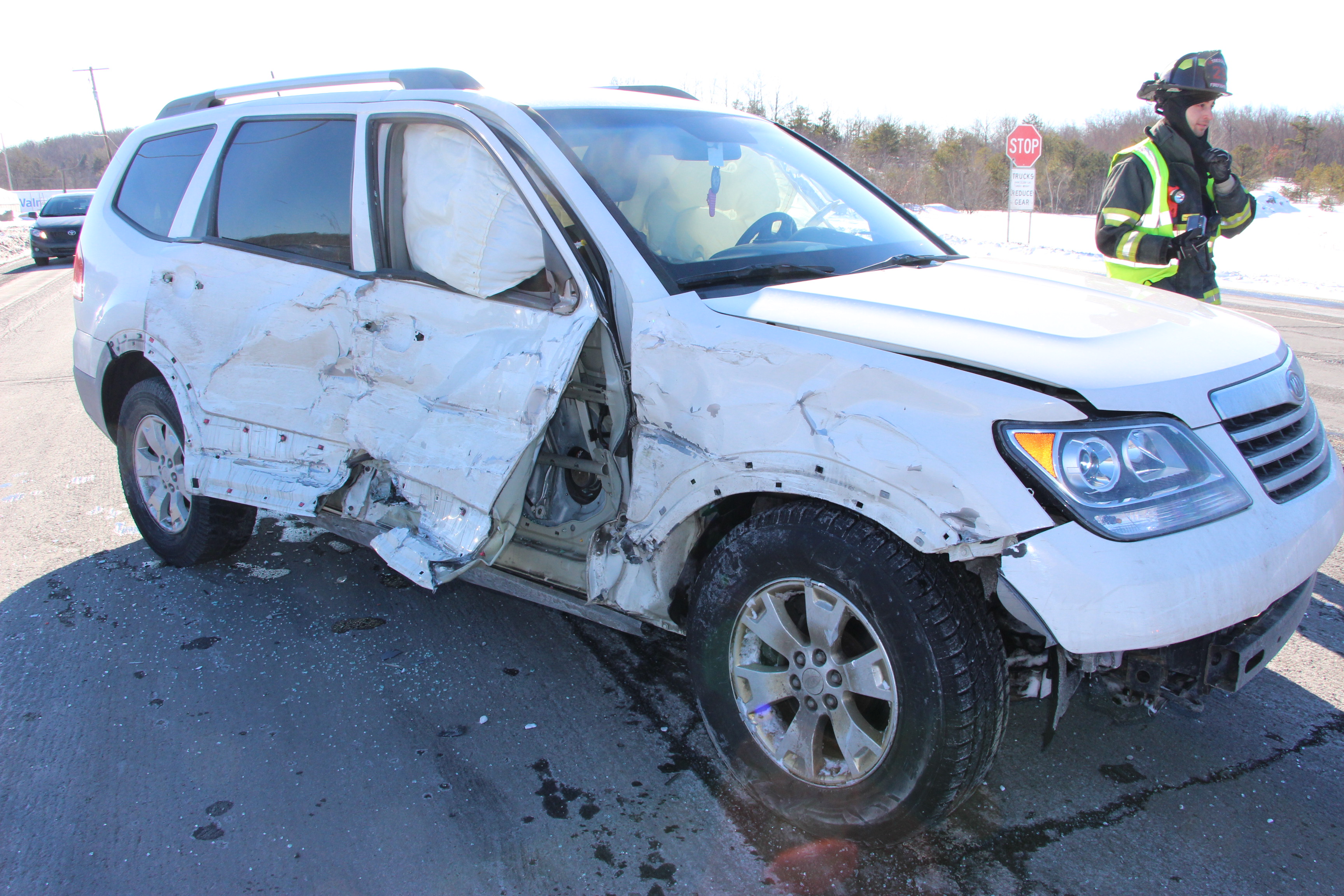 The driver of a vehicle was transported to a hospital after an accident involving a tractor-trailer this afternoon (Saturday, January 31, 2015) on SR309 in Kline Township. The incident occurred around 3 PM near the intersection of Lofty Road.