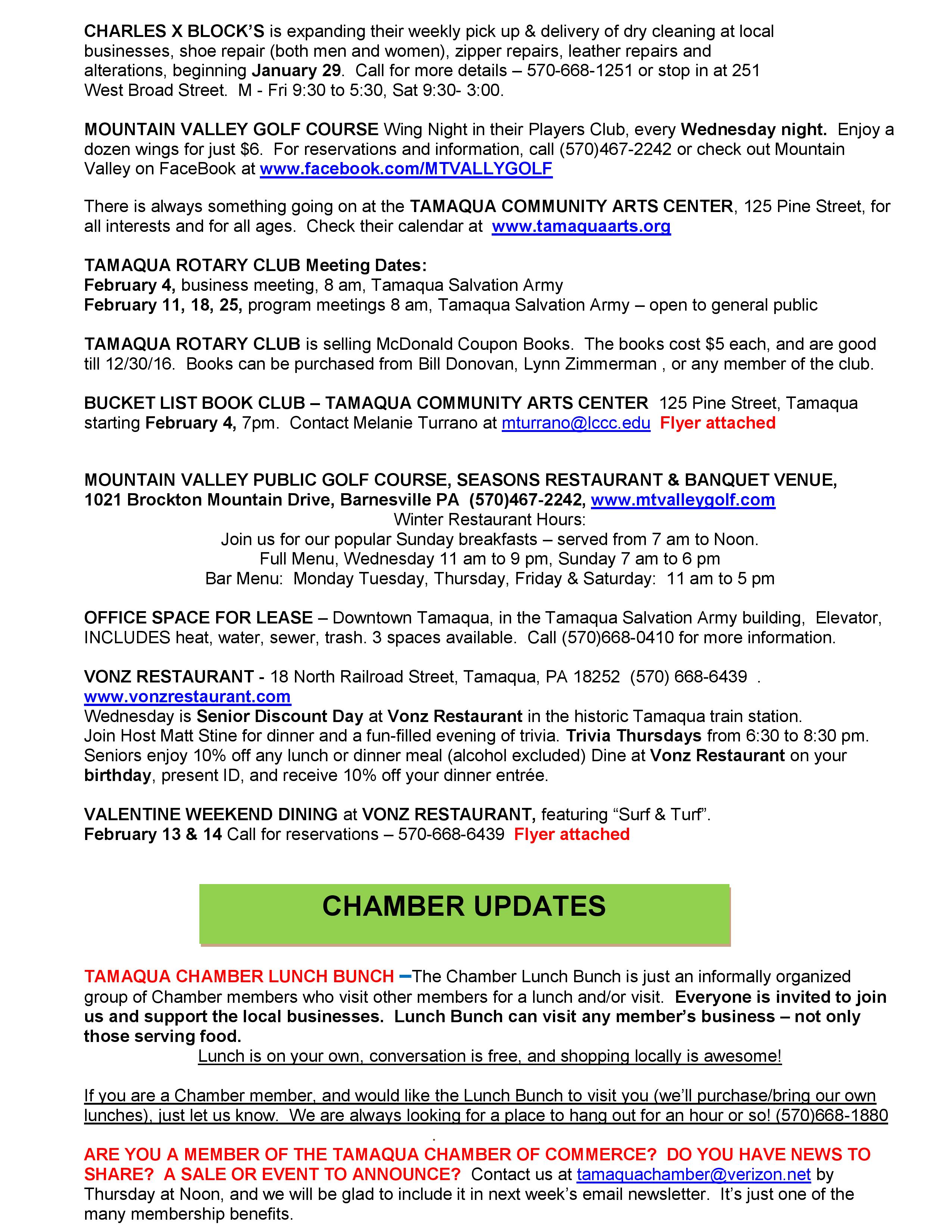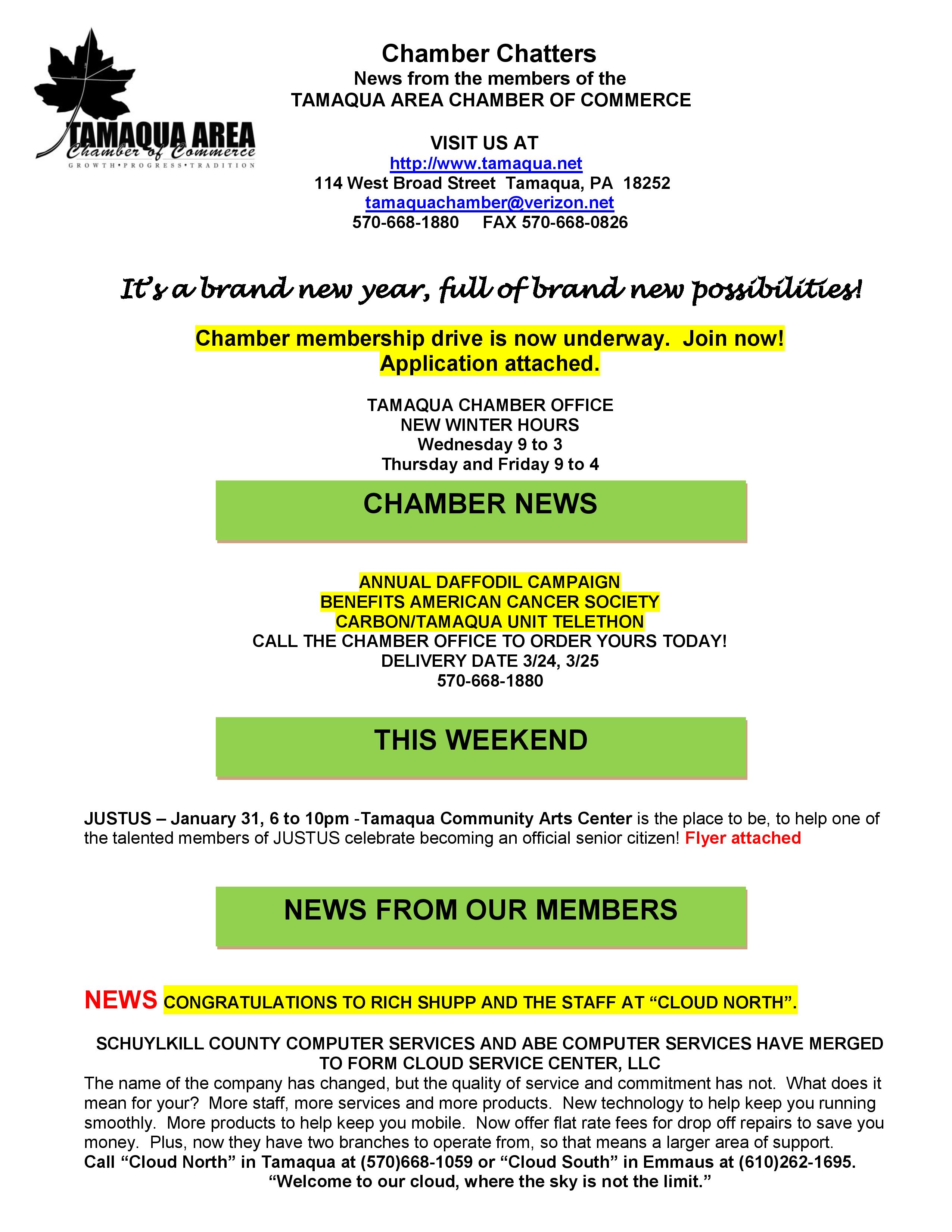 Here is the latest Tamaqua Area Chamber of Commerce’s Chamber Chatters newsletter dated Friday, January 30, 2015.